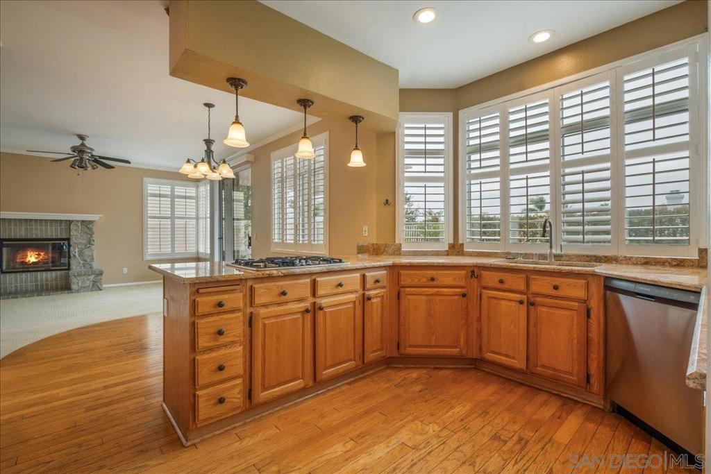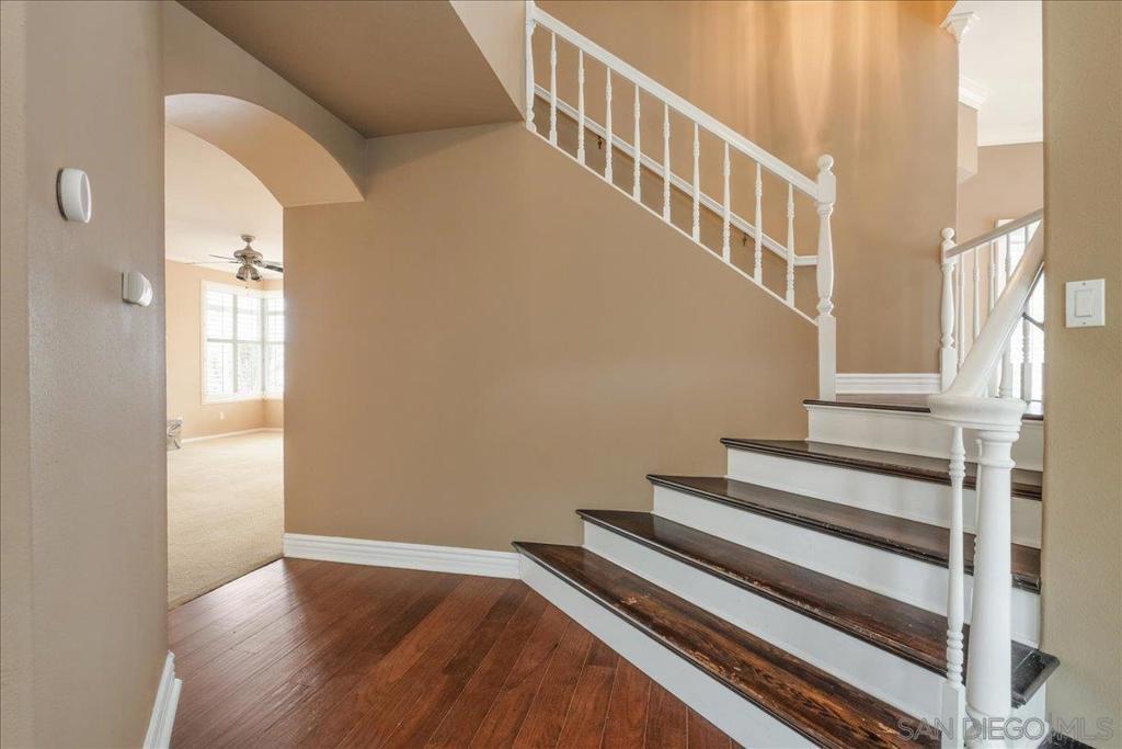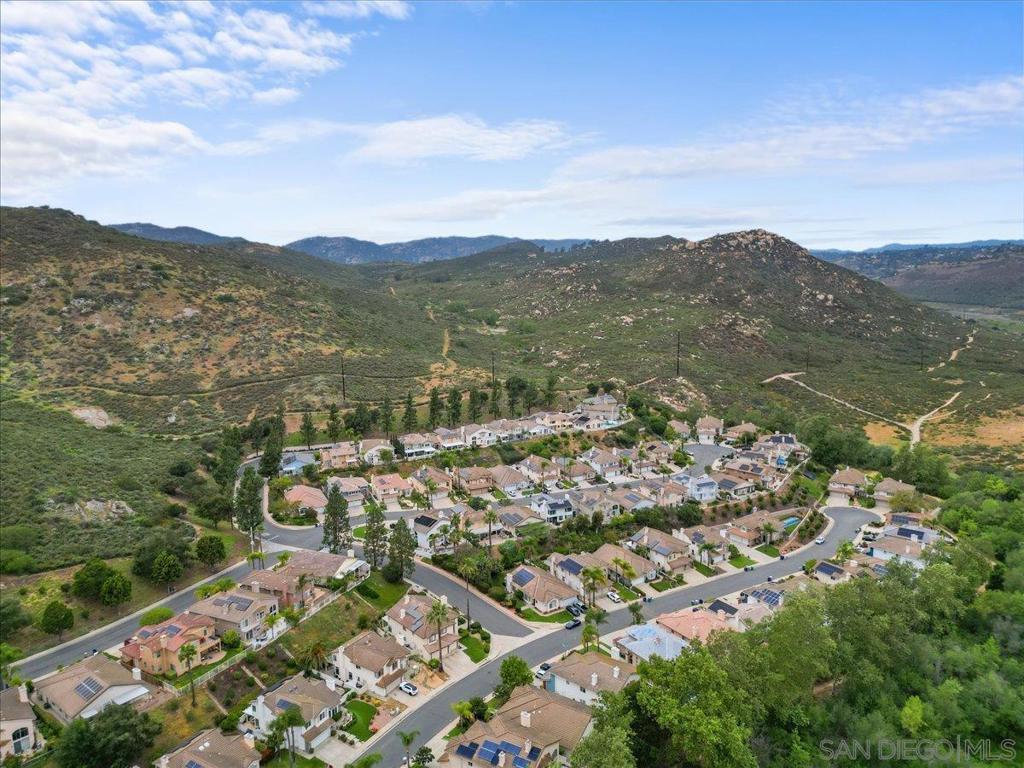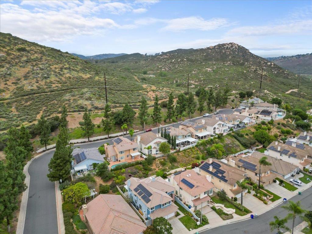 Light-filled 4-bedroom, 2.5-bath home in Rancho Bernardo’s Westwood community, ideally situated on a quiet cul-de-sac at the top of the hill with sweeping valley views overlooking Battle Mountain. With no neighbors across the street, this home offers both privacy and a serene setting. Enjoy vaulted ceilings, abundant natural light, and an open, airy floorplan designed to capture a refreshing evening cross-breeze. Inside, soaring ceilings and a graceful staircase create a welcoming first impression. The spacious formal living room with fireplace flows into the dining area, where an arched entry and backyard access make indoor-outdoor entertaining effortless. A second fireplace in the family room adds warmth and charm to the home’s inviting living spaces. The kitchen features granite countertops, stainless steel appliances, gas cooktop, peninsula with pendant lighting and bar seating, walk-in pantry, and a bay window overlooking the backyard pool and spa. It opens to the family room with fireplace and backyard access, creating a warm, connected space for everyday living and entertaining. Upstairs, the primary suite offers vaulted ceilings, easterly views, and a spa-like ensuite with dual sinks, jetted tub, walk-in shower with multiple shower heads, and dual closets including a walk-in. Three additional bedrooms with ceiling fans and a full bath complete the upper level. Step outside to your private backyard retreat, complete with a pool, spa, covered patio, and space ideal for relaxing or gathering with friends. In front, an open and inviting courtyard provides the perfect setting for sitting and conversing, enhancing the home’s welcoming curb appeal. Additional highlights include a dedicated laundry room, main-level half bath, a 2-car garage with built-in storage, and an owned solar system for improved energy efficiency and long-term savings. Close to Lake Hodges, scenic trails, parks, golf, Bernardo Winery, and Rancho Bernardo Inn, this home also includes Westwood Swim & Tennis Club membership with resort-style amenities: pool, spa, fitness center, sports courts, miniature golf, clubhouse, playground, preschool, and more. Located in the highly acclaimed Poway Unified School District, this home offers both comfort and lifestyle in one of Rancho Bernardo’s most desirable communities.