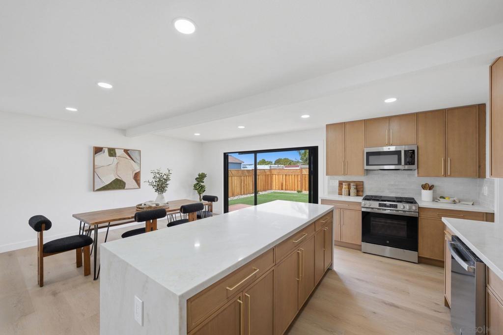 Welcome to 5135 New Haven Rd, a beautifully remodeled and turnkey two-story home located in the highly desirable Clairemont neighborhood of San Diego. Boasting 6 bedrooms and 5 bathrooms across 2,742 square feet, this spacious residence offers the perfect blend of modern upgrades, flexible living, and timeless comfort. Step inside to an inviting open-concept floorplan filled with natural light, recessed lighting, and seamless flow between the living, dining, and family rooms. The heart of the home is the updated chef’s kitchen, featuring a large island, modern finishes, and direct connection to the family room—ideal for entertaining and everyday living. Thoughtfully designed for versatility, the home offers multiple bedrooms across two levels—perfect for multigenerational living, guest accommodations, or a home office setup. Each bathroom has been tastefully upgraded, creating a clean and contemporary feel throughout. Situated on a 5,700 sq ft lot, the property includes a private, partially fenced yard with room to relax, entertain, or customize to your needs. Additional highlights include a 2-car attached garage, ample parking, and a well-maintained exterior with classic stucco construction. Conveniently located near top-rated schools, shopping, dining, and major freeways, this home offers both comfort and accessibility in one of San Diego’s most central neighborhoods.