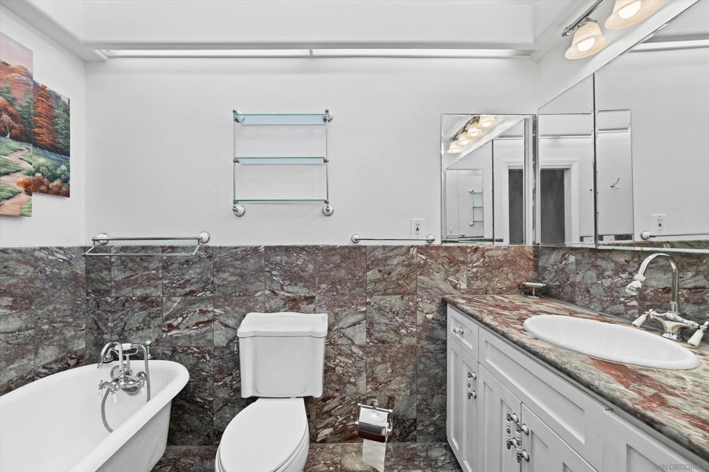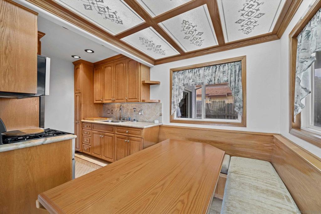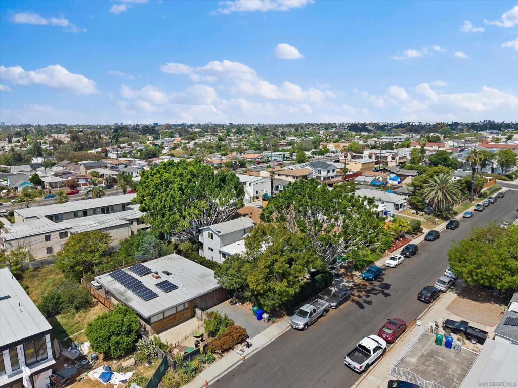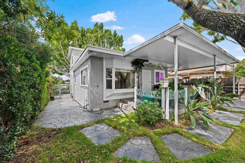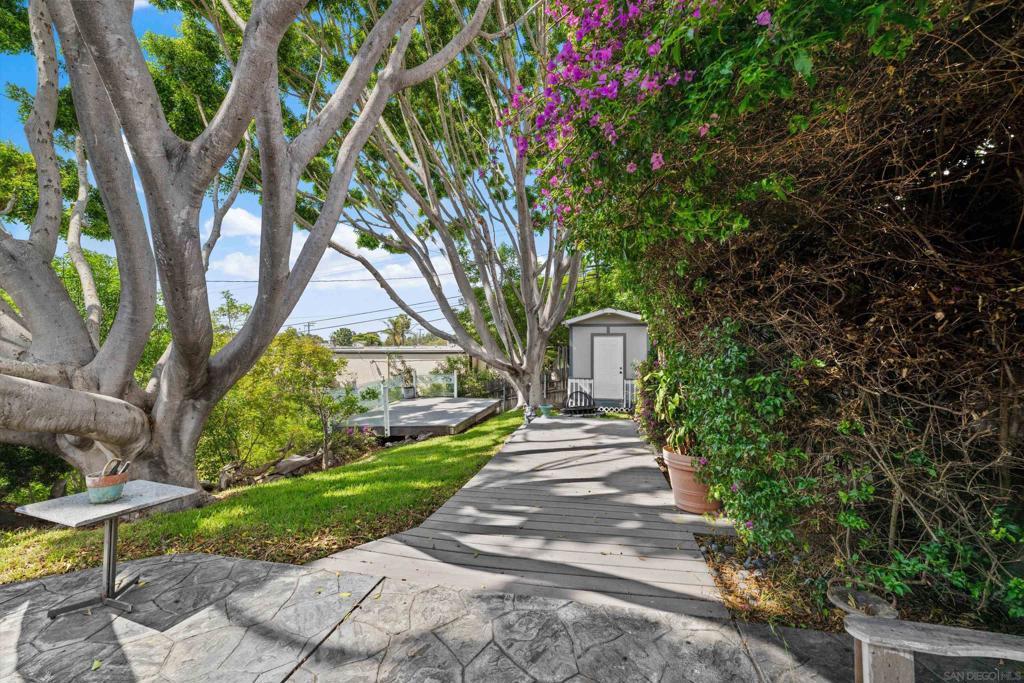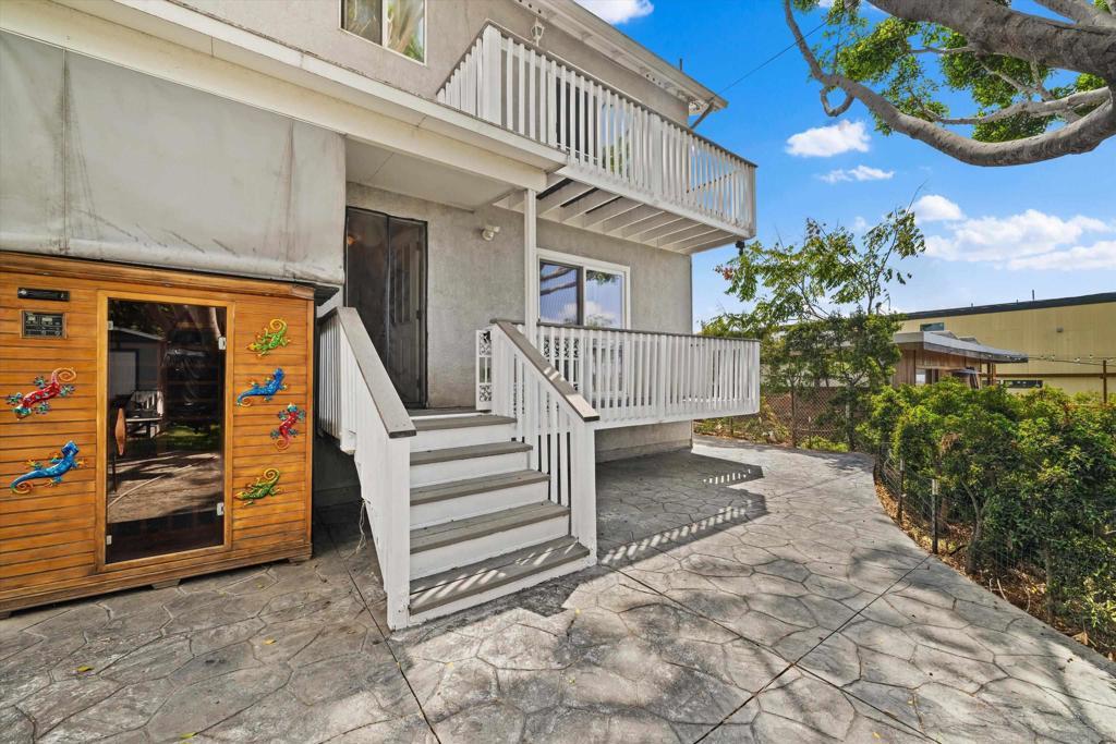 Discover the ultimate urban sanctuary in this meticulously upgraded 1,230-square-foot residence, perfectly situated in a central San Diego pocket known for its refreshing year-round breezes and effortless highway access. This isn't just a home; it’s a private retreat designed for those who value both modern indoor elegance and a resort-style outdoor lifestyle. Step inside to find gleaming hardwood floors that flow through an open and inviting floor plan. The heart of the home is a chef’s dream kitchen, boasting premium marble countertops, rich wood cabinetry, and a suite of high-end appliances including a gas stove, oven, refrigerator, and microwave. A custom built-in dining table with integrated seating offers the perfect spot for morning coffee or intimate dinners. The versatile layout features two spacious bedrooms on the main level, while the entire upstairs is dedicated to a primary bedroom retreat. Currently configured as a vibrant entertainment hub, the pool table is included! The exterior is a masterclass in low-maintenance luxury. A stamped concrete driveway leads to a backyard transformed into a "private oasis" by magnificent, towering Ficus trees. Expansive Trex composite decking is used for the patio, balcony, and view deck, ensuring durability for years to come. The outdoor amenities are unmatched: a two-person sauna for relaxation, an eight-burner BBQ with smoke for the gourmet griller, a cozy firepit for cool evenings, and a matching shed for extra storage. Experience privacy, style, and a touch of the tropics right in the heart of the city.