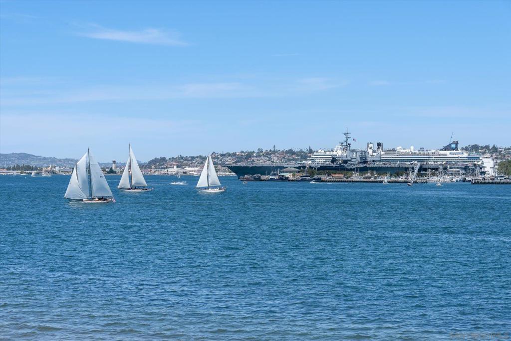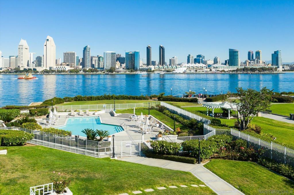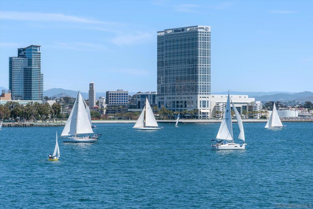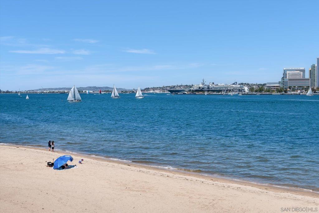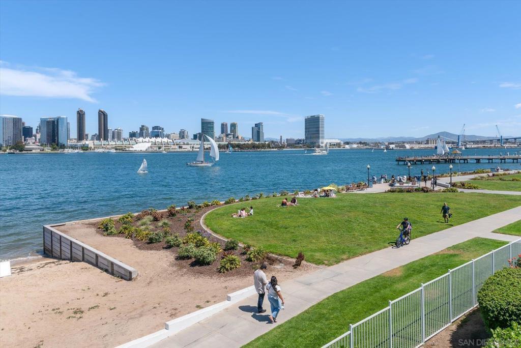 "No Kidding" panoramic full-on-water views of San Diego Bay & the Downtown Skyline. Gorgeously appointed with high-end designer finishes and textiles. SubZero, Dacor and Wolfe appliances. Luxurious & spacious primary bathroom with lovely built-in cabinetry, walk-in closets and ample storage. Beautiful tiled walk-in shower. Built in cabinetry thru-out with tastefully hidden Murphy bed in living room and new premium carpet. Exquisite marble flooring in half bath. Absolutely amazing water views from the kitchen, dining & living rooms. Enjoy fireworks, ships and boats saililng by from your covered patio terrace as well as having full access to the fun sandy beach and grass lawn right outside your unit. Hop on the ferry to the Gaslamp, Rady's Shell, Padres PETCO park, Seaport Village & Port of San Diego. Stroll to Coronado restaurants & shopping. The Landing offers a wonderful outdoor heated pool, fitness center, lovely gardens & landscaping. 2 underground parking spaces right next to the elevator. Truly an opportunity of a lifetime! This is an exceptional home with breathtaking views that rarely comes up on the market. A stunning & rare beauty! This is truly an amazing place to live. The full panoramic views of San Diego Bay are absolutely breathtaking and seductive! Enjoy watching ships and boats sail through the harbor from your private terrace. Hop onto the ferry for dining & shops at the famous Gaslamp, or enjoy some fantastic live music entertainment at the outdoor Rady's Shell or take in a San Diego Padres game at PETCO park. Easy peezy because it is all right there in your backyard. This luxurious unit has gorgeous finishes. Wait till you see the stunning marble flooring in the half bath. BEEE-U-TI-FUL! The primary bathroom boasts a beautifully tiled walk-in shower, lovely cabinetry with ample storage and walk-in closets. New carpet and a Murphy bed tastefully built-in to the living room cabinetry. The Landing offers a heated outdoor pool right on the water and a fitness center, meeting rooms and lovely landscaped grounds including a gorgeous rose garden outside the entrance. 2 parking spaces are located right as you come out of the elevator in an underground garage. This is truly a very special place. The views are intoxicating!