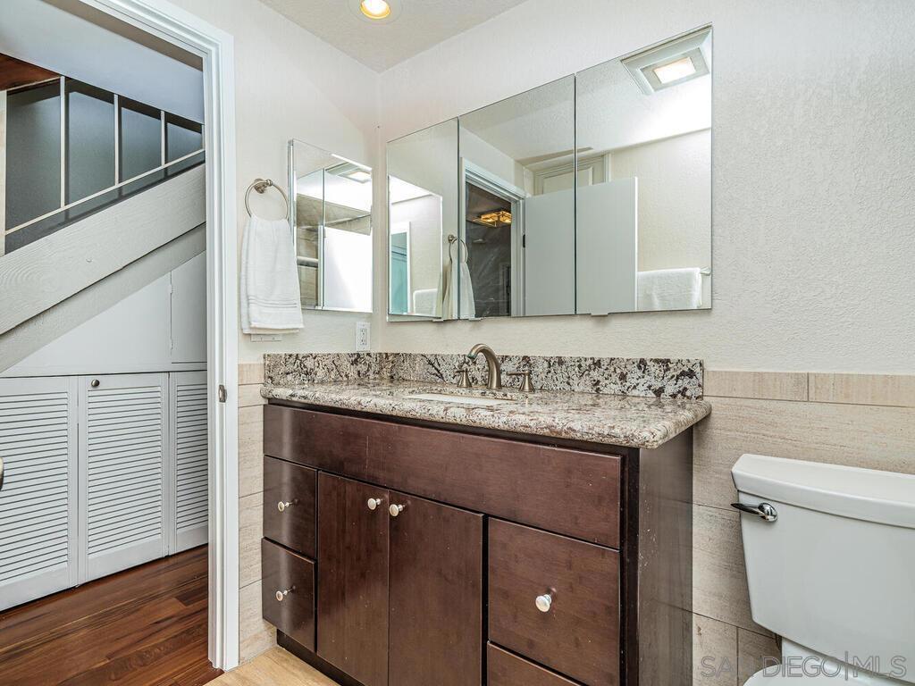 Stunning Point Loma Townhome with high end finishes including granite countertops with backsplash, stainless steel appliances, tankless water heater, and built-in storage solutions throughout. The spacious living room features vaulted ceilings, a custom fireplace and opens to the balcony where you can take in views of the Sea World fireworks. Downstairs the primary bedroom features brand new modern closets, a custom desk/work area and connects to the private patio with beautiful new hardscape. Enjoy the amazing tiled bathrooms including a beautiful glass shower enclosure and custom tile inserts. This is a gated community with a 1 car garage, 1 assigned spot, jacuzzi, and an in unit washer and dryer. Come enjoy this fantastic San Diego location just minutes to beaches, dog parks, Sea World, retail, fine dining and all that San Diego has to offer. Water and trash is included.