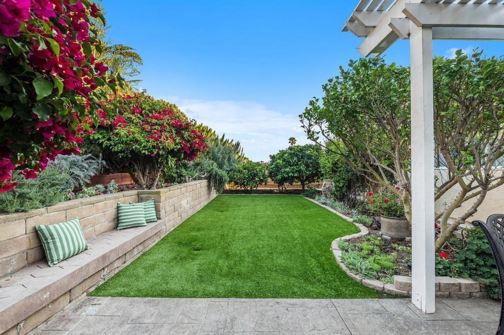 Step into this warm and inviting sun-drenched sanctuary. This charming 3-bedroom, 2-bath home offers seamless indoor-outdoor living, with artistically landscaped front and back gardens with water wise plantings and bursting with vibrant color. Enjoy privacy and lovely views from both the front and back yards. A custom stamped-concrete patio wraps around the back and one side of the home, and well placed pavers in the front of the home for a smaller patio, creating a resort-like feel where every day feels like a vacation. French glass doors open from the back patio into bright, airy living and dining areas. Inside, you'll find fresh, clean finishes, including high-quality Merbau hardwood floors throughout the main living spaces. The hallway bath features elegant tile walls and clean surround, while the spacious master bath offers a peaceful walk-in shower and luxurious glass doors that invite you to unwind. Located in a quiet cul de sac in the highly walkable Bay Ho neighborhood, this turnkey home is just minutes from everything San Diego has to offer. Enjoy a 10-minute drive to Mission Bay, the Pacific Ocean and surfing beaches, La Jolla, UCSD, Torrey Pines, downtown San Diego, SeaWorld, the San Diego Zoo, and the airport. A new Trader Joe’s is currently under construction at nearby Clairemont Town Square, adding even more convenient shopping and dining options to the area.