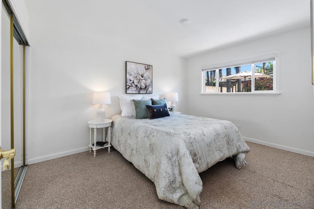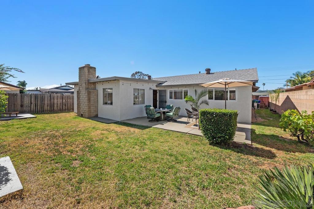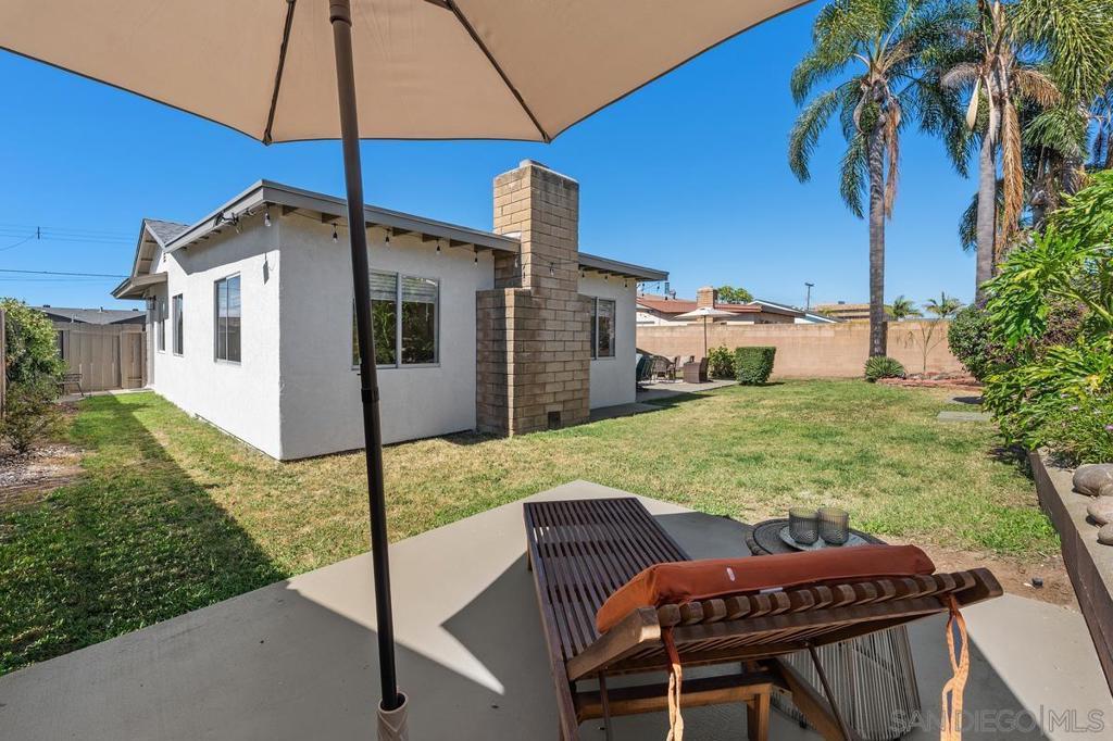Don’t miss this opportunity to own a 3BR/2BA home tucked away in a quiet pocket of North Clairemont. This property offers great potential and is ready for your personal touch. Enjoy beautiful curb appeal with a refreshed exterior, including a newly painted garage, updated stucco, and enhanced landscaping. The open, spacious floor plan is light and bright, featuring a large living area accented with wood-beamed ceilings and a warm brick fireplace. Additional features include neutral carpeting and ceiling fans throughout. The galley kitchen offers abundant storage and includes a cozy nook area. The private backyard boasts two concrete patio spaces—perfect for outdoor living and entertaining. Centrally located with easy access to the beach, downtown, UTC/UCSD, and major freeways. Situated on a flat, expansive 5,900 sq ft lot, this home is an ideal canvas to create your dream space!