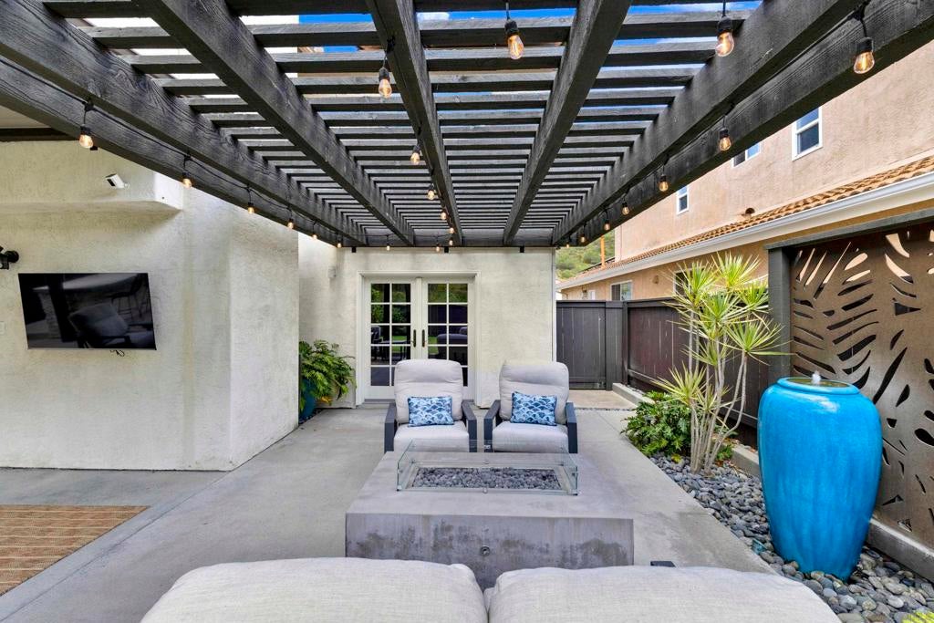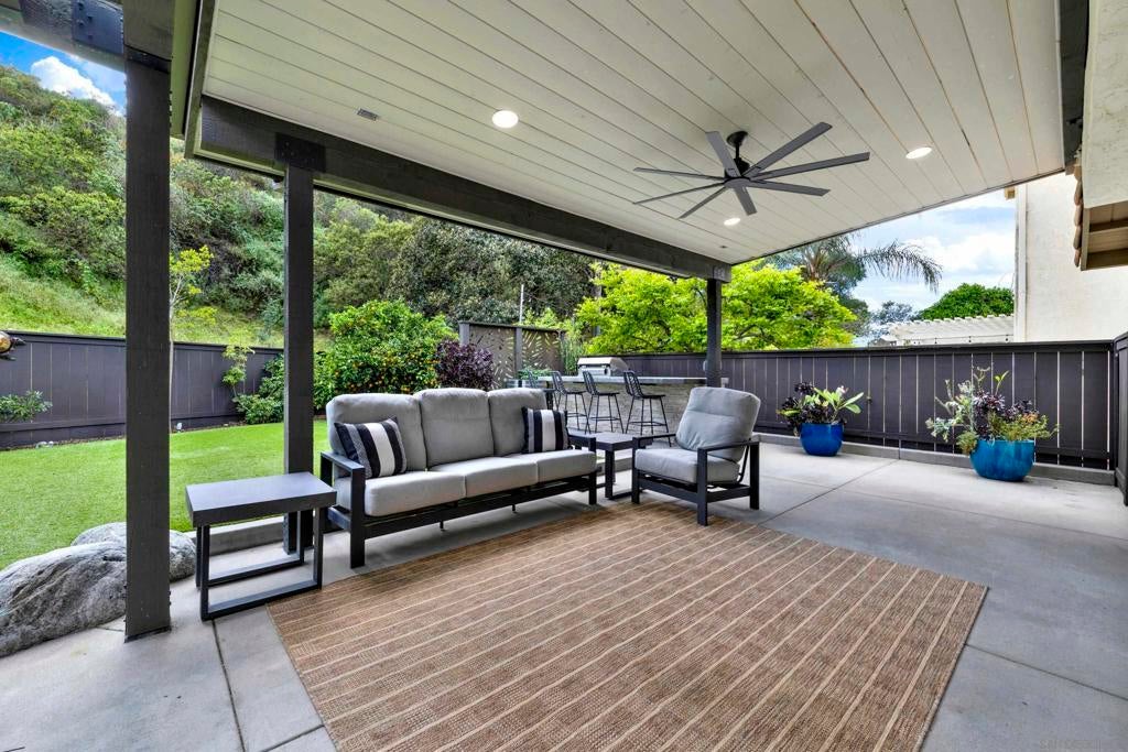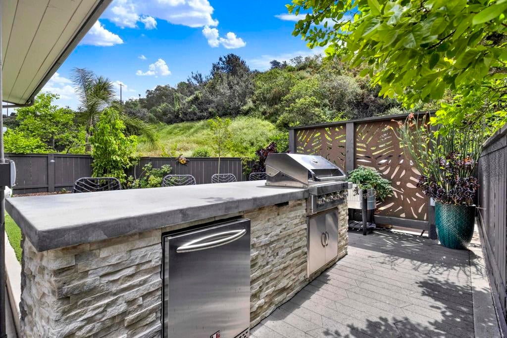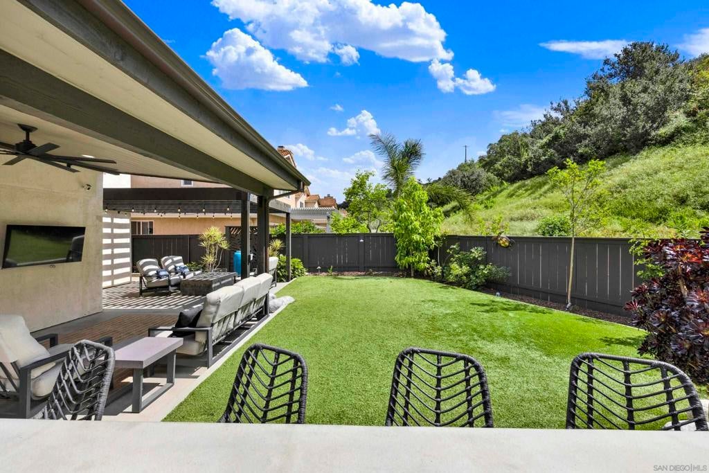 Nestled in the heart of Rancho Bernardo in the highly desirable neighborhood of Camino Bernardo, this thoughtfully upgraded residence blends comfort, style, and intentional design throughout. With no neighbors behind and backing up to open space, this exquisite home features a backyard that is an entertainer's paradise. Step outside to a beautifully curated backyard designed for both relaxation and entertaining complete with custom dusk to dawn light scaping completed in 2021. Owned 15 panel, 390w/each solar system with Tesla Powerwall 3 (installed in June 2024) + 240V for EV charging in the garage. Enjoy low-maintenance turf, mature fruit trees, a cozy fire pit, and dual patio covers that create multiple outdoor living spaces. The fully equipped outdoor area includes a built-in BBQ and mounted TV, ideal for hosting or unwinding under the San Diego sky. Wide-plank flooring in soft grey hues flows seamlessly across the home, OWNED solar system, the HVAC system has been thoughtfully upgraded approximately two years ago, and updated dual-glazed vinyl windows throughout the home increase energy efficiency and comfort. The primary suite is a true retreat—designed for tranquility and indulgence—featuring a spa-inspired bathroom and dual closets, including an expansive walk-in and a secondary closet, blending function with contemporary elegance. Elegant built in cabinets adorn the walls of the living spaces by the garage, giving the home an elevated, yet wholesome, feel throughout. Kitchen is a chef's paradise; complete with SS appliances, a plethora of storage cabinets, soft close cabinetry, oversize kitchen island, an abundance of countertop space, and a designated bar area for additional sitting and entertaining. The gorgeous floor to ceiling fireplace perfectly situated off the dining room and kitchen completes the aesthetic of the home. Generous half bath downstairs provides comfort and ease for guests. The Camino Bernardo HOA includes a pool and spa. Ideally situated by freeway access, trails, and located in the highly desirable Poway Unified School District, this delightful, well-cared for, and intentional home checks all the boxes. Come see it today, before it's too late!