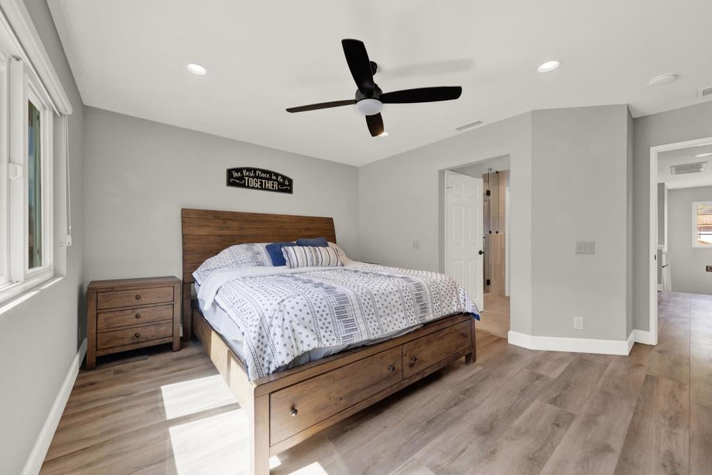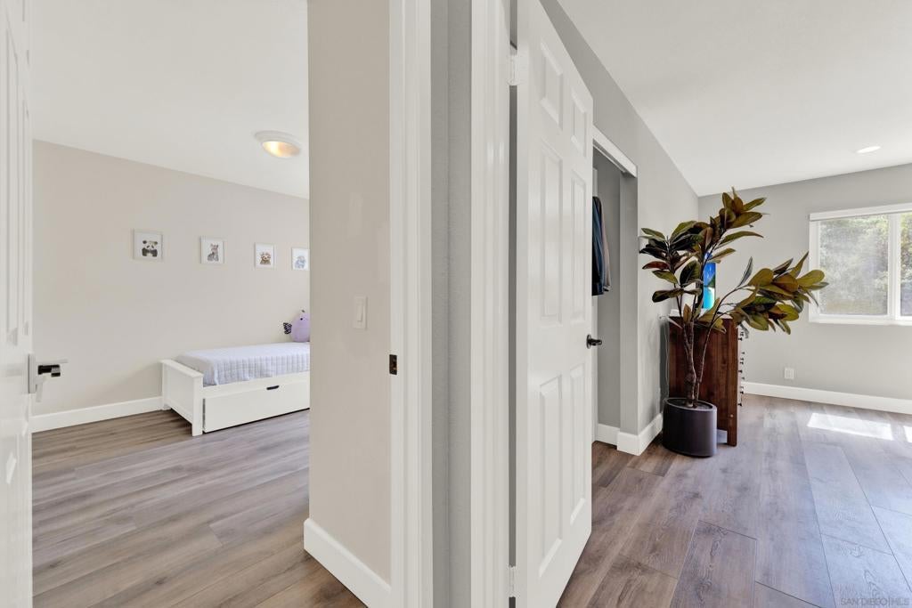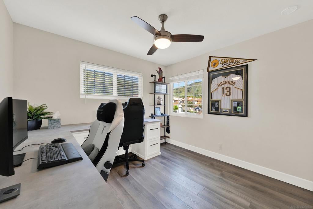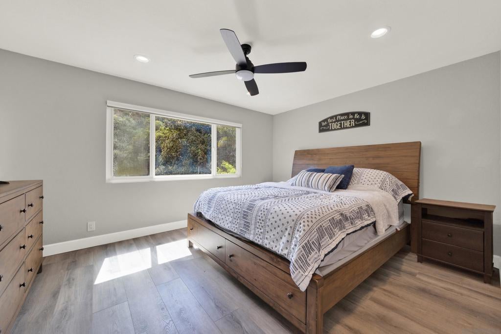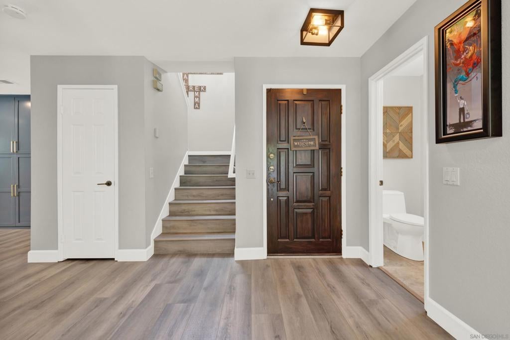 Nestled in the heart of Rancho Bernardo in the highly desirable neighborhood of Camino Bernardo, this thoughtfully upgraded residence blends comfort, style, and intentional design throughout. With no neighbors behind and backing up to open space, this exquisite home features a backyard that is an entertainer's paradise. Step outside to a beautifully curated backyard designed for both relaxation and entertaining complete with custom dusk to dawn light scaping completed in 2021. Owned 15 panel, 390w/each solar system with Tesla Powerwall 3 (installed in June 2024) + 240V for EV charging in the garage. Enjoy low-maintenance turf, mature fruit trees, a cozy fire pit, and dual patio covers that create multiple outdoor living spaces. The fully equipped outdoor area includes a built-in BBQ and mounted TV, ideal for hosting or unwinding under the San Diego sky. Wide-plank flooring in soft grey hues flows seamlessly across the home, OWNED solar system, the HVAC system has been thoughtfully upgraded approximately two years ago, and updated dual-glazed vinyl windows throughout the home increase energy efficiency and comfort. The primary suite is a true retreat—designed for tranquility and indulgence—featuring a spa-inspired bathroom and dual closets, including an expansive walk-in and a secondary closet, blending function with contemporary elegance. Elegant built in cabinets adorn the walls of the living spaces by the garage, giving the home an elevated, yet wholesome, feel throughout. Kitchen is a chef's paradise; complete with SS appliances, a plethora of storage cabinets, soft close cabinetry, oversize kitchen island, an abundance of countertop space, and a designated bar area for additional sitting and entertaining. The gorgeous floor to ceiling fireplace perfectly situated off the dining room and kitchen completes the aesthetic of the home. Generous half bath downstairs provides comfort and ease for guests. The Camino Bernardo HOA includes a pool and spa. Ideally situated by freeway access, trails, and located in the highly desirable Poway Unified School District, this delightful, well-cared for, and intentional home checks all the boxes. Come see it today, before it's too late!