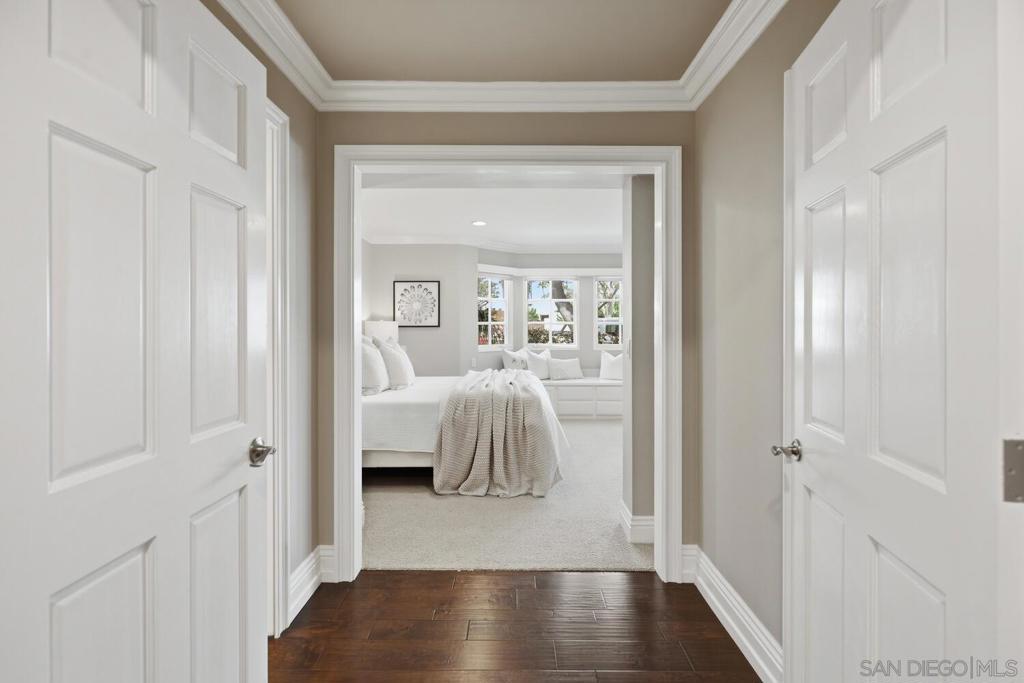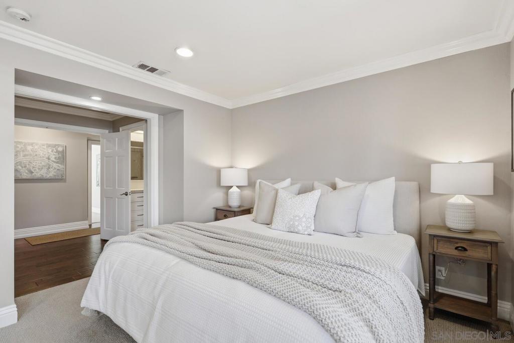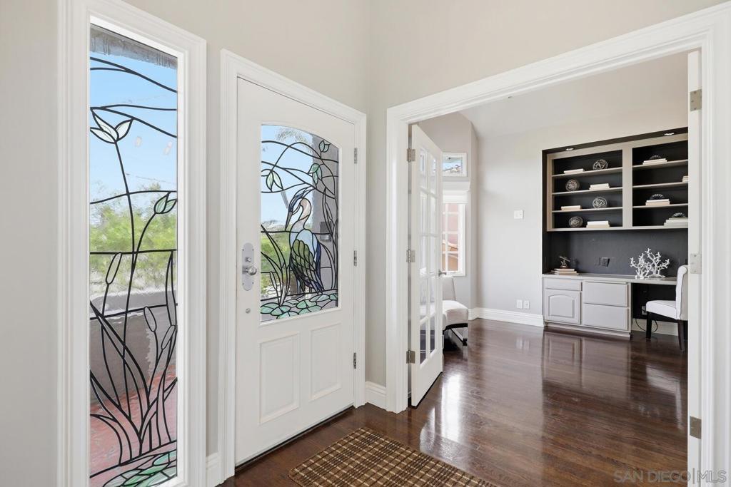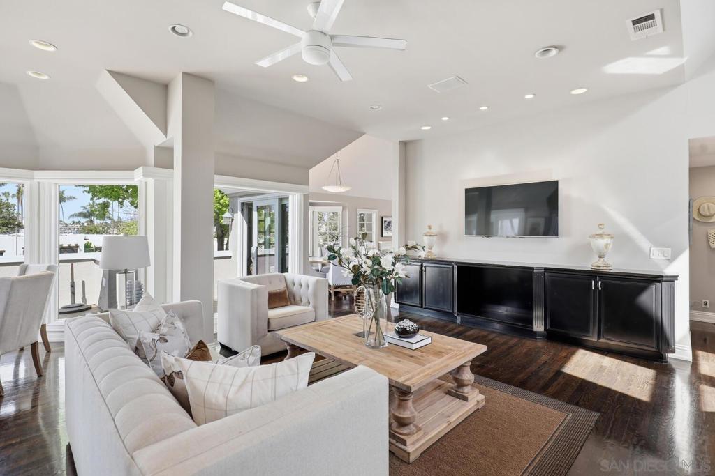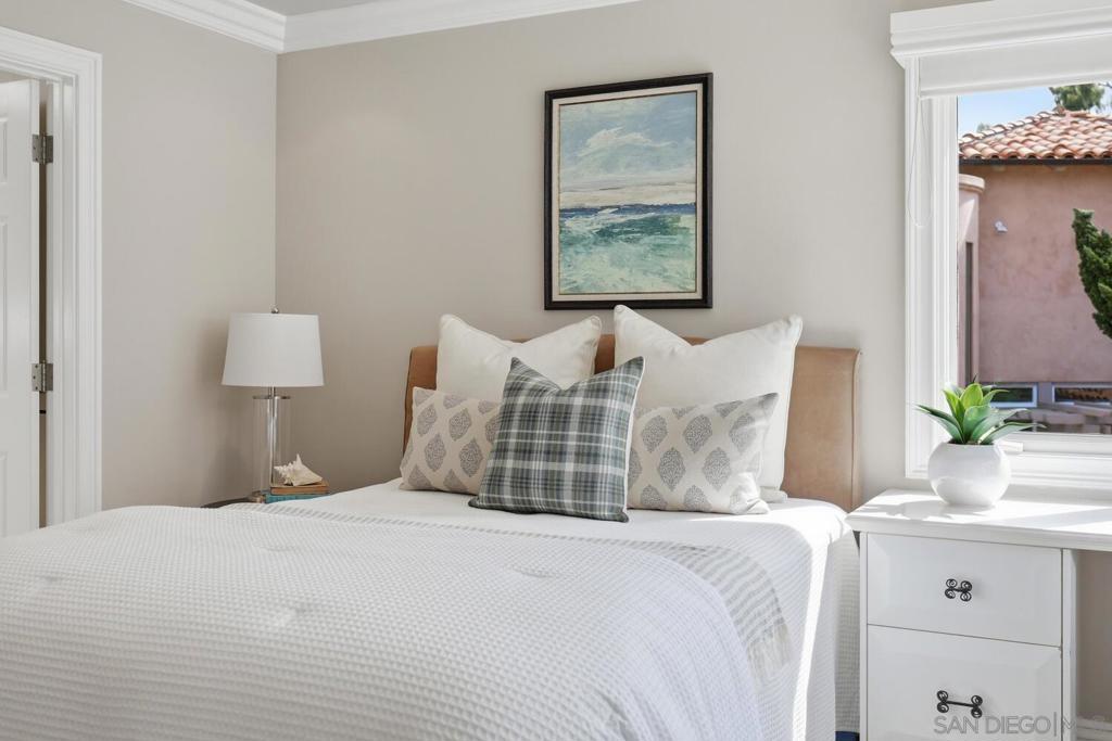 A rare opportunity to own a truly special home in the heart of Coronado, this exceptional residence blends timeless elegance with thoughtful design and an unbeatable location. Tucked away on a quiet street just across from Bay Circle Park, the home offers a peaceful setting while remaining moments from the best of the island.Designed with a reverse floorplan to maximize its breathtaking surroundings, the upper level showcases a stunning view deck with sweeping vistas of Glorietta Bay, the Coronado Golf Course, and the iconic Hotel del Coronado. It’s the perfect setting for entertaining or simply enjoying Coronado’s signature sunsets.Inside, the home features four spacious en-suite bedrooms and a functional office, including a full bedroom and bath on the main living level, complemented by a versatile loft—ideal for guests, a home office, or additional lounge space. Vaulted ceilings and expansive windows fill the living areas with natural light, creating a bright and airy ambiance throughout. A formal living room and separate great room provide both elegant entertaining spaces and comfortable everyday living.The primary suite is a true retreat, highlighted by incredible dual closets offering abundant storage and a sense of luxury. Opening to a private backyard, a perfect sanctuary to enjoy the sunshine and breezes.Every detail has been thoughtfully curated to enhance both functionality and style, resulting in a home that feels elevated yet welcoming.With its premier location, exceptional layout, and captivating views, this is an amazing opportunity!