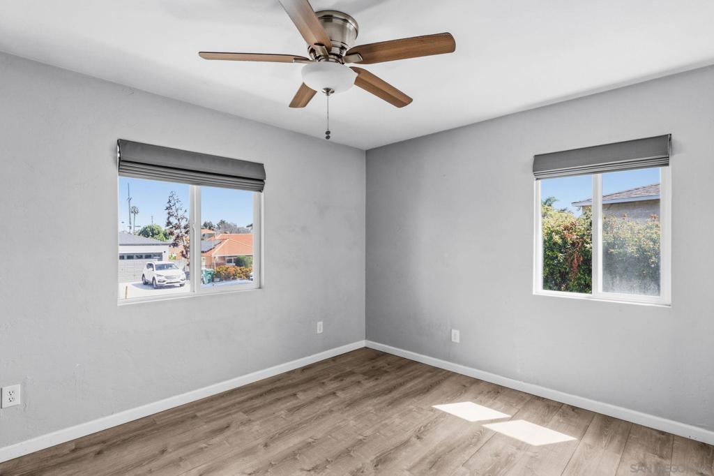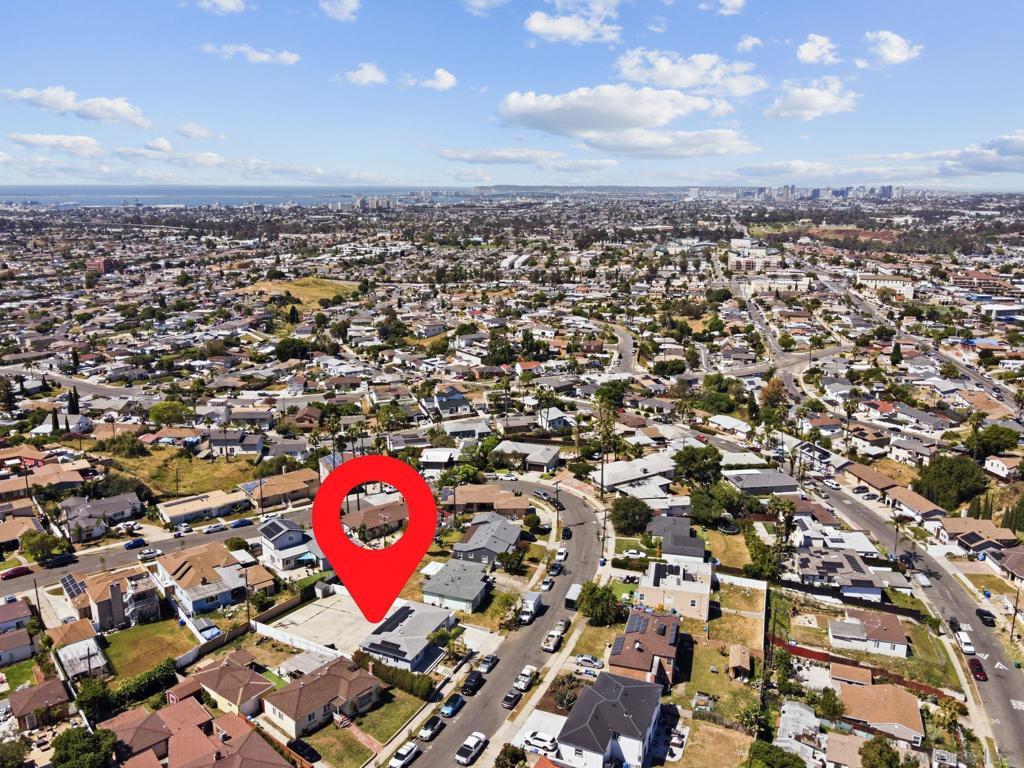 Move-in ready! This one won’t last. No HOA and a quiet residential setting in the Valencia Park neighborhood, this single-story 3 bed / 2 bath home in San Diego features 1,293 sq ft with unique benefits: an oversized, fully owned solar system for enhanced energy efficiency, stainless steel kitchen appliances, flexible layout for any use, central A/C throughout, and rare on-site RV/boat parking. Meticulously maintained, the open kitchen, living, and dining area creates a functional great room layout ideal for everyday living and entertaining. The spacious primary suite features an ensuite bath with dual-sink vanity, while the well-proportioned secondary bedrooms offer flexibility for a variety of living arrangements. The expansive yard space adds to the home’s appeal, providing room to enjoy outdoor living, recreation, and more. Set on a level ~7,200+ sq ft lot, the property features a large backyard offering exceptional flexibility for multiple vehicles, RVs, boats, storage, or outdoor entertaining. The lot also offers excellent ADU/JADU potential (buyer to verify), creating flexibility for future expansion or additional income. Conveniently located approximately 10–15 minutes from Downtown San Diego and the Gaslamp District, around 15 minutes to San Diego International Airport, and roughly 25–30 minutes to the beach. All while grocery stores, gyms, and everyday conveniences are less than a 5-minute drive away. A rare combination of turnkey, oversized owned solar, usable outdoor space, and parking flexibility, homes with this setup are hard to find in San Diego.