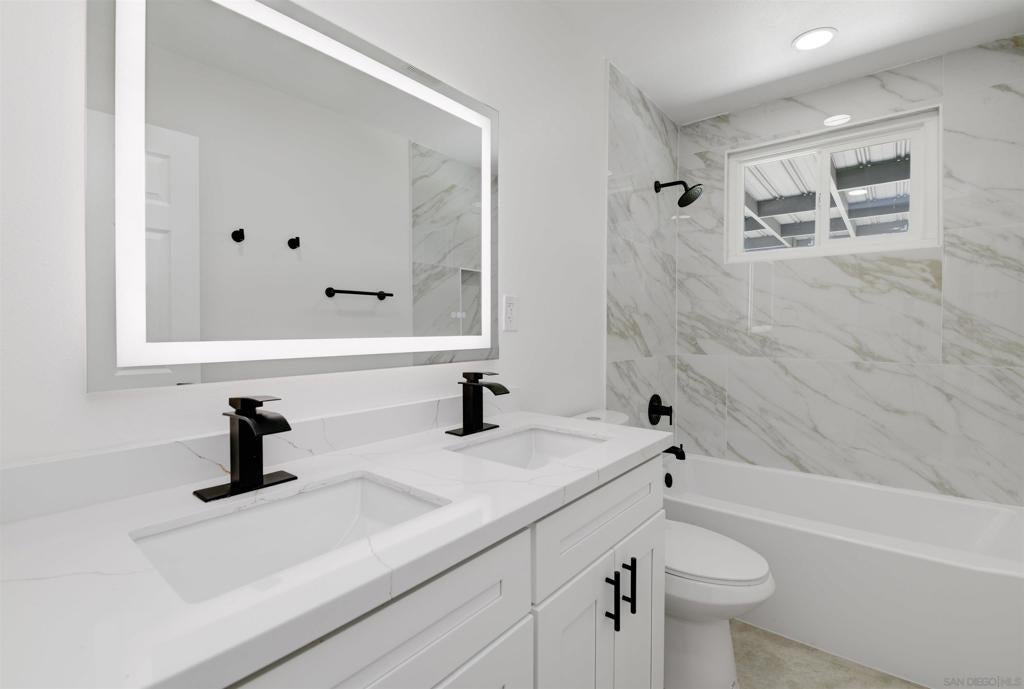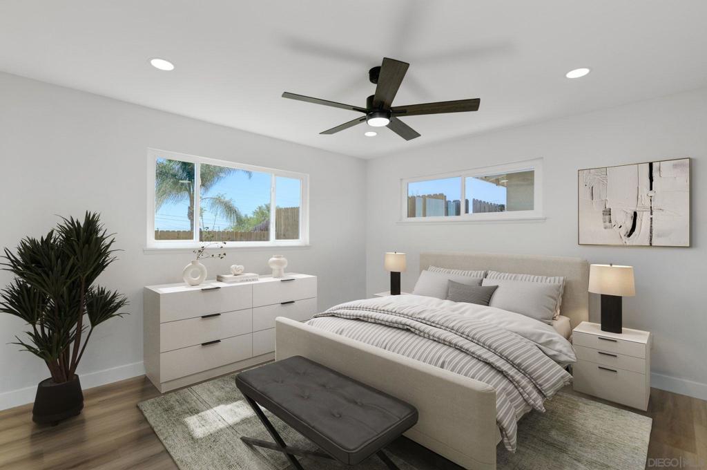 (virtual staging) Welcome to this beautifully remodeled single-story home in the highly desirable San Carlos neighborhood of San Diego. This charming residence blends classic ranch-style character with modern updates throughout. Offering 4 bedrooms, 2 bathrooms, and approximately 1,356 sq ft of living space, the home features a bright open floor plan filled with natural light. The inviting living room is anchored by a cozy fireplace, creating a warm and welcoming space for relaxing or entertaining. The fully remodeled kitchen showcases modern cabinetry, sleek countertops, stainless steel appliances, and designer fixtures, flowing seamlessly into the dining and living areas for easy everyday living. Both bathrooms have been beautifully renovated with contemporary finishes, while the four spacious bedrooms provide flexibility for family, guests, or a home office. Step outside to enjoy indoor-outdoor living with a covered patio and private backyard—perfect for entertaining, dining, or simply enjoying San Diego’s year-round climate. Additional highlights include updated windows and doors, modern lighting throughout, and a 2-car attached garage with direct access to the kitchen. Conveniently located near parks, schools, shopping, and local amenities, this move-in ready San Carlos home offers comfort, style, and an exceptional location.
