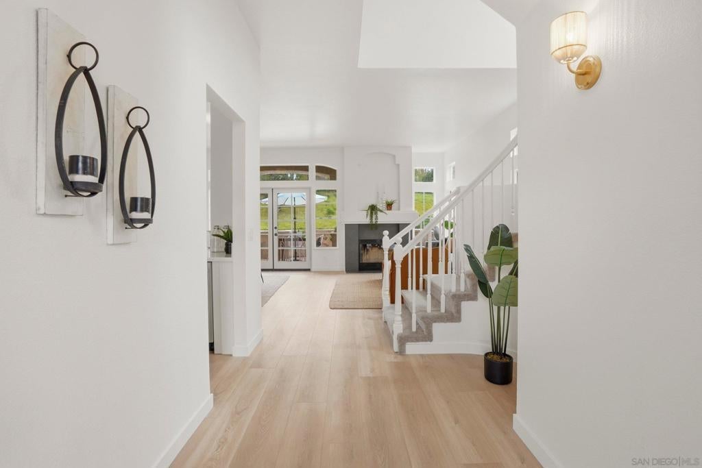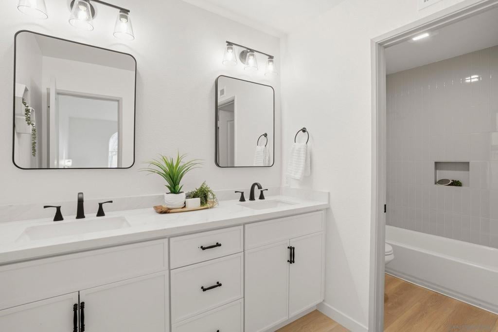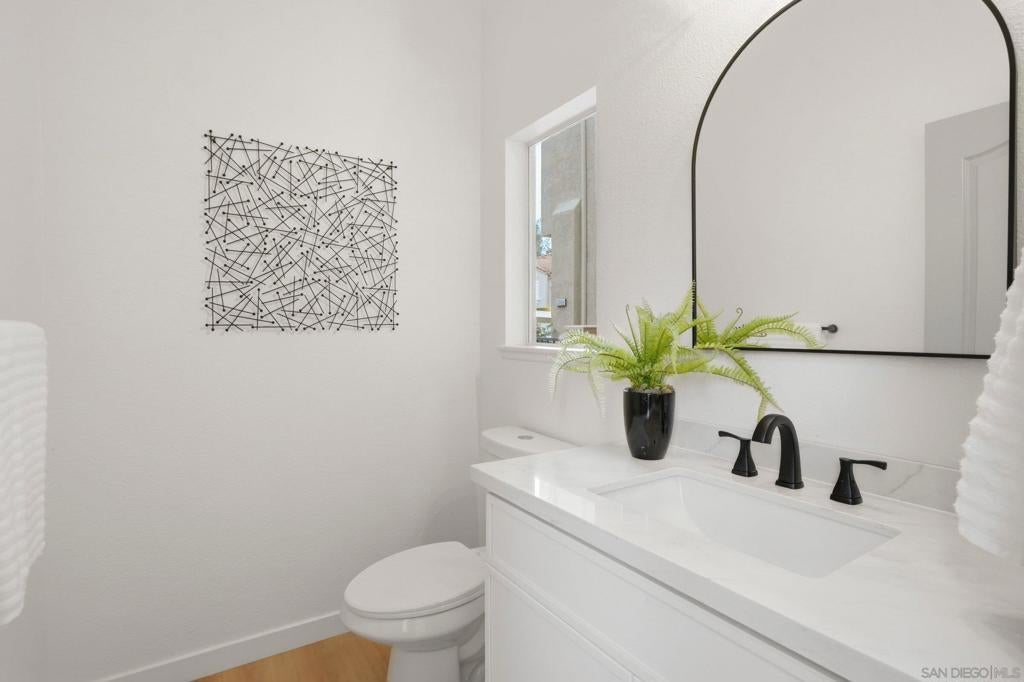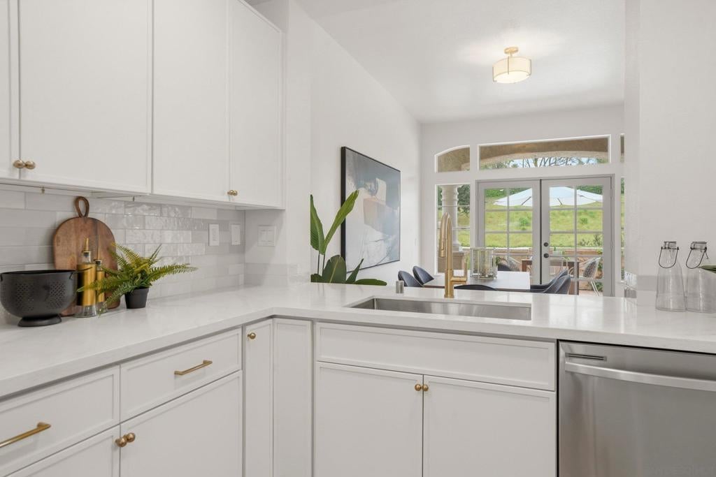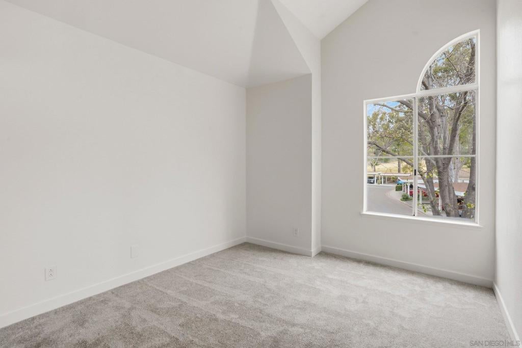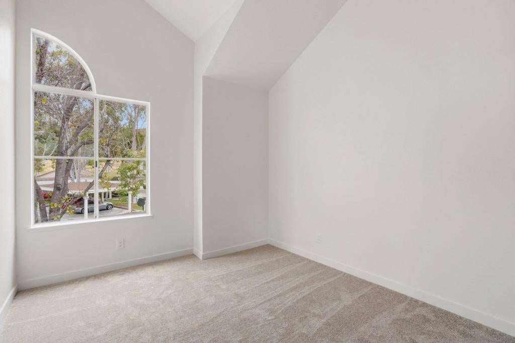 You’ll fall in love with this beautiful end unit 3 bedroom, 2.5 bath townhome located within the highly desirable Belsera Community in Tierrasanta. Perfecty positioned on a premium lot with picturesque park and mountain views! Beautifully designed for effortless indoor-outdoor living, the home features spacious patios at both the front and back—ideal for al fresco dining, relaxing, or entertaining while taking in the serene surroundings and mesmerizing views. Extensive renovations elevate every corner of the home, including luxury vinyl wood plank flooring, fresh interior paint, new carpet, recessed lighting, new white cabinetry, countertops, stylish lighting and fixtures. The kitchen showcasing quartz countertops, a tiled backsplash, farmhouse sink, pendant lighting, stainless steel appliances—perfect for casual dining or bar seating. A modern staircase leads you upstairs to the bedrooms, where the spacious primary bedroom serves as a relaxing retreat, complete with beautiful views, walk-in closet, and an en-suite bathroom with quartz countertops and a large walk-in shower with elegant tile finishes. Secondary bedrooms are located just down the hall and share a well-appointed bathroom with a tiled tub/shower combo and white quartz countertop. A brand new HVAC system was just installed. The property includes one attached garage and one detached garage. Located in a quiet neighborhood with two private pools & spas, plenty of green space to enjoy, volleyball courts, and bbq areas. DON’T MISS OUT ON THIS BEAUTY!