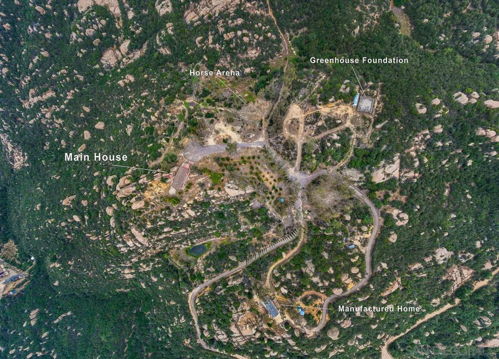 Expansive 41.65-acre retreat in scenic Jamul featuring two residences totaling approximately 2,892 square feet, with a combined 6 bedrooms and 4 bathrooms, offering a rare blend of privacy, scale, and versatility. A long, winding paved driveway, representing a $400,000 investment, welcomes you through a striking row of mature cypress trees, creating a truly memorable approach to the property. The main residence offers approximately 1,587 square feet with 3 bedrooms and 2 bathrooms, ideally positioned to capture sweeping panoramic views, including Otay Lake, the surrounding valley, and even distant views of the Coronado Bridge. Enjoy both sunrise and sunset views from this peaceful setting, while an in-wall A/C unit provides added interior comfort. Recent updates include newer flooring, a replaced sink, dishwasher, microwave, toilets, and fresh interior and exterior paint. The manufactured home, also built in 1986, offers approximately 1,300 square feet with 3 bedrooms and 2 bathrooms and has been fully renovated, providing excellent additional living space or income potential. It is currently occupied by a long-term tenant paying $2,500 per month plus $130 per month for trash service, creating immediate, stable cash flow. The grounds are rich with usable features and agricultural potential, including a grove of over 100 mature macadamia nut trees, a dedicated horse arena, and a large greenhouse foundation (approximately 60’ x 60’, not measured) that previously had water and electricity connections in place. Two substantial water reservoirs, approximately 10,000 and 5,000 gallons, support the property, along with a well system that has been recently serviced with a new tank and pump. The septic system has been recently serviced and maintained to ensure optimal performance. With extensive improvements already completed, breathtaking natural beauty, and a tranquil, private setting, this property presents a rare opportunity for a private estate, equestrian use, agricultural venture, or long-term land hold in one of Jamul’s most picturesque locations.