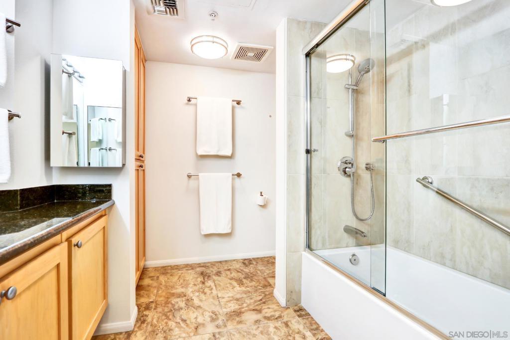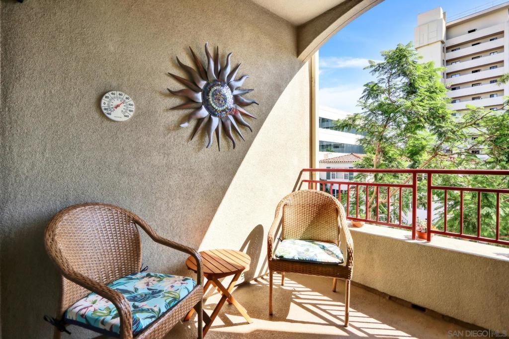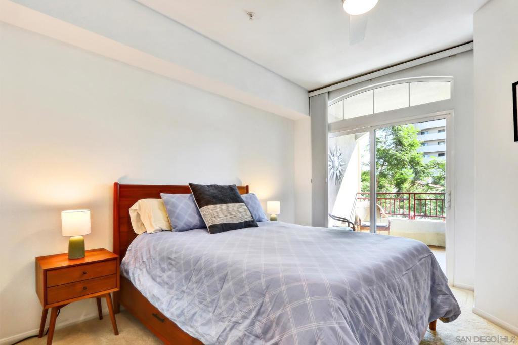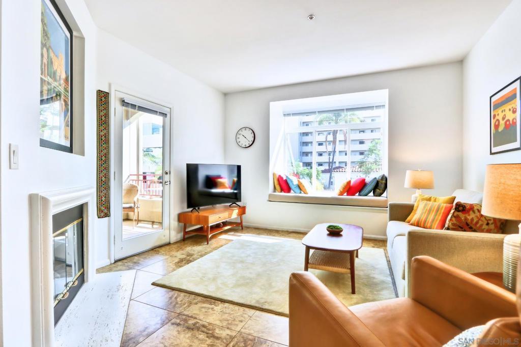 Welcome home to the sought-after Laurel Bay community on 5th Avenue, just steps from iconic Balboa Park. From the moment you enter, you’re greeted by a bright, airy living space filled with natural light and peek views of the park. A private patio offers the perfect setting for morning coffee or evening relaxation with serene greenery from Balboa Park as your backdrop. A charming bay window seat creates a cozy nook beside the fireplace ideal for unwinding. The beautifully remodeled kitchen blends modern style with everyday functionality, featuring new stainless steel appliances, a marble backsplash, custom cabinetry, and sleek white quartz countertops. This meticulously maintained one-bedroom condo offers a true sense of retreat, complete with a spacious updated bathroom, walk-in closet, in-unit washer/dryer, and convenient proximity to the elevator. Laurel Bay is a tranquil, private community with resort-style amenities including a pool and spa, fitness center, business center, grand lobby, lush courtyard, and an inviting lounge with a grand piano for entertaining. Ideally located in the heart of Bankers Hill, you’re minutes from Downtown, Little Italy, Hillcrest, and North Park with easy access to farmers markets, coffee shops, dining, and boutique retail. This is a rare opportunity to enjoy elevated urban living in one of San Diego’s most desirable neighborhoods.