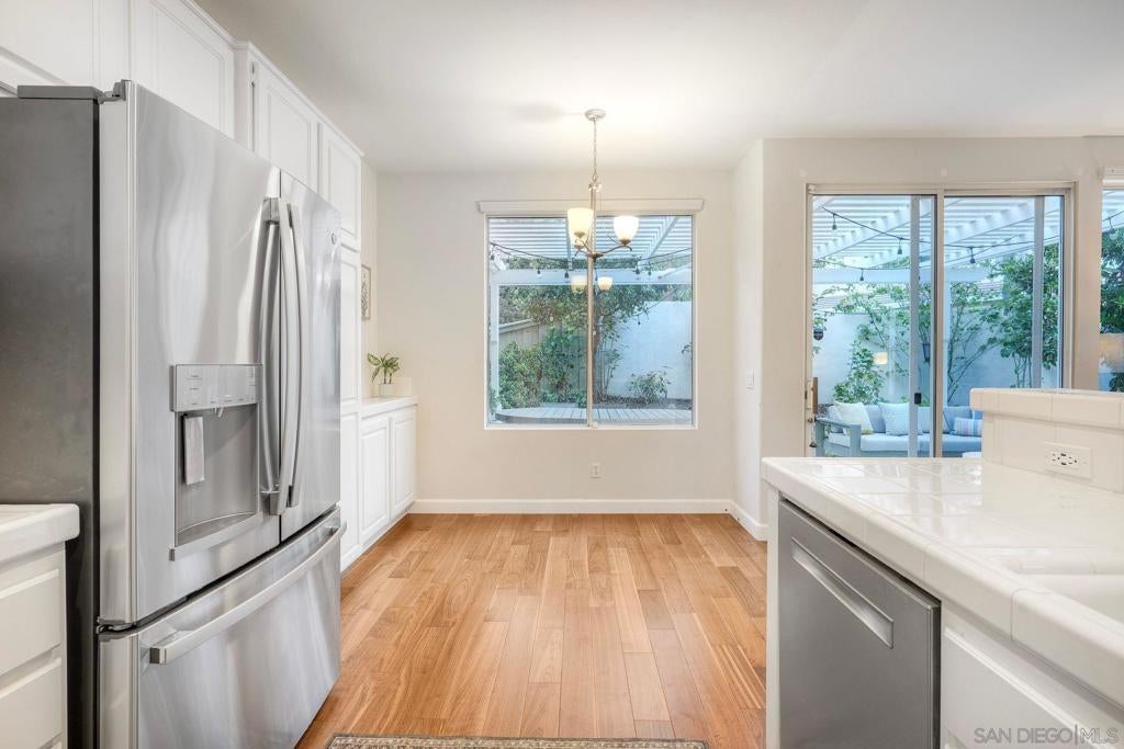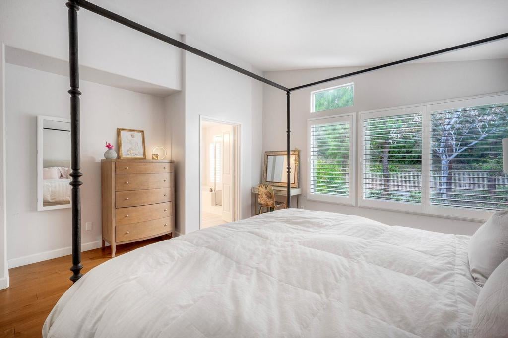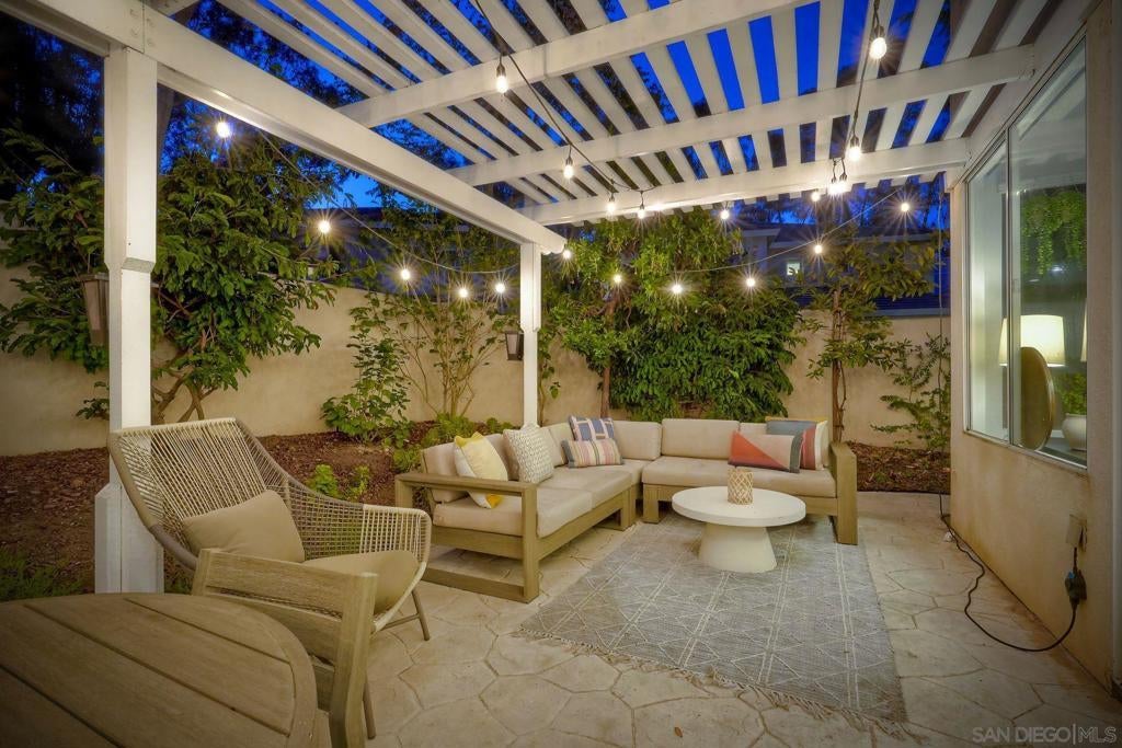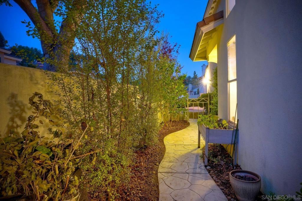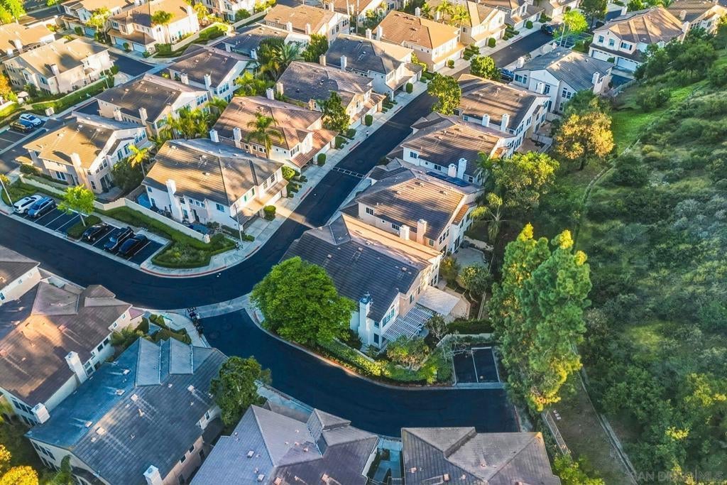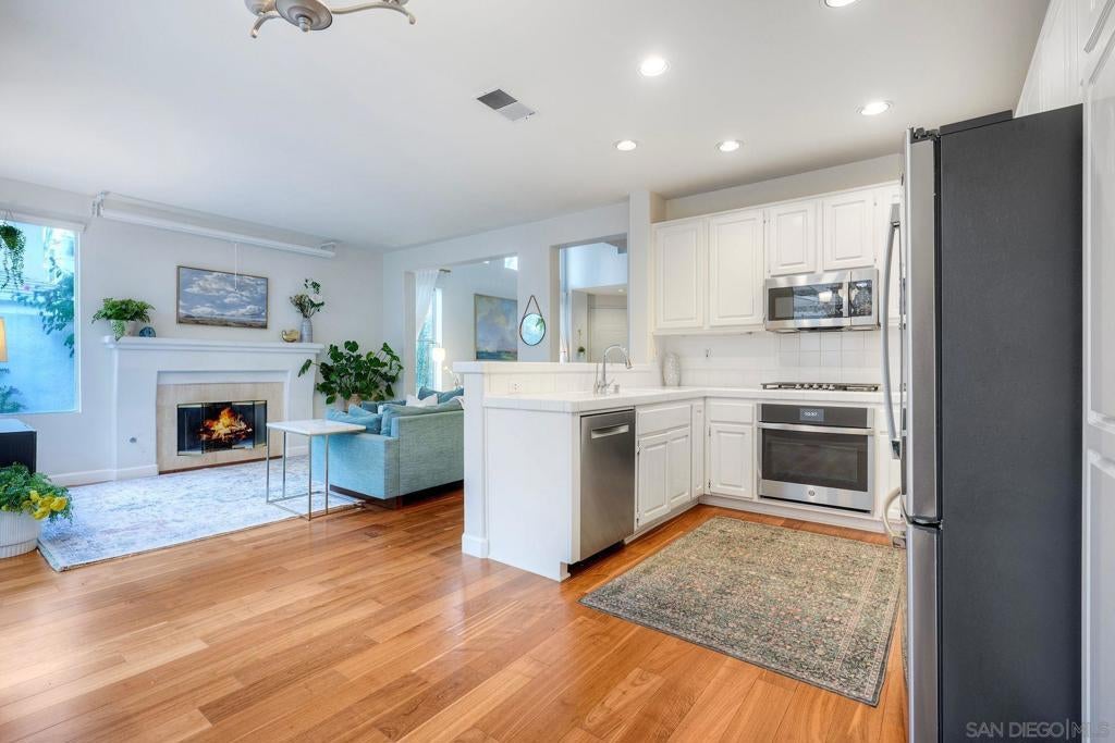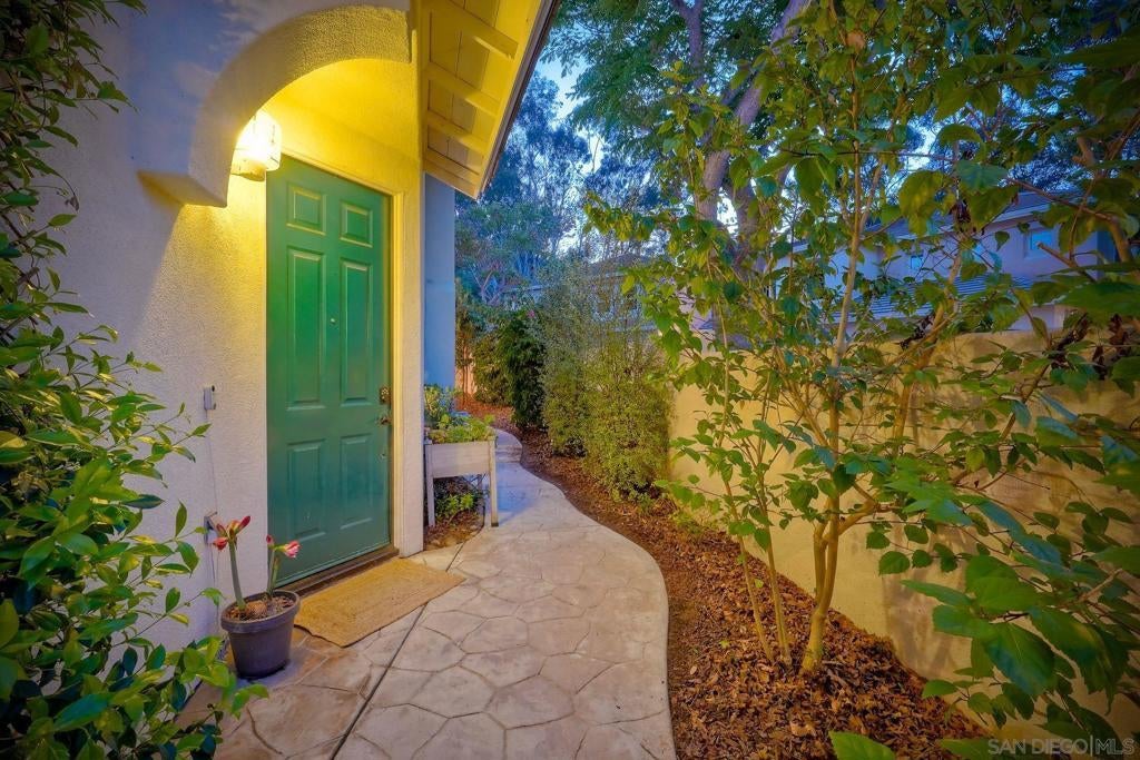 Located within the gated community of Canyon Ridge in the heart of Carmel Valley, this end-unit 3-bedroom, 2.5-bath townhome offers 1,859 sqft of well-balanced living space designed for everyday comfort & functionality. The main level is centered around the home’s living spaces, where the living room connects seamlessly to the kitchen & adjacent family room, creating a natural flow for both daily living & gathering. The kitchen is equipped with newer stainless steel appliances & opens to the family room, where a projector screen is installed above a beautiful fireplace. The 2nd level features a primary suite with vaulted ceilings, large walk-in closet with custom shelving, & ensuite bathroom. The secondary bedrooms provide flexibility for guests or work-from-home needs & the spacious laundry room is an added convenience. Just off the main living area, the backyard offers a private outdoor setting with lush landscaping & ample space for outdoor dining & entertaining, creating an easy extension of the home’s interior living spaces. Additional highlights include newer American Walnut hardwood flooring, updated lighting, neutral paint, & custom window treatments. Centrally located, the community features a pool, spa, & numerous grassy spaces while being just minutes from One Paseo & The Village at Pacific Highlands Ranch. Situated near top-rated schools including Canyon Crest Academy and Torrey Pines High School, along with nearby parks and coastal access, this home encompasses everything that makes Carmel Valley such a sought-after place to live.