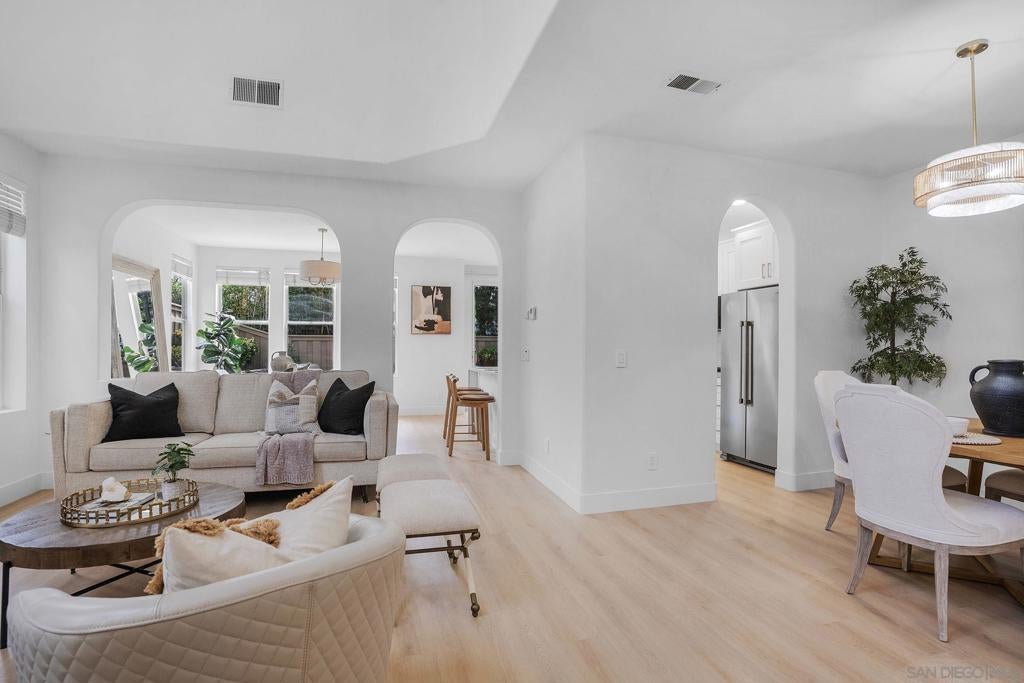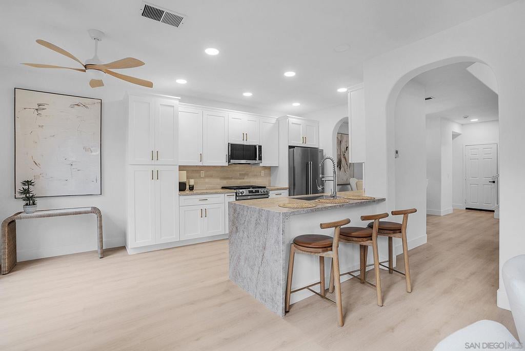 WELCOME HOME! to this beautifully remodeled 3-bedroom, 2.5-bath home offering 1,791 sq ft of light-filled living space in the highly desirable gated community of Canyon Ridge in Carmel Valley. This move-in ready residence has been thoughtfully upgraded with BRAND-NEW flooring thoughout and a completely remodeled kitchen that includes NEW cabinets, counter tops, plumbing fixtures, appliances, lighting, NEW paint, NEW tile in bathrooms, NEW epoxied garage floor and so much more!. The open layout creates an inviting atmosphere with seamless flow between living, dining, and kitchen spaces, perfect for both everyday living and entertaining. Upstairs, you’ll find three spacious bedrooms, including a well-appointed primary suite that offers comfort, privacy and the luxury feel everyone dreams of. Step outside to your private backyard, an ideal setting to relax, host gatherings, or simply enjoy San Diego’s year-round sunshine. Location is everything, and this home truly delivers. Ideally situated just minutes from the 5 and 56 freeways, you’ll enjoy easy access throughout San Diego. Close proximity to Del Mar beaches, One Paseo, Del Mar Highlands, top-rated restaurants, shopping, and entertainment makes this an unbeatable lifestyle location. All within a highly acclaimed school district. This HOME is the perfect blend of NEW MODERN UPGRADES, convenience, and coastal living, this is a home IS A MUST SEE!