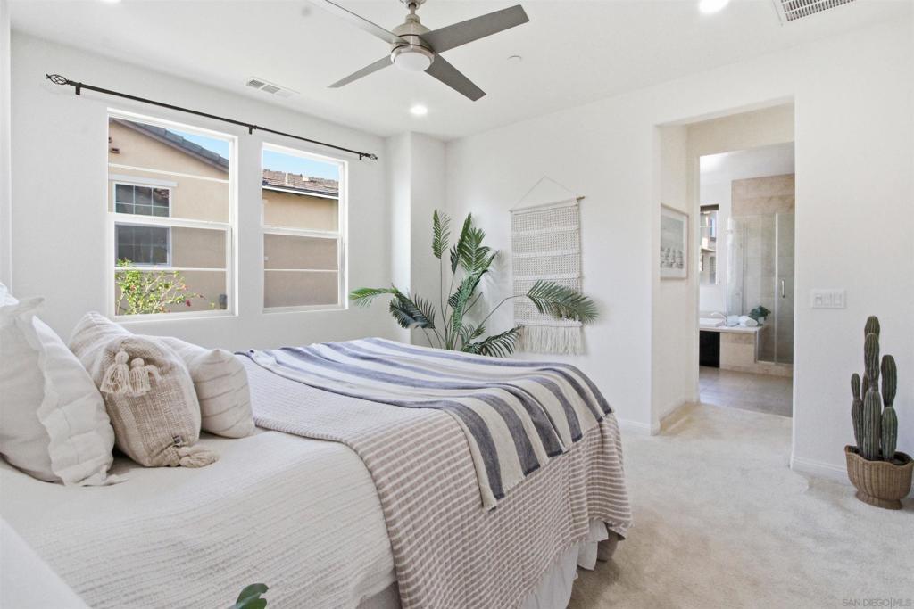 Welcome to the highly sought-after gated community of Veridian, where comfort, style, and convenience come together in this beautifully upgraded 3-bedroom, 2.5-bath townhome with a spacious loft. From the moment you enter, you’ll notice the thoughtful design and quality craftsmanship throughout. The bright, open-concept living space is centered around a stunning kitchen, perfect for entertaining, casual dining, or gathering with family and friends. Step outside to your own private outdoor retreat. This private outdoor space is ideal for doing a little gardening, al fresco dining, and relaxing in your own peaceful retreat Upstairs, the primary suite offers a peaceful escape with a generous walk-in closet and a spa-inspired bathroom featuring quartz countertops and a beautifully tiled walk-in shower. Two additional bedrooms and a well-appointed bathroom provide comfortable space for family or guests. One of the home’s standout features is the versatile top-floor loft—perfect as a media room, home office, gym, playroom, or optional fourth bedroom—giving you the flexibility to fit your lifestyle. Residents of Veridian enjoy resort-style amenities including a pool and spa, BBQ areas, fire-pits, lounge spaces, playground, and private dog park—creating a true community experience. The location is unbeatable: walking distance to Del Norte High School in the award-winning Poway Unified School District, less than a mile to shopping, groceries, and fitness centers, and just minutes from over 70 restaurants.