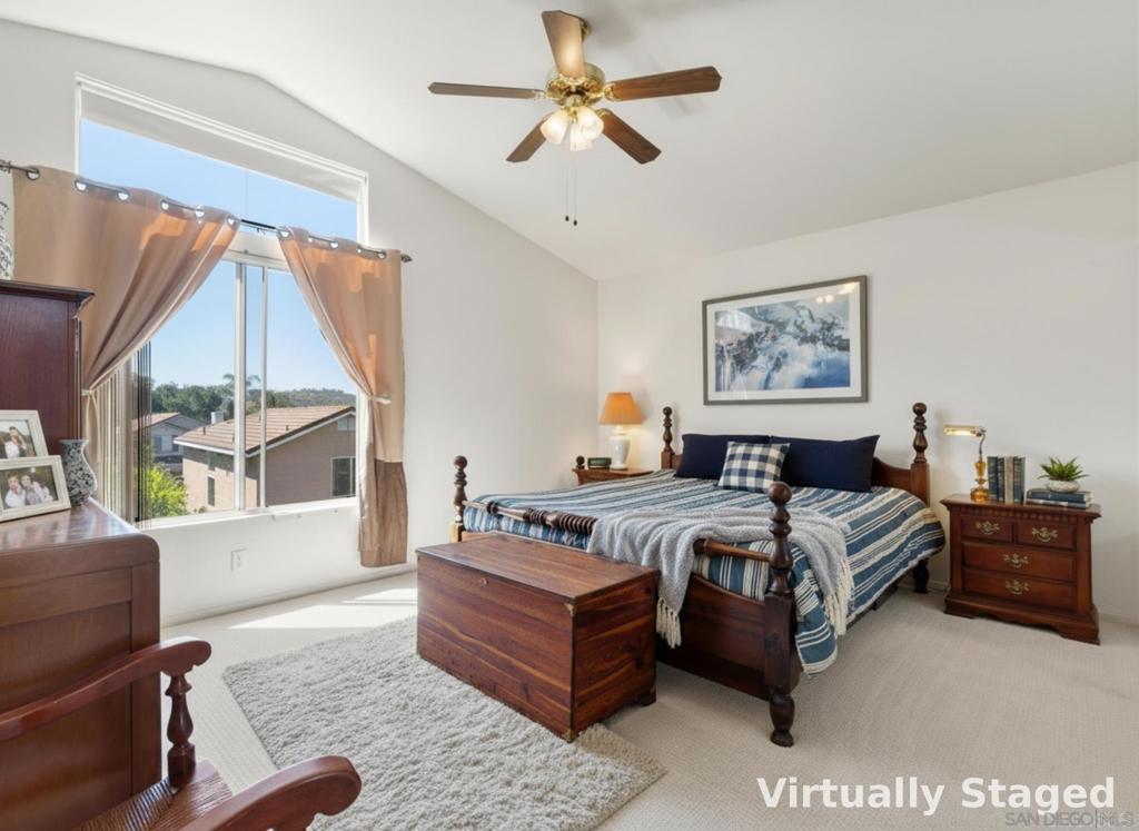 Positioned on a desirable corner lot in the California Showcase community, this 3-bedroom home offers a clean blend of thoughtful updates and elevated hillside living. The kitchen has been refreshed with newly painted cabinetry, stainless steel appliances, and a center island that opens naturally into the main living space—making it both functional and easy to live in day to day. Brand new neutral carpet runs throughout, giving the home a fresh, cohesive feel. Outside, the Tex-Cote exterior adds durability and efficiency, while Tesla solar (subscription approx. $65/month) helps keep energy costs low and predictable. Positioned to benefit from coastal airflow, the home stays noticeably cooler with less reliance on A/C. The backyard sits slightly elevated, offering added privacy and a more open feel compared to neighboring homes. Additional highlights include a spacious 2-car garage and low HOA (approx. $95/month), contributing to overall ease of ownership. Located within the highly regarded San Marcos school district, this home is well-positioned for both comfort and convenience—a move-in ready opportunity in one of the area’s most consistently sought-after neighborhoods. Brand new neutral carpet runs throughout, giving the home a fresh, cohesive feel. Outside, the Tex-Cote exterior adds durability and efficiency, while Tesla solar (subscription approx. $65/month) helps keep energy costs low and predictable. Positioned to benefit from coastal airflow, the home stays noticeably cooler with less reliance on A/C.