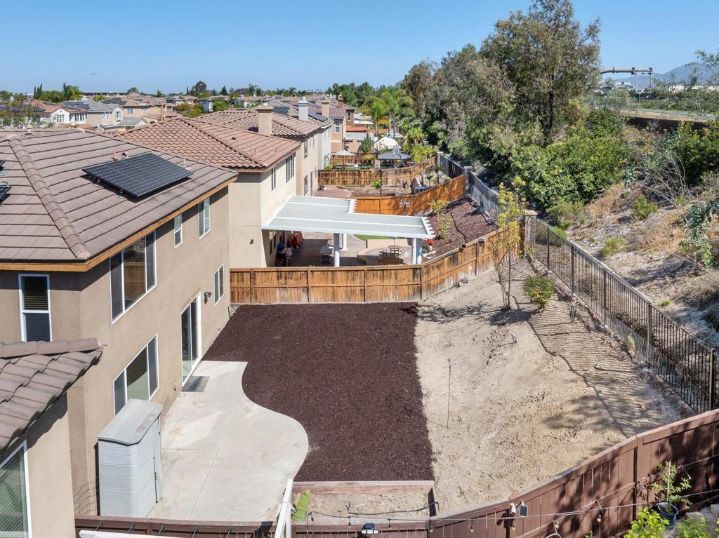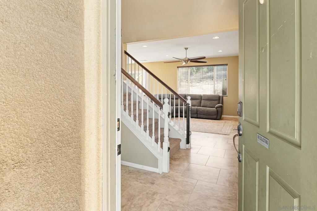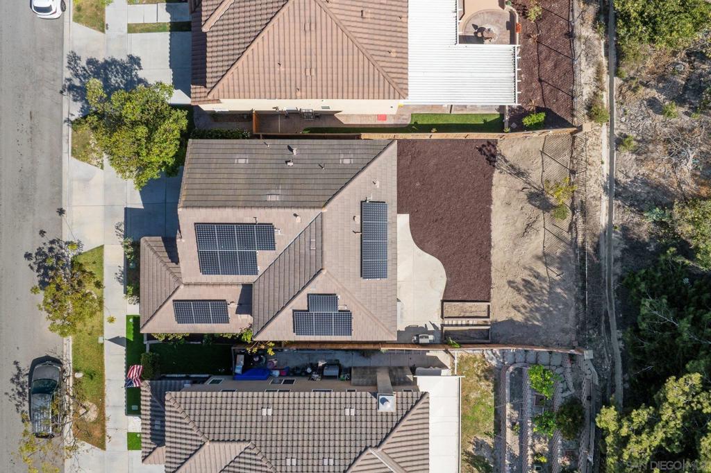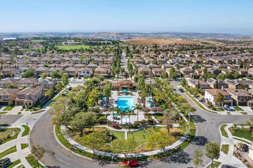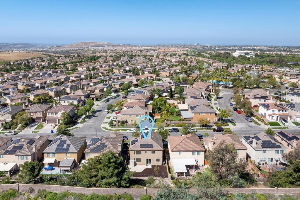 Welcome to this 4-bedroom, 3-bath home in the Vista Verde community of Otay Ranch. With one bedroom and one full bath on the main level, the floor plan offers flexibility for guests, multi-generational living, extended family, or a home office. Tile flooring runs throughout the main downstairs living areas, and the kitchen features granite countertops and stainless steel appliances. Upstairs, the primary suite includes dual sinks, a walk-in closet, and a separate tub and shower. Additional highlights include owned solar, an interior laundry room, and a location approximately one block from the community pool. Vista Verde residents enjoy access to a pool, barbecue area, and parks, with convenient proximity to shopping, dining, and the 125 toll road.