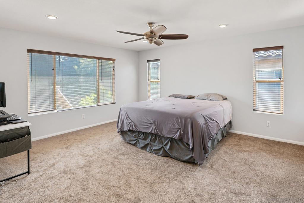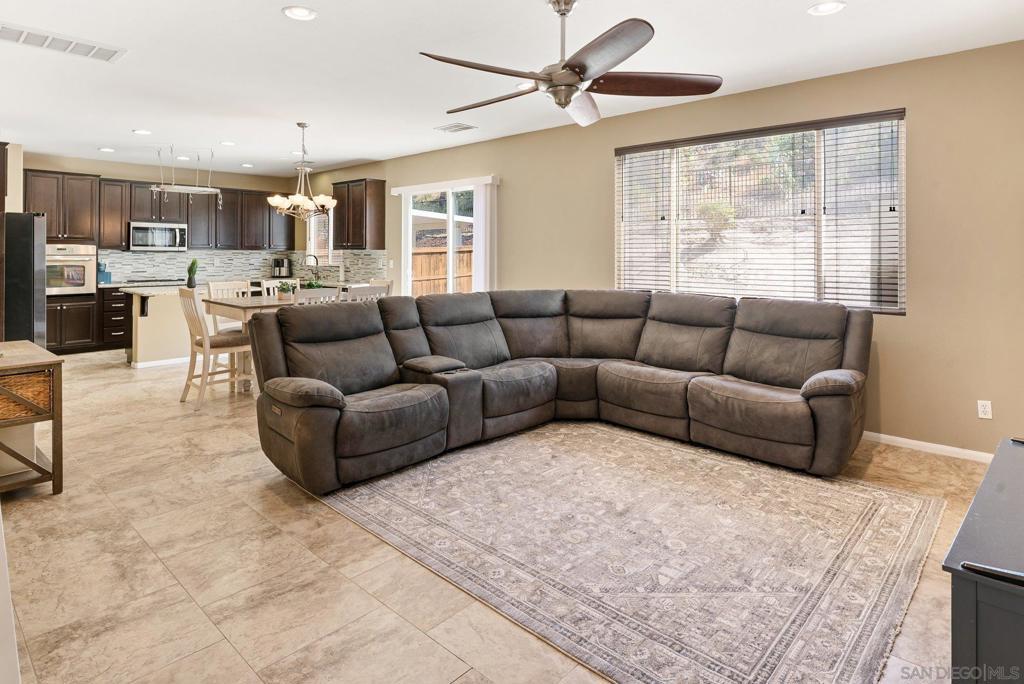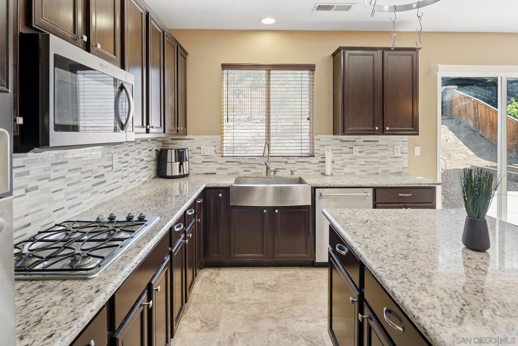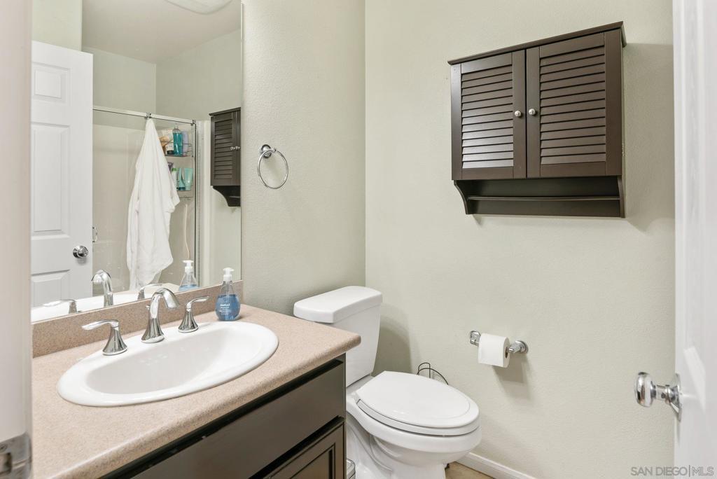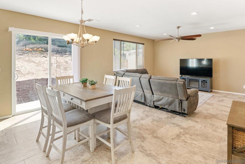 Welcome to this 4-bedroom, 3-bath home in the Vista Verde community of Otay Ranch. With one bedroom and one full bath on the main level, the floor plan offers flexibility for guests, multi-generational living, extended family, or a home office. Tile flooring runs throughout the main downstairs living areas, and the kitchen features granite countertops and stainless steel appliances. Upstairs, the primary suite includes dual sinks, a walk-in closet, and a separate tub and shower. Additional highlights include owned solar, an interior laundry room, and a location approximately one block from the community pool. Vista Verde residents enjoy access to a pool, barbecue area, and parks, with convenient proximity to shopping, dining, and the 125 toll road.