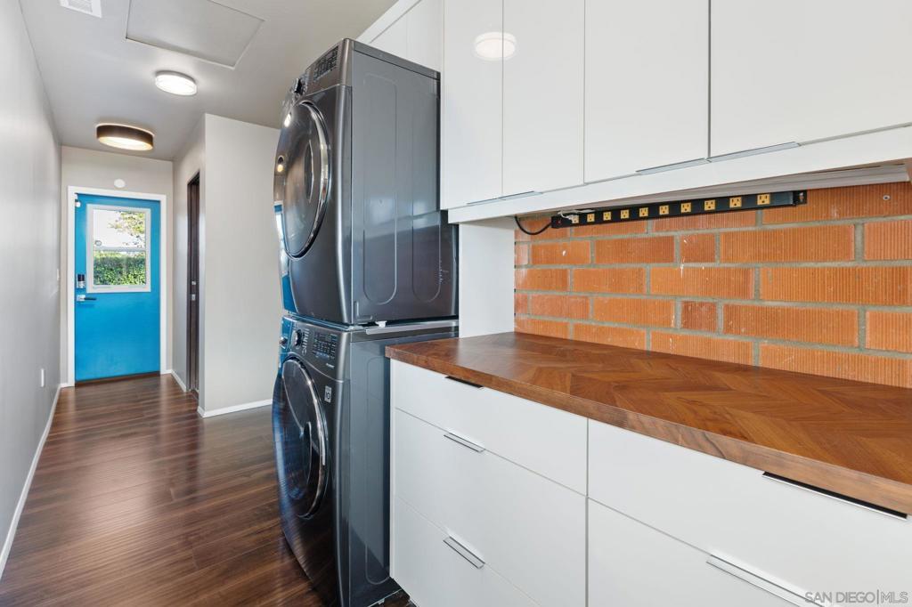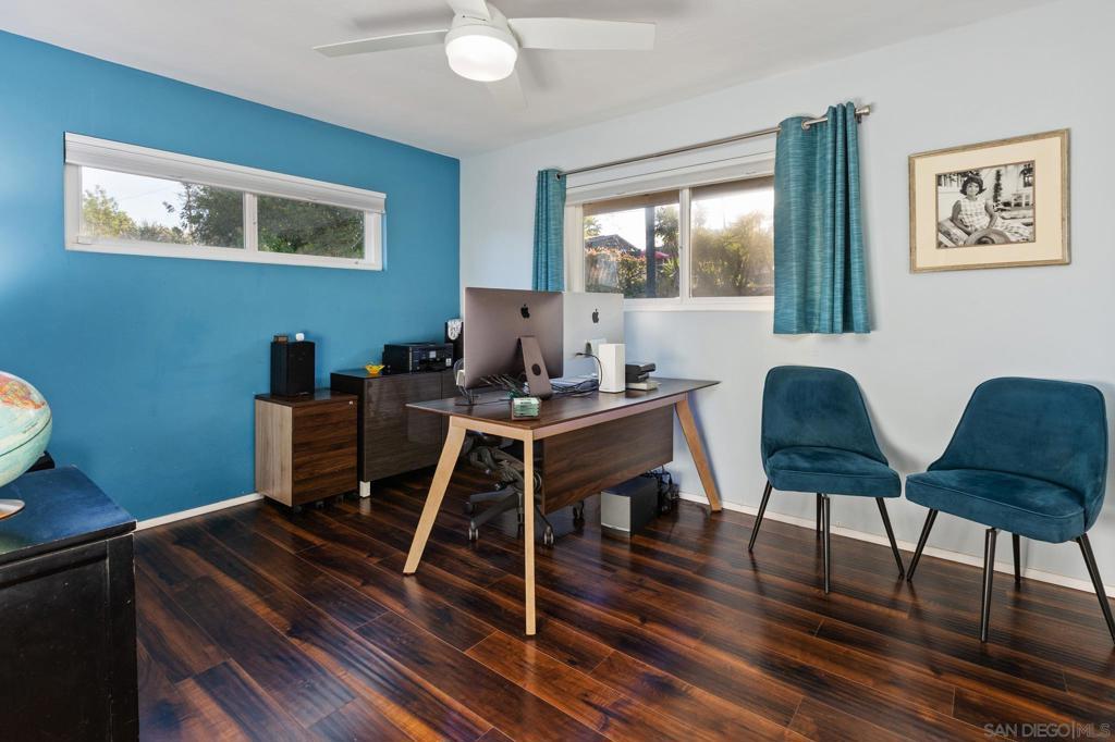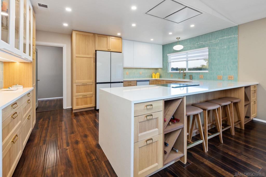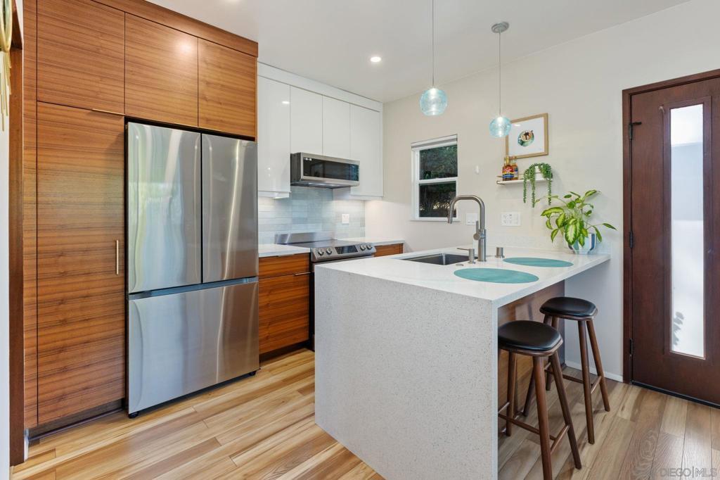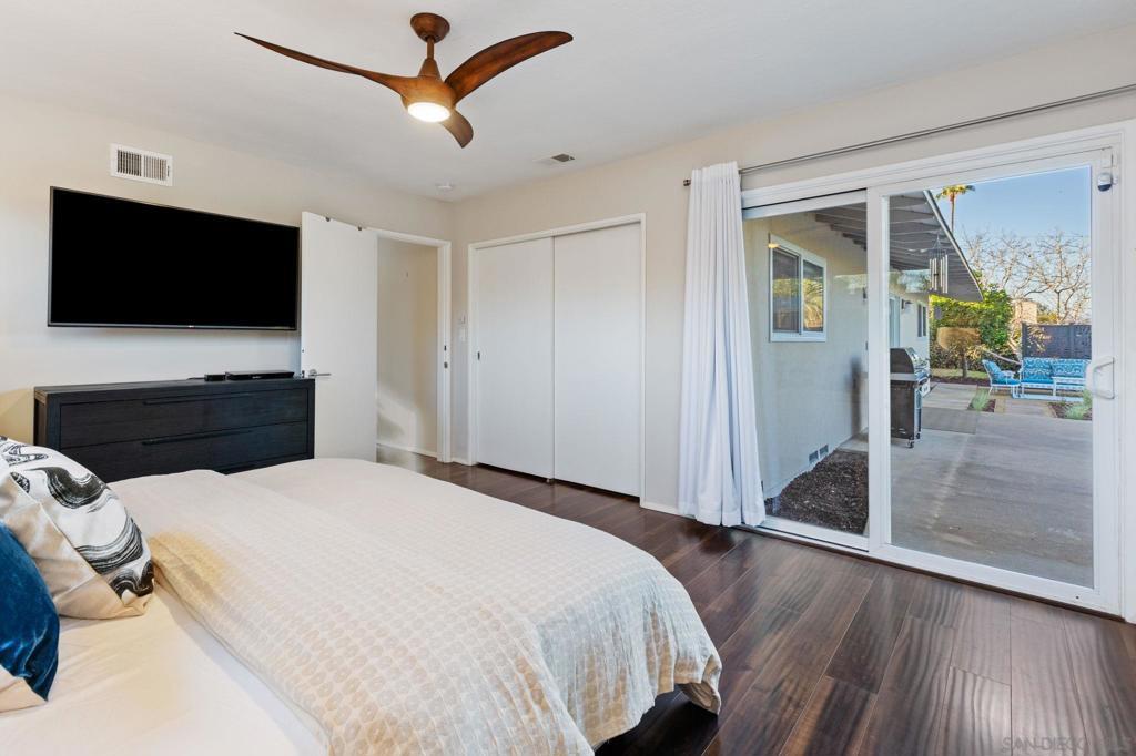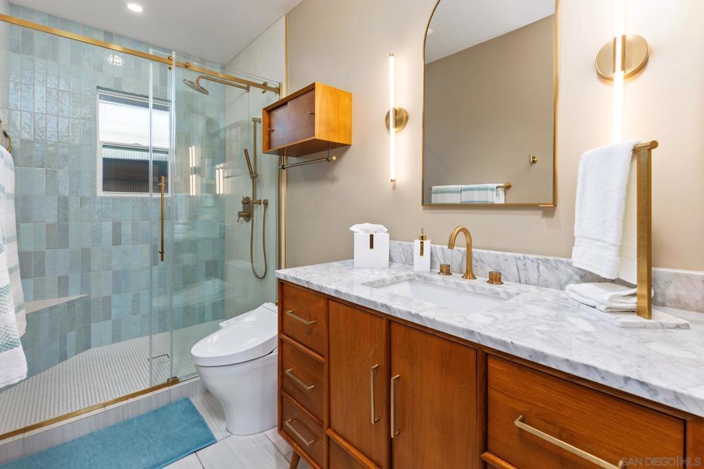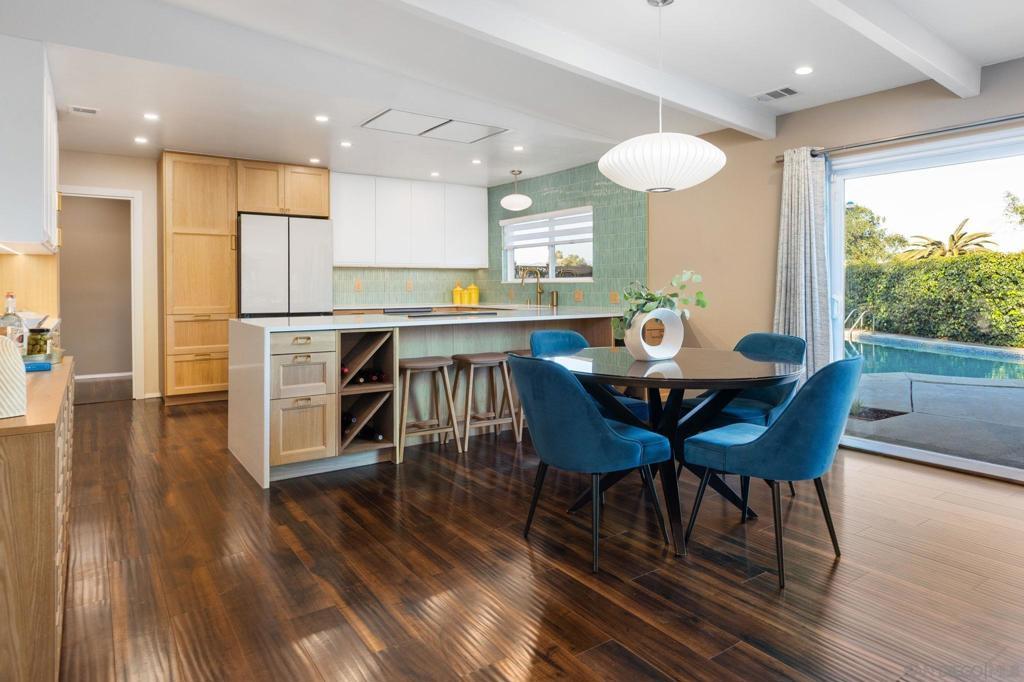 Stunning midcentury masterpiece, thoughtfully designed and set on a 1/2 acre lot with sweeping east-facing views. California indoor-outdoor living at its finest with this remodeled 5-bedroom, 3.5 bath estate. The main home features 4 bedrooms, 2.5 baths and a pool—and there’s nothing “junior” about the attached Junior ADU, a 1-bedroom/1-bathroom unit with a separate entrance and a full kitchen, offering the ultimate in flexible multi-generational living or potential for passive income. At the heart of this home is a chef's kitchen that will stop you in your tracks. Light oak cabinetry, cream-color quartz countertops with a waterfall edge, and a dramatic seafoam blue ceramic tile backsplash set the stage, while premium appliances—including an induction range—make cooking a genuine pleasure. An expansive peninsula with wine storage and barstools anchors the open-concept space, flowing naturally into the dining area and family room, an effortless setting for everything from casual mornings to memorable dinner parties. The Junior ADU (JADU) is nothing short of exceptional, from its rich mahogany pocket doors to its private patio and a complement of full-size appliances. Thoughtfully designed to maximize the space, this relaxing retreat offers its own full kitchen that includes an induction range and quartz countertops; a grasscloth-accented bedroom that opens to a private, gated patio; and an elegantly arranged bathroom with teak and marble accents, a huge spa-style shower, and a full-size LG WashTower wash/dryer. The JADU has earned a coveted spot in the Top 1% of Airbnb listings, having attained “Guest Favorite” status and consistently maintaining an impressive occupancy rate—a testament to its quality, design and guest appeal. Whether you continue to use it as a high-performing Airbnb mid-term rental, transition to a long-term tenant, or welcome extended family, the income potential here is as impressive as the space itself. Meander outside and discover a backyard with mountain views that rivals any resort. The lushly landscaped area surrounding the pool and patio offers a rare sense of seclusion, perfect for afternoon swims, al fresco dining, and unforgettable evenings under the Southern California sky. Mature fruit and nut trees create a setting that is as beautiful as it is functional. With a half-acre lot providing ample space, there is exciting potential to add a second ADU, further maximizing long-term value and versatility in one of California's most in-demand housing markets. A single-story layout spanning four bedrooms and 2.5 baths, the main residence blends midcentury charm with a mix of original vintage character and modern updates at every turn. Water-resistant wood-based laminate flooring throughout offers warmth and beauty plus everyday durability. The formal living room welcomes you with built-in bookshelves and a classic brick fireplace. The adjacent great room features east-facing mountain views and sliding glass doors that keep the interior light and bright and connect to the pool area and landscape beyond. A dedicated laundry room/butler’s pantry with butcher block herringbone counter and exposed brick adds convenience with character. An adjacent powder room—on the other side of a mahogany pocket door—features a solid teakwood vanity with Carrara marble top, and retro tile flooring. Leased solar keeps energy costs in check, city water and sewer lines add convenience, and the prime Escondido location puts you minutes from the charm of historic downtown, North County's wine country, scenic hiking trails, and easy freeway access to the greater San Diego metro area. Five bedrooms total. Two distinct living spaces. One extraordinary property.