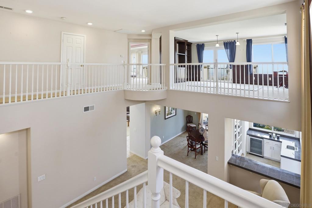 Experience panoramic views that truly set this 6 bedroom home apart - spanning the ocean, Downtown San Diego skyline, and the iconic Coronado Bridge - from the main living areas, private balcony, and beautifully designed backyard. This is the kind of view you have to see in person to fully appreciate. Offered for the first time ever, this impeccably maintained residence features 5 bedrooms, a spacious loft, a full bar, and 3 bathrooms, with a highly desirable first-floor bedroom and full bath - perfect for guests or multi-generational living. The expansive primary suite is a true retreat, complete with a large spa-like bathroom, dual walk-in closets, and a private balcony showcasing some of the best views in all of San Diego. Additional highlights include soaring ceilings, abundant natural light, owned solar, a 3-car garage, quartz countertops, a cozy fireplace, and a dedicated laundry room. Step outside to a generously sized, low-maintenance backyard featuring a firepit, ideal for entertaining or simply unwinding while taking in the stunning scenery. Homes with views like this rarely come to market, don’t miss your opportunity to own one of San Diego’s most captivating properties.