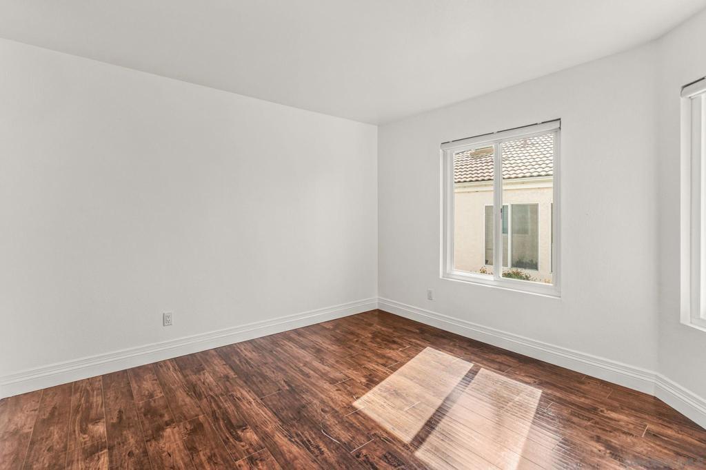 Move-in ready and beautifully refreshed, this two-story Terra Nova townhome lives like a single family home with attached private garage and only one shared wall. Fresh paint, central A/C, and wood-laminate flooring throughout create a clean, modern feel, while vaulted ceilings and abundant natural light enhance the open, airy layout. The well-appointed eat-in kitchen features granite countertops, crisp white cabinetry, and ample storage, flowing seamlessly into the living space highlighted by a cozy fireplace. A downstairs bedroom and full bathroom provide flexibility for guests or a home office. Upstairs, the spacious primary suite offers a relaxing retreat with a walk-in closet and en-suite bath. Step outside to a private, low-maintenance backyard—perfect for enjoying indoor-outdoor living with minimal upkeep. Additional features include a supplementary assigned parking space, ample guest parking, and convenient in-unit laundry room. Residents of Terra Nova enjoy access to community amenities including a pool and playground, all in a well-maintained neighborhood close to everyday essentials. Steps from the shops, dining, and amenities of Terra Nova Plaza, and easy access to the 805 freeway.
