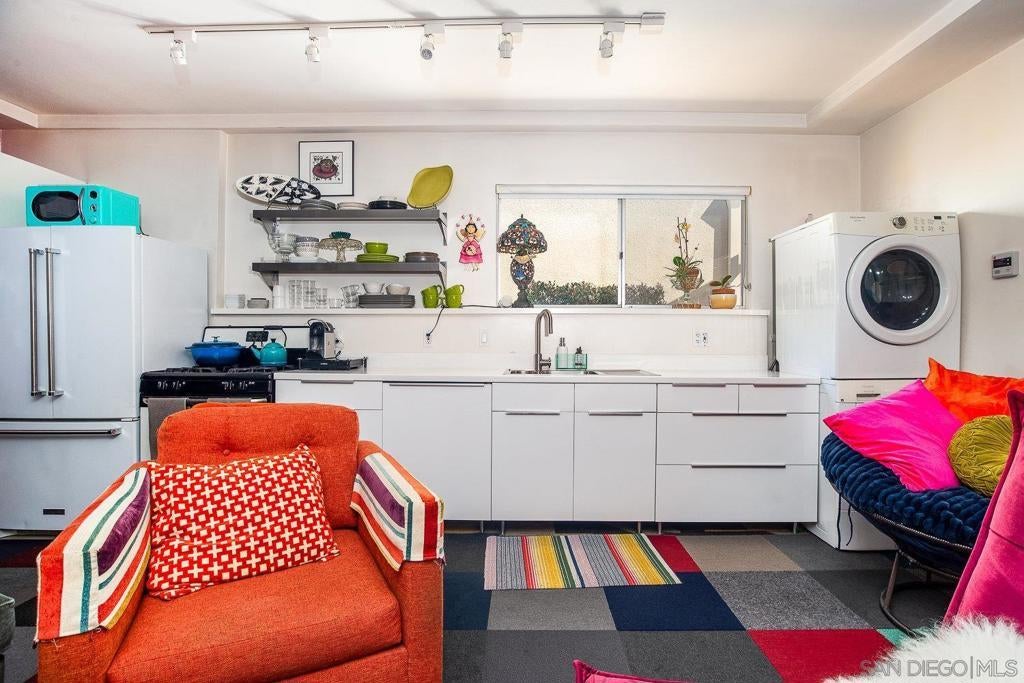 Calling All Artists, Photographers, Designers and Creatives. This property is what you have long dreamt about. A beautiful 1,264 square foot home in Bay Park that has been converted into a full-on live work loft. The property consists of a 525 square foot studio along with a 300 square foot living/kitchen area and a 225 square foot open primary bedroom. Additionally there are 2 bathrooms, including a full bath with walk-in shower serving the residential wing and a half bath serving the studio wing. The property was renovated in 2013 including new kitchen & baths, tankless w/h, solar system, and mini split ac and heat. The site also includes a lovely front courtyard offering a private/covered space for both creating artwork and or using it as additional outdoor living space. There is also a fully fenced side yard running the length of the home/studio and offers space for gatherings, artwork display and/or a private veggie/herb garden. The property is serviced by an alley and includes a rock retaining wall, a carport and an outdoor dining/grilling space. The location is superb, sitting along side Mission Bay (walking distance) with proximity to both Morena Blvd and Clairemont Drive and to easy access to I 5. Best of all, this property is just a short walk to the Blue Line trolley stop at the Clairemont station. Think a drop dead gorgeous New York/SOHO art studio placed in the middle of San Diego/Bay Park, this is an amazing opportunity waiting for its next chapter.