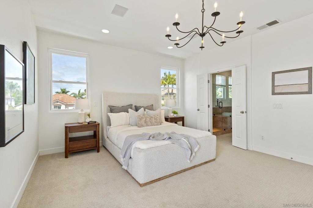 Beautiful family home located in the highly sought after Seaside Heights community. Enjoy truly spectacular ocean views, particularly from the oversized view deck. Newly remodeled including new kitchen cabinets and counter tops, LVP flooring on lower level, new carpets on stairs and upper level, upgraded bathrooms and laundry, interior and exterior paint, new LED lighting and light fixtures. Relax in the large "pool sized" rear yard featuring mature citrus trees and palms. Short walk to award winning Pacific Rim Elementary school and Poinsettia Community Park. Close to 5 Freeway access and wonderful Carlsbad beaches. Home also has owned solar panels and a water filtration system. Professional photos to follow.