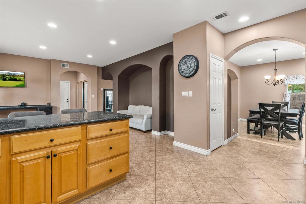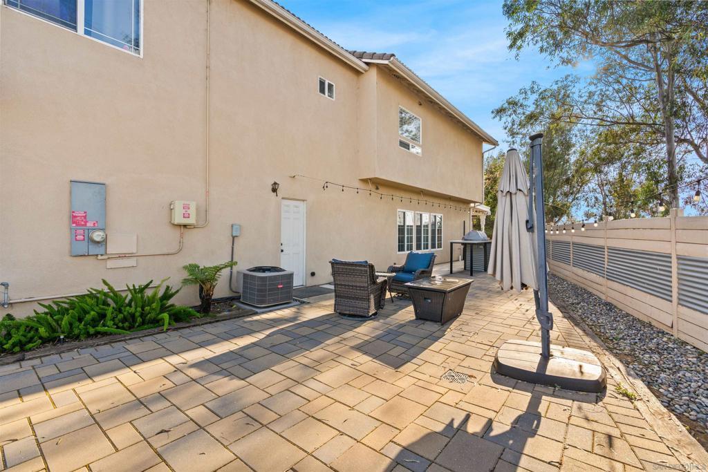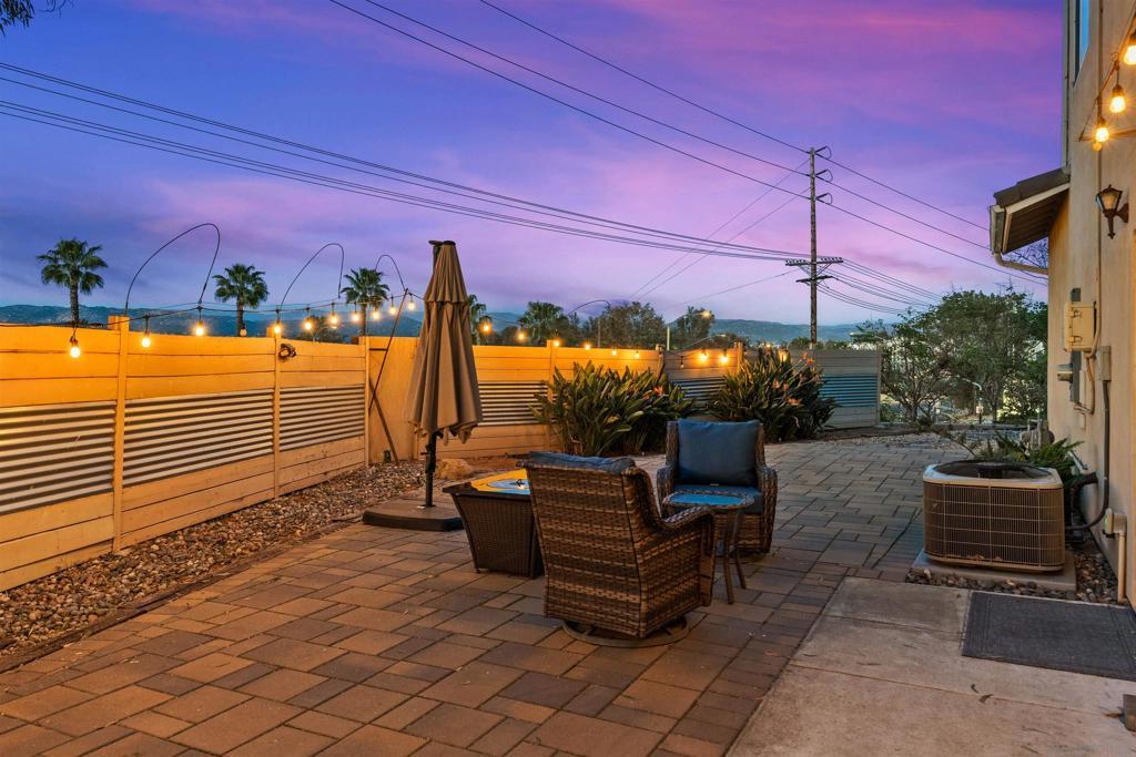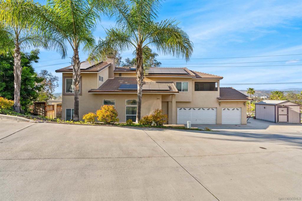 Welcome to a private estate in the heart of Escondido, where refined living meets everyday comfort. Tucked at the end of a long driveway, this two-story residence offers exceptional privacy with no neighboring homes crowding the surroundings, creating a peaceful retreat while still being close to dining, shopping, and daily essentials. A dramatic two-story entry sets the tone, highlighted by a stunning floor-to-ceiling stacked stone fireplace that anchors the main living space. Expansive windows fill the home with natural light, enhancing the open and functional layout designed for both comfort and style. The formal dining room connects seamlessly to the main living areas, ideal for entertaining. The kitchen features granite countertops, stainless steel appliances, abundant cabinetry, and a spacious breakfast bar for casual dining. The adjacent family room opens to the backyard through a wall of windows, creating a seamless indoor-outdoor flow. Upstairs, the primary suite offers a private escape with vaulted ceilings and a spa-like bath complete with soaking tub, glass-enclosed shower, dual vanities, and ample storage. The outdoor space is designed for both relaxation and entertaining, featuring multiple seating areas, a grassy lawn, mature fruit trees, and a covered patio. Enjoy the rare bonus of viewing holiday fireworks from your own backyard. Additional highlights include a 3-car garage, RV parking, and fully paid solar—resulting in no electricity costs. No HOA and no Mello Roos.