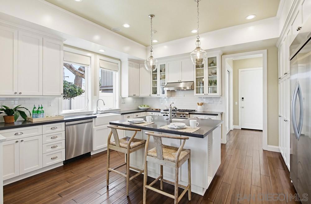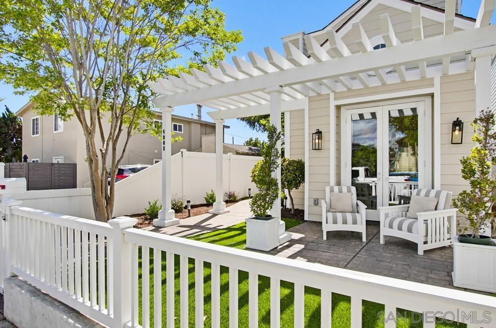 Experience the true Pacific Beach lifestyle in this charming, detached Cape Cod–style home, ideally located in the heart of Crown Point. Built in 2010, this thoughtfully designed single-family residence offers 3 bedrooms, 3 full bathrooms, and a bright, airy floor plan filled with warmth, natural light, & inviting living spaces throughout. A classic white picket fence welcomes you, framing the beautifully landscaped front yard complete with a newer pergola, turf, solar lighting, and a raised sitting area—perfect for relaxing above the street and watching the neighborhood go by. Inside, the formal living room makes an immediate impression with soaring ceilings, upgraded flooring, fresh paint, a cozy fireplace, and French doors that open to the front yard. The open-concept layout seamlessly connects the family room, dining area, & expansive gourmet kitchen, all enhanced by rich walnut flooring & high ceilings. The kitchen is a true centerpiece, featuring a large island with prep sink, breakfast bar, stainless steel appliances, wine refrigerator, quartz countertops, farmhouse sink, subway tile backsplash, & abundant custom cabinetry. Thoughtful built-ins and a curved window seating area add both character and charm in the family room. Just beyond, a mudroom area connects to the attached one-car garage with epoxy flooring and built in storage racks. A sliding door leads to a versatile side patio—ideal for entertaining, barbecuing, or additional off-street parking/boat storage. A stylish full bathroom w/ wainscoting & designer wallpaper completes the main level. More below... Upstairs, the spacious front bedroom features high ceilings, a ceiling fan, decorative shelving, and detailed wall paneling. The second bedroom is filled with natural light and complemented by a custom mural, located near a well-appointed full bathroom. The primary suite is a true retreat, offering a custom walk-in closet and a beautifully updated bath with dual vanities, quartz countertops, mosaic backsplash, vanity area, and a steam shower with new wall tile. The bedroom itself is light and bright, featuring automated blinds and direct access to a private deck. From there, stairs lead to the rooftop deck, where you’ll enjoy panoramic views towards the bay—an ideal space for entertaining or unwinding. Additional highlights include whole-home surround sound with 7 zones, air conditioning, a newer tankless water heater, fresh exterior paint, custom front door, updated windows/sliders glass, and a side storage yard. Located just blocks from Mission Bay, this home offers exceptional walkability. Enjoy easy access to Crown Point Park, the 12-mile Mission Bay recreation path, and a vibrant local dining scene including beloved neighborhood spots like Rocky's Crown Pub, North Park Pizza Company, and Tajima Ramen, along with nearby cafes, markets, and more.