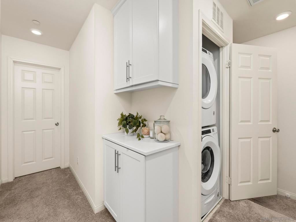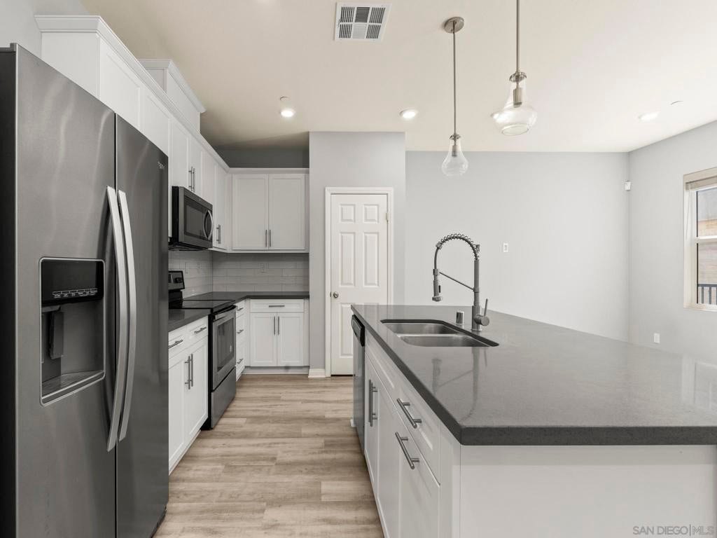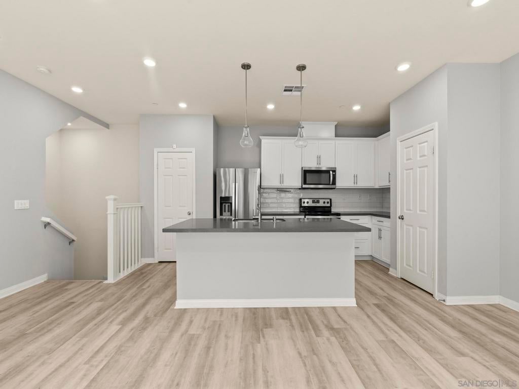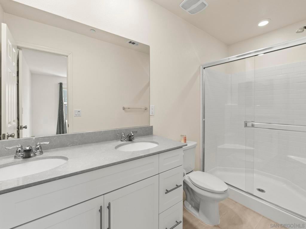 Located in the newer Viewpointe Commons community in San Marcos, this modern 2-bedroom, 2.5-bath condo offers a functional layout with contemporary finishes and low-maintenance living. Spanning approximately 1,237 square feet, the home features an open-concept main level with a spacious living area, dining space, and well-appointed kitchen—ideal for everyday living and entertaining. Both bedrooms are positioned upstairs and feature en-suite bathrooms, providing privacy and flexibility for roommates, guests, or a work-from-home setup. A convenient half bath is located on the main level. Built in 2019, the home offers newer construction with energy-efficient features and a clean, modern aesthetic. Additional highlights include an attached 2-car garage, in-unit laundry, and a well-maintained community setting. Centrally located with easy access to shopping, dining, and major freeways, this home offers a great balance of comfort and convenience.