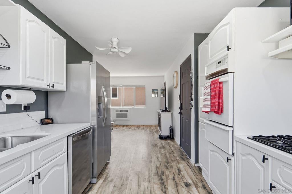 Beautifully upgraded two bedroom condo with newer kitchen, floors, paint, tile and tile. Property features light and bright kitchen with stainless steel appliances, spacious bedrooms, and a large living room. Property is privately located in the complex. The community features lots of green space, a sparkling pool and community laundry facility. Unit has an assigned carport. Conveniently located blocks from shopping and food with ease of access to freeway 52 & 67.
