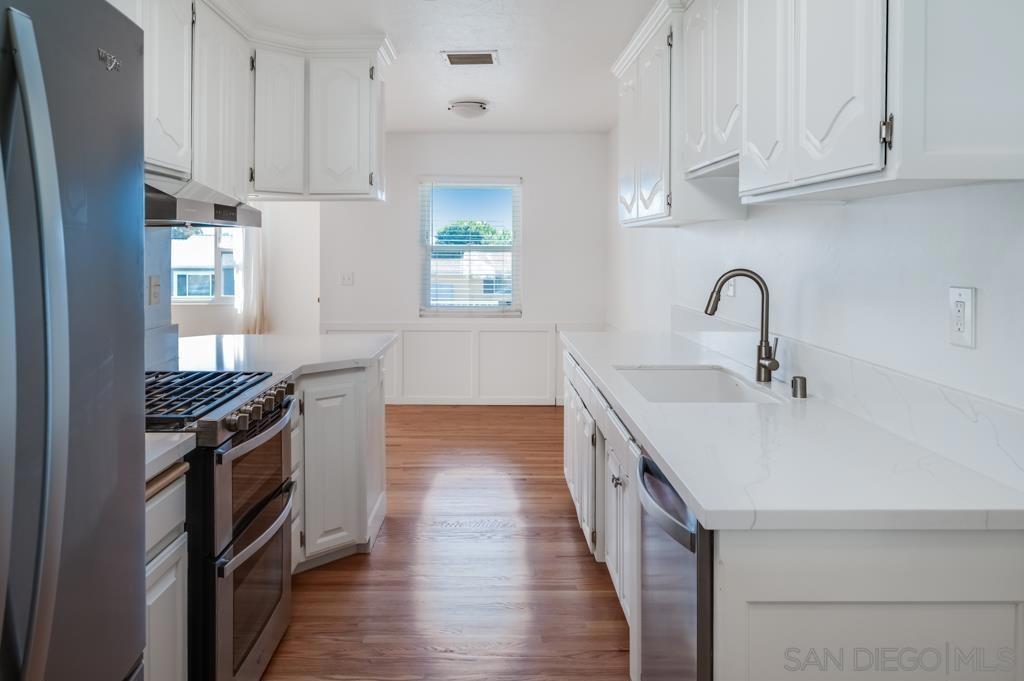 Welcome home to this beautifully remodeled 3-bedroom, 1-bathroom corner-lot property featuring an attached garage with direct access. This move-in-ready home blends modern upgrades with timeless charm, offering a bright and inviting living experience. The newly renovated kitchen showcases sleek quartz countertops, stainless steel appliances, and quality fixtures, while the refinished hardwood floors add warmth and character throughout. Skylights flood the home with natural light, enhancing the open and airy feel. Enjoy scenic views from both the living room and front bedroom. Thoughtfully upgraded by proud owners, this home includes dual pane windows, new insulation above and below, fresh interior paint, updated bathroom and kitchen fixtures, and a newer roof. Outdoor improvements include new fencing, a spacious covered patio perfect for entertaining, and mature landscaping with garden space and fruit trees. Situated on a desirable corner lot, the property offers ample parking, including space for an RV, boat, or other recreational toys, making it ideal for those who enjoy an active lifestyle. This turnkey property is ready for its next owner to enjoy comfort, functionality, and pride of ownership in every detail.