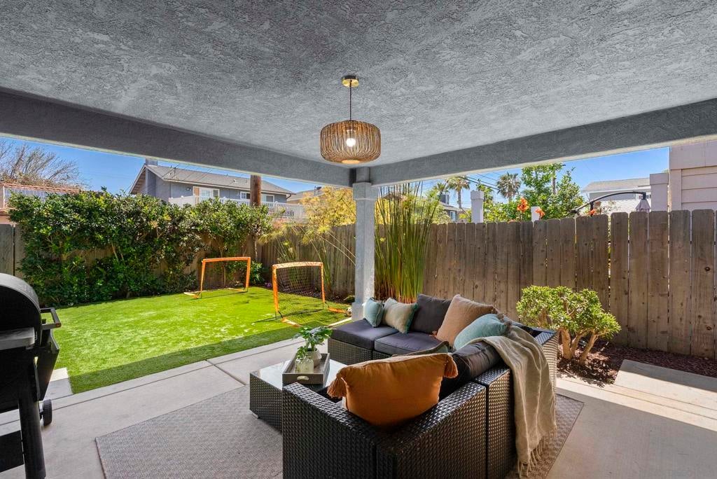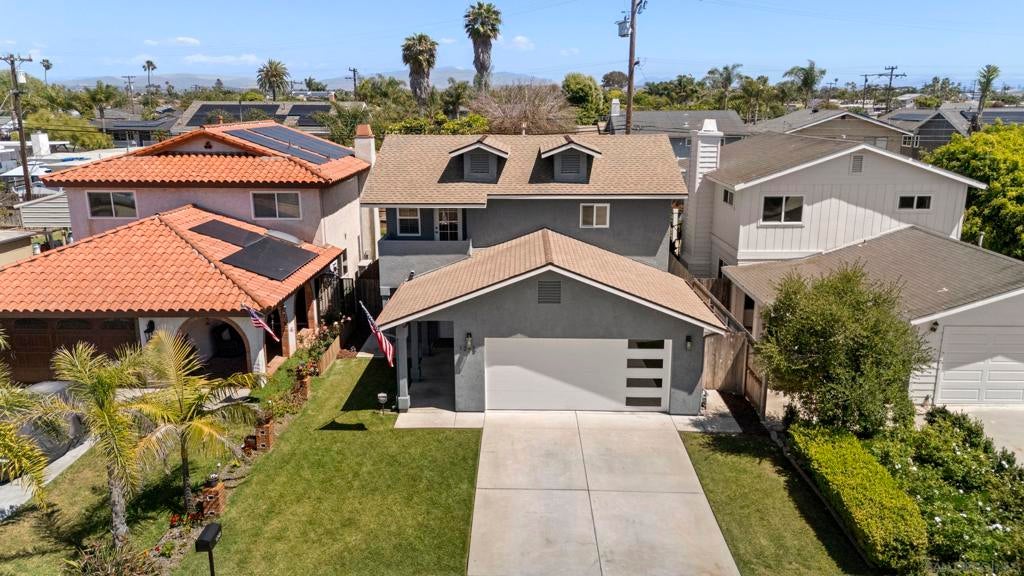 Turn-key Imperial Beach home in a prime location, just a few blocks from the beach, estuary, Veterans Park, and the library. Built in 2009, this property offers the advantage of newer construction with upgraded systems, providing added efficiency and reliability compared to many homes in the area. Thoughtfully updated throughout, the home features new luxury vinyl flooring, fresh carpets upstairs, an open-concept layout, and a fully renovated primary suite on the entry level. The primary includes a spacious walk-in closet, oversized shower, and direct access to a private patio. The layout creates a natural flow between the living area and outdoor spaces, ideal for indoor-outdoor use and entertaining. The kitchen and bathrooms showcase marble finishes, designer fixtures, and stainless steel appliances. All bedrooms are generously sized and include walk-in closets, plus a dedicated office adds flexibility for a variety of uses. Step outside to a freshly landscaped backyard with turf and trees, designed for low-maintenance upkeep, while the manicured front yard enhances curb appeal. An upstairs balcony offers an additional space to relax and enjoy the coastal setting. Complete with a two-car garage and A/C, this move-in ready home offers a rare combination of size, condition, and location that is not often available in this pocket of Imperial Beach.