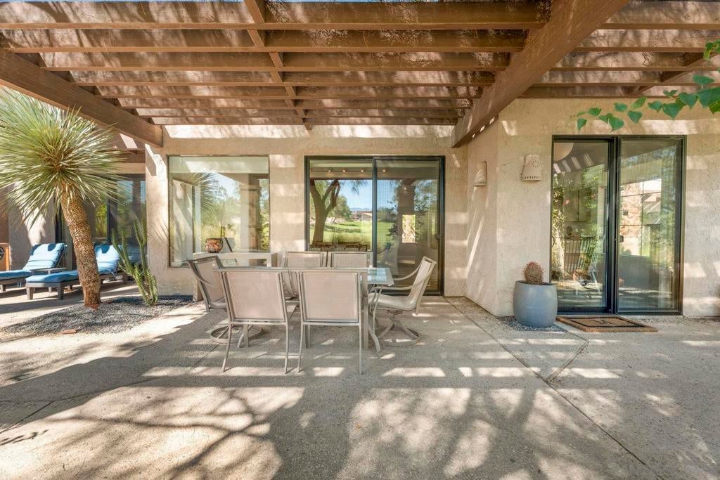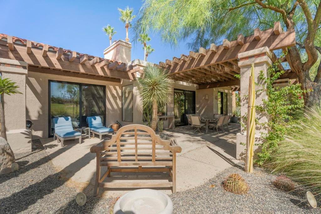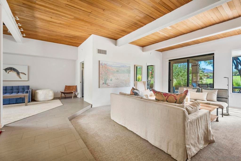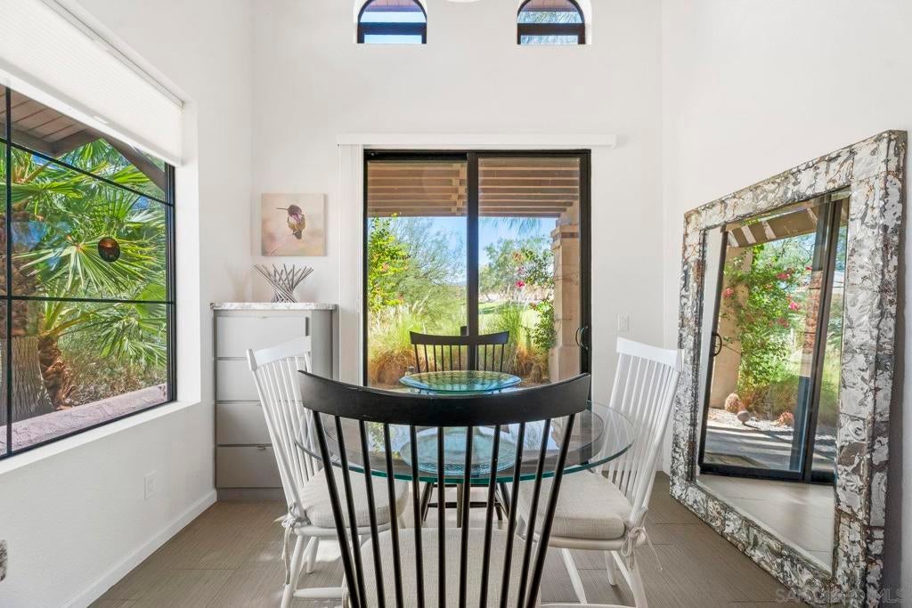 This highly upgraded desert retreat captures the very best of Borrego Springs living. Perfectly positioned along the 2nd fairway of Rams Hill Golf Club—a renowned Tom Fazio design—this home offers sweeping views of the Santa Rosa Mountains, vibrant sunrises, and the pristine golf course, enjoyed from the patio, kitchen, living room, and primary suite. Thoughtfully maintained and beautifully updated, the single-level residence blends timeless architecture with modern comfort across 1,765 sq. ft. A sunken living room with exposed wood-beam ceilings, fireplace, and wet bar creates a warm, inviting space for both entertaining and quiet evenings. The remodeled kitchen and baths feature leathered granite, custom cabinetry, and refined finishes, complemented by updated flooring and window coverings throughout. The spacious primary suite is a private retreat with vaulted ceilings, a walk-in closet, and a spa-like bath with soaking tub, walk-in shower, and dual vanities. Seamless indoor-outdoor living defines the experience, with patios designed for dining, relaxing, and taking in the expansive desert and golf course views. The grounds are professionally landscaped with citrus trees, an herb garden, and drought-tolerant design. Additional highlights include owned solar, interior laundry, and a 2-car garage with storage and workspace. Located near resort-style amenities—including tennis, pickleball, pools, and the clubhouse—this home offers an exceptional desert lifestyle in one of Southern California’s most peaceful settings.