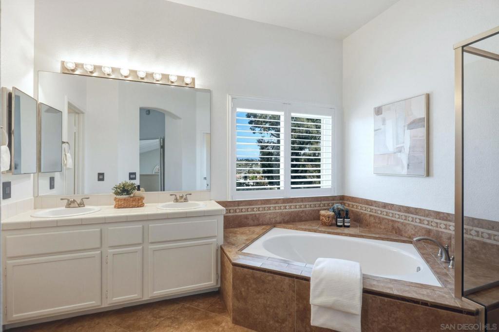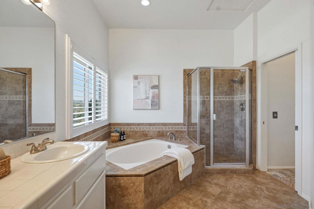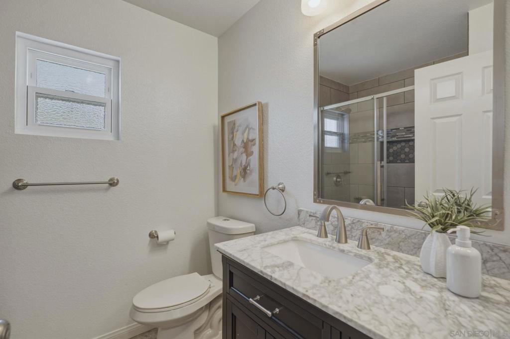 Welcome to this thoughtfully designed 4BR/3BA gem, nestled on a peaceful cul-de-sac. From the moment you arrive, you'll appreciate the lush landscaping, ample parking, including space for an RV, and the home's freshly painted exterior. Inside, every detail has been meticulously crafted for style and functionality. Freshly painted inside as well, the home has new carpet upstairs, elegant interior shutters on every window, and matching outlets and switches for a polished, cohesive look. The first floor has brand-new tile flooring, a remodeled kitchen, a refreshed bathroom, and a charming fireplace for cozy evenings. Head out to your designer backyard for relaxation and entertainment. Enjoy lush landscaping on drip irrigation, new concrete pads, a direct gas fire pit, a dedicated dog run, and durable composite plank fencing, all designed for beauty and low maintenance. Energy efficiency is key, and with 23 fully owned solar panels, you can turn the A/C on high AND love getting your SDG&E bill each month. Plus you also have a whole-house water filtration and softener system! With its perfect blend of thoughtful upgrades and its prime location, this move-in-ready home truly has it all. Don't wait - your dream home is here!