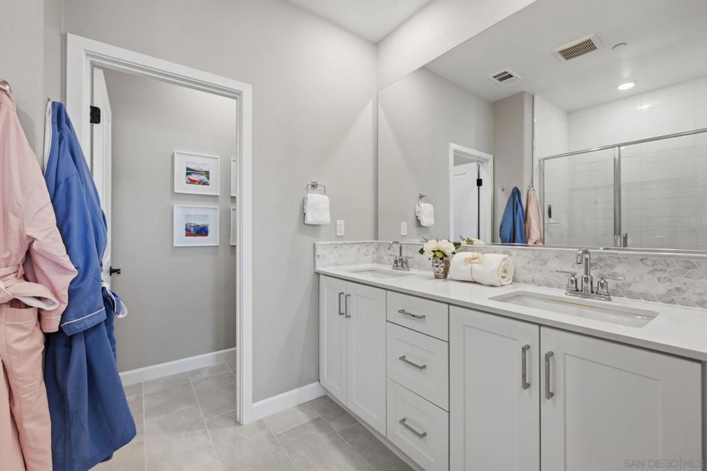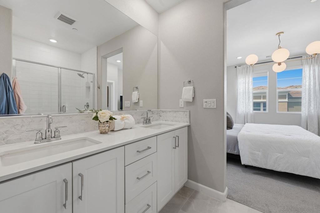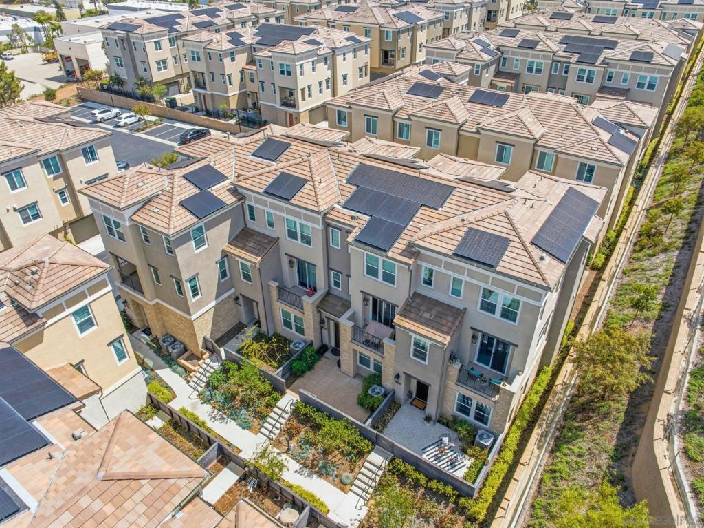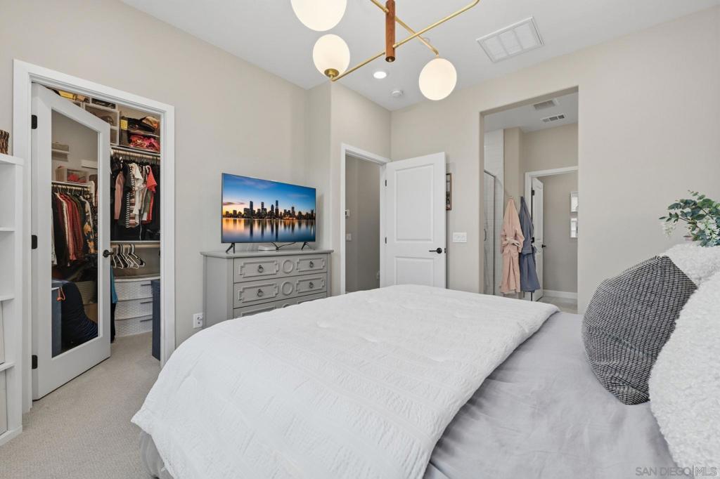 Welcome to a true San Marcos gem—an exceptional 2023 build-model home-end unit, that effortlessly blends luxury, comfort, and thoughtful design. Showcasing extensive upgrades and refined designer touches throughout, this stunning three-story condo offers an elevated living experience in a secure, gated community rich with amenities. Step inside through a custom-paved patio or your attached two-car garage and discover a bright, open layout filled with natural light. The heart of the home is a sprawling gourmet kitchen, featuring a gas range, sleek quartz countertops, custom pull-out drawers, stainless steel appliances and an inviting dining area—perfect for both everyday living and entertaining. The main living area extends to a private balcony, creating a seamless indoor-outdoor flow. This magnificent 1934 sq. ft. residence boasts 4 spacious bedrooms and 3.5 beautifully appointed baths, complemented by upgraded Shaw LVP flooring, gorgeous lighting, plush carpeting, Hunter Douglas roller shades and custom curtains throughout. Enjoy resort-style living with access to four tot lots, a sparkling pool and hot tub, bocce ball courts, and the peace of mind of a gated community. Additional highlights include paid solar and a tankless water heater for modern efficiency. This is more than a home—it’s a lifestyle. Don’t miss your opportunity to own this extraordinary property!