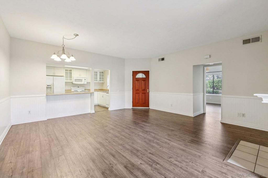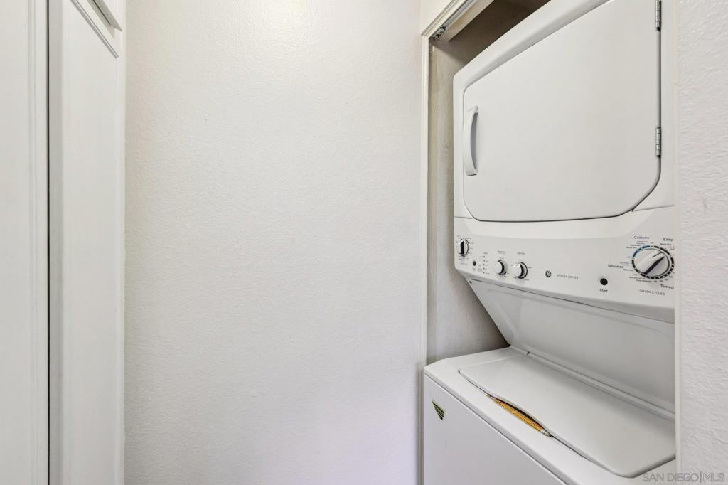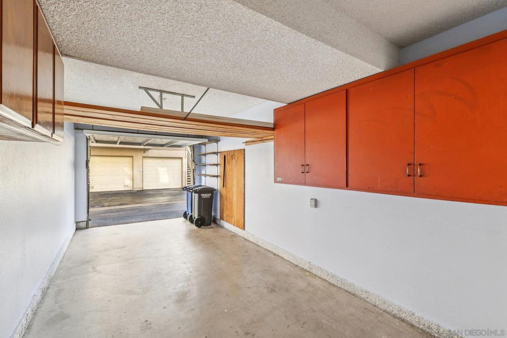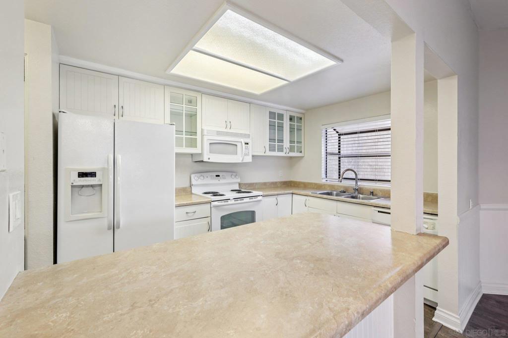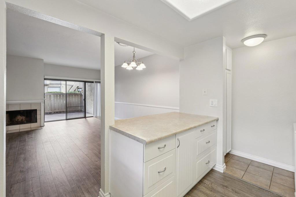 What is not to love about this amazing ground floor unit at Avocado Village! Prime location near the community pool and spa with your assigned parking space and detached 1-car garage located just outside your unit. The one car garage measures just over 24 feet deep and has built-in cabinets for additional storage. Step inside your home and you'll find beautiful wainscoting paneling throughout the living room and dining areas along with a fireplace and a buffet seating area at the kitchen entrance giving the space an open and entertaining feel. The kitchen has white shaker cabinets with matching white appliances. In-unit stackable washer and dryer for added convenience. Throughout the living room, dining area, kitchen and bedrooms you have beautiful vinyl tile flooring. Access to your private covered patio from either the living room sliding glass doors or the primary bedroom sliding glass doors. Central heat & AC will keep you comfortable all year long. The bathroom set-up is fantastic with direct access from the primary bedroom with its own sink/vanity area, and access from the hallway with its own sink/vanity area. Amazing overall location with McGrath Family YMCA, shops, and dining at the Rancho San Diego Towne Center. Less than 20 minute drive to downtown San Diego.