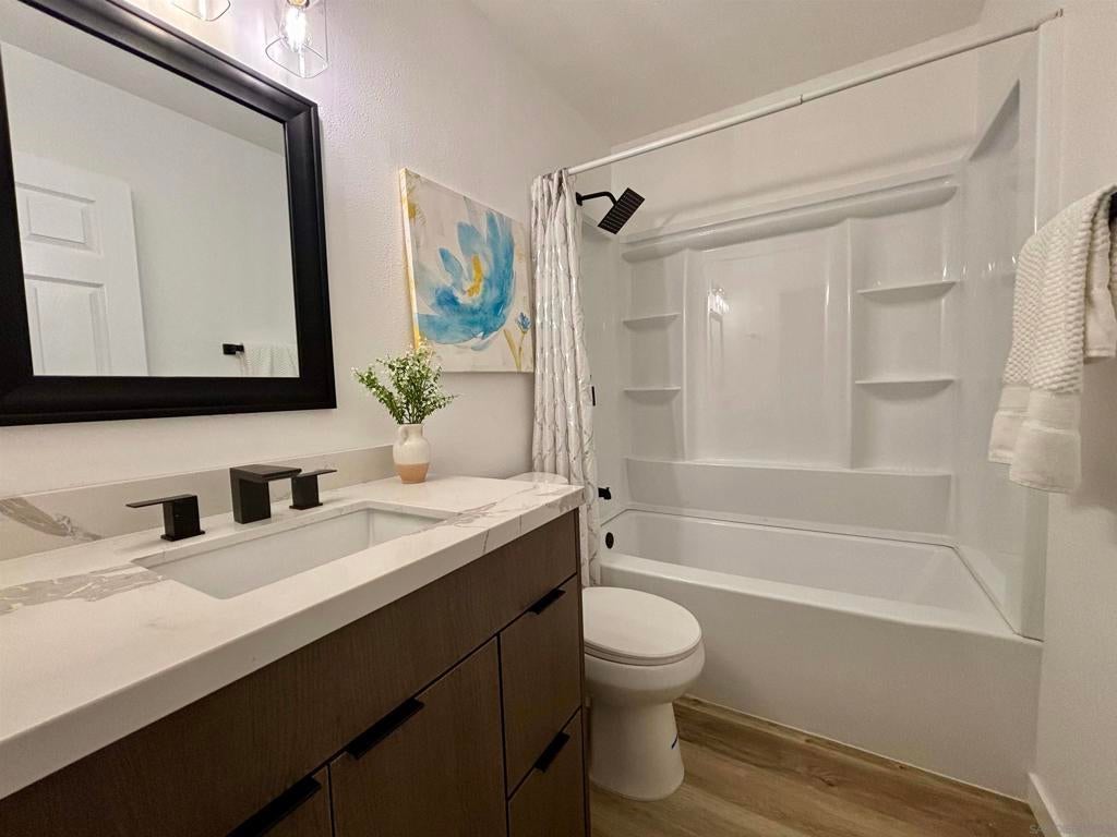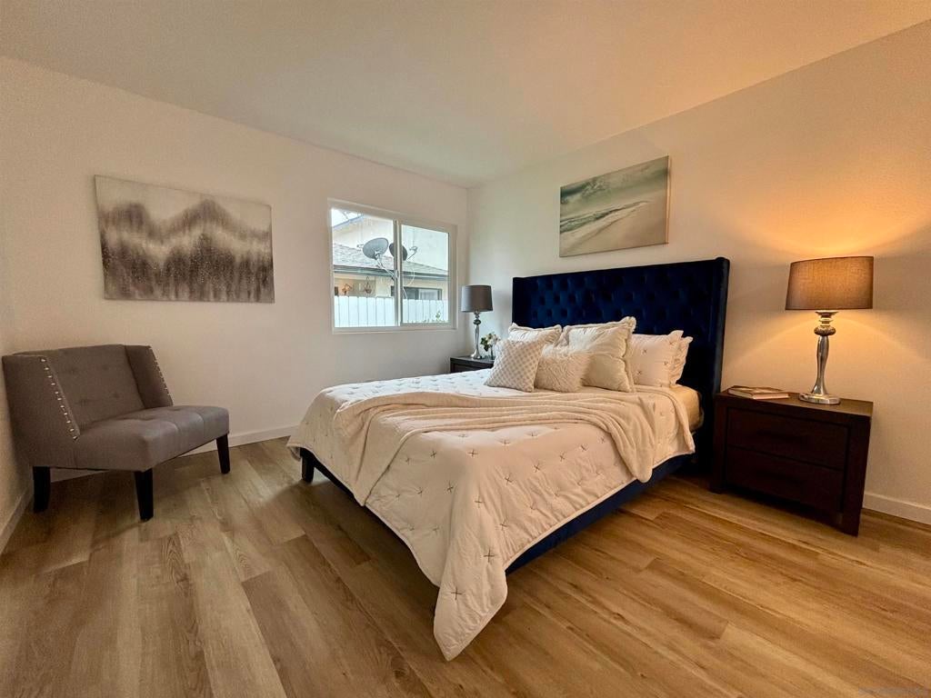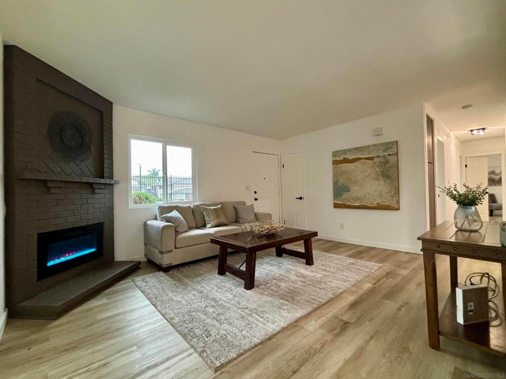 Rare Single Story 3 Bed 2 Bath Condo. On a Cul-de-Sac. Completely Updated! New LVP flooring Throughout, New Kitchen & Bathroom Cabinets, Quartz Countertops, New S/S Appliances, Modern Electric Fireplace, New Windows, Nice Fenced In Patio With Turf. End Unit, Close To The Pool, 1 Car Garage. Walking Distance To Shops & Dining . Welcome to 3401 Del Este Way, a rare gem in the heart of Oceanside! This beautifully updated, single-story condo offers the perfect blend of modern elegance and everyday convenience. With 3 bedrooms, 2 bathrooms, and nestled at the end of a peaceful cul-de-sac, this home is a true find. Step inside to discover stunning new luxury vinyl plank flooring throughout, setting the stage for a fresh and inviting atmosphere. The completely remodeled kitchen boasts sleek quartz countertops, brand-new stainless steel appliances, and stylish cabinetry—perfect for both casual meals and entertaining. The bathrooms have been thoughtfully updated with the same attention to detail, offering a spa-like experience to start and end your day. Relax in the cozy living area featuring a chic, modern electric fireplace, or step outside to your private patio with low-maintenance turf—ideal for outdoor lounging and unwinding. As an end unit, this home offers added privacy and is just steps from the community pool for those warm California days. Additional perks include new windows that fill the space with natural light, a 1-car garage, and a location that can’t be beat—walking distance to shops, dining, and all the conveniences you need. Don’t miss this rare opportunity to own a single-story condo that’s move-in ready and waiting to welcome you home!