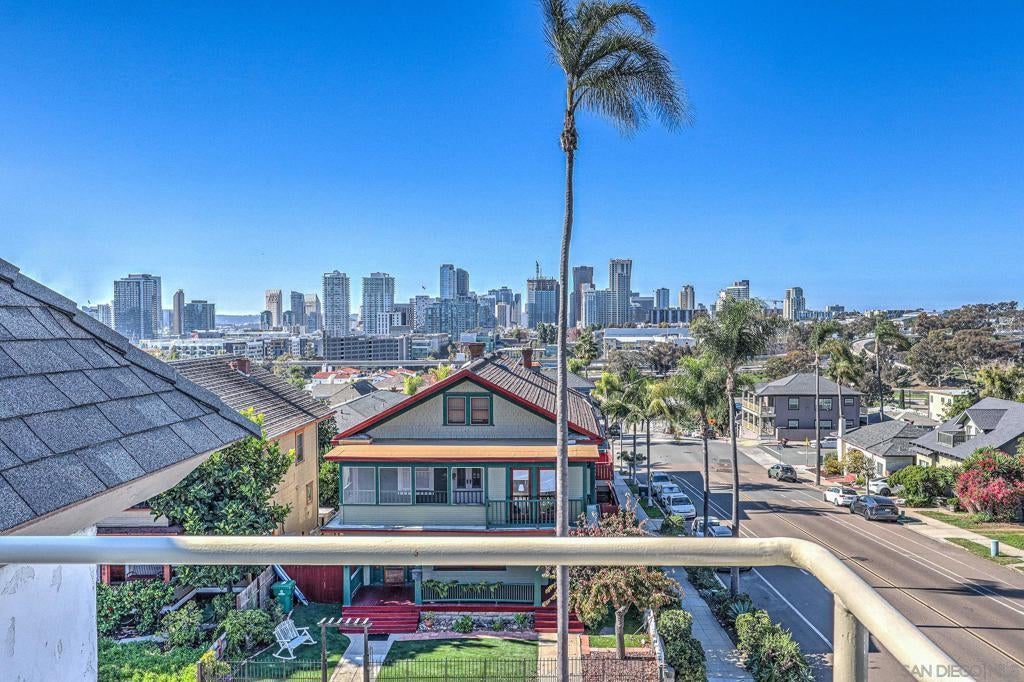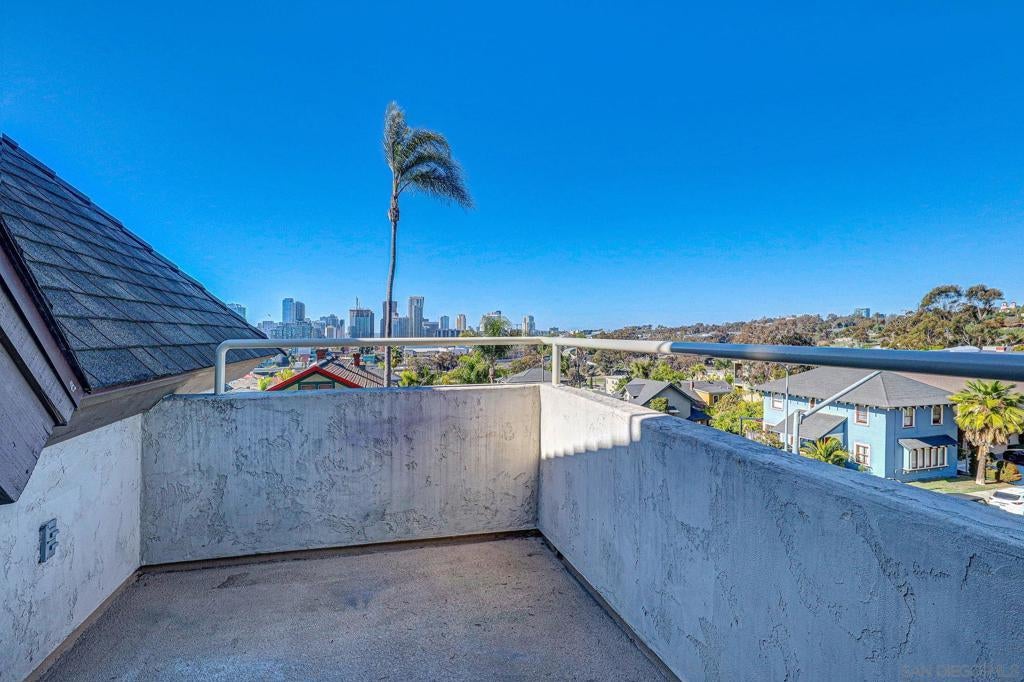 GOLDEN HILL – CITY VIEW First time on the market in nearly 30 years! This townhome overlooks the San Diego city skyline. It is only a few minute walk to Golden Hill Park, the Community Garden, grocery and meat markets, a popular Mexican bakery, cocktail bars, and quality eateries. Petco Park and Gaslamp nightlife are within walking distance. All conveniently located near regional freeways. This spacious 1539 square foot townhome has 3 levels, including 2 large primary bedrooms, with full bathrooms en-suite and large closets. The top floor suite has a patio balcony. The living room, dining, and kitchen level has an open plan with custom shutters, a 1/2 bath, and a walk-in pantry. The bottom floor is a large bedroom with en-suite bath and ample storage space. There is also a laundry adjacent to the entry. You’ll appreciate the under-unit gated 2-car garage. This north and west facing home is part of a stately 4-plex with a neighborly HOA to take care of the property so you can relax and enjoy.