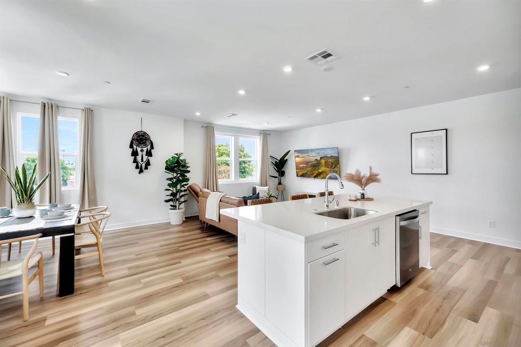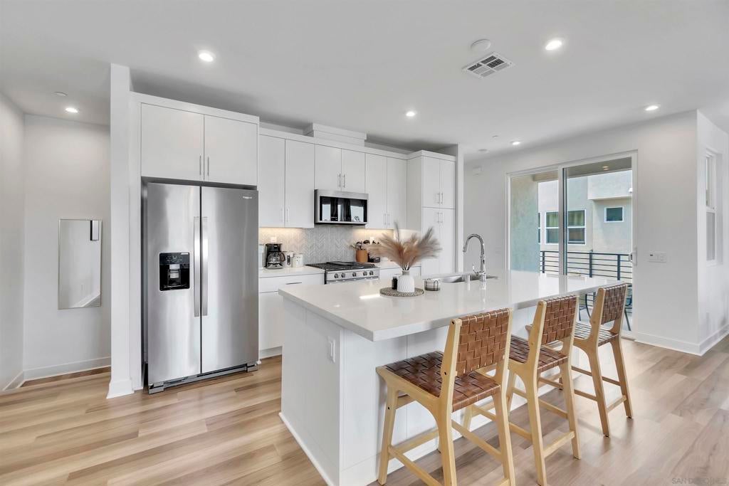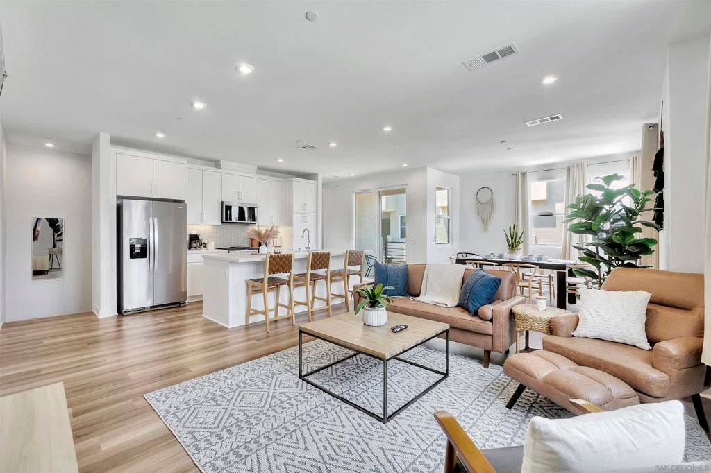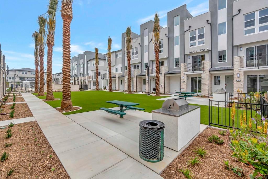 Experience modern living in this bright and stylish corner-unit home built in 2023 by Toll Brothers, located within the exclusive gated community of 100 West in Anaheim. Enjoy unbeatable convenience just minutes from Disneyland, Honda Center, Angel Stadium, and a vibrant mix of dining, shopping, and entertainment. Fully paid solar panels. Step inside through a welcoming first-floor entry with direct access to a spacious two-car garage. The second level features a thoughtfully designed open-concept floor plan that seamlessly connects the living room, updated designer kitchen, and dining area—ideal for both everyday living and entertaining. Step onto your private balcony to relax and enjoy the California breeze, while a convenient powder room completes this level. The third floor offers a private retreat with all bedrooms thoughtfully situated together, along with a centrally located laundry closet for added convenience. Carpet has all been replaced with new LVP for a seamless look. Additional highlights include electric vehicle charging capability, a tankless water heater, modern kitchen appliances, and contemporary finishes throughout. Don’t miss this exceptional opportunity to enjoy comfort, style, and a prime location in one of Anaheim’s most sought-after communities.