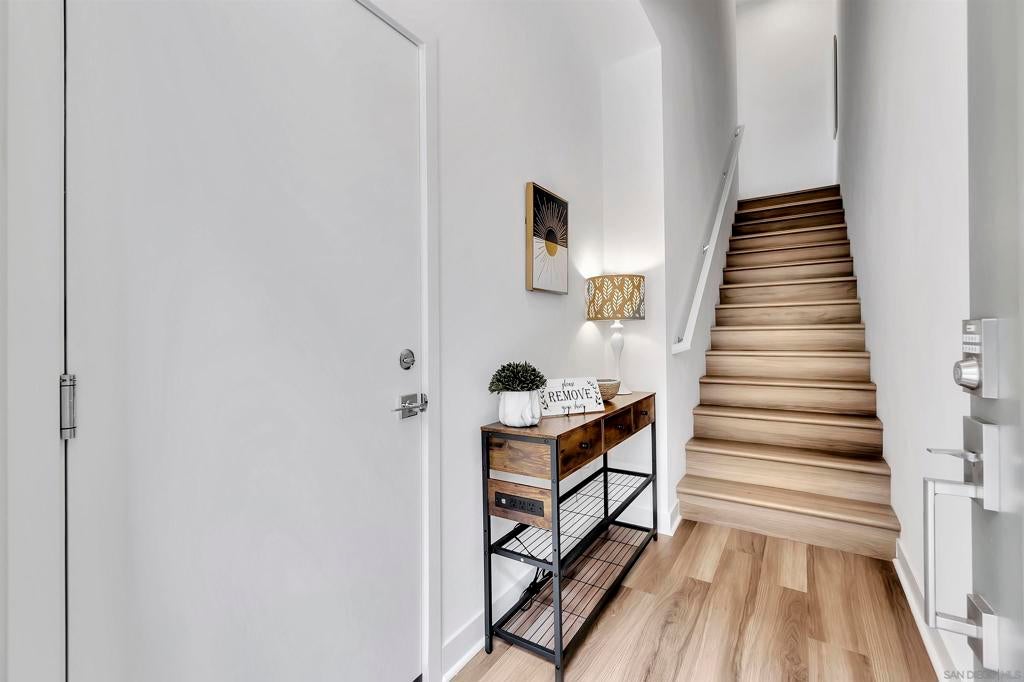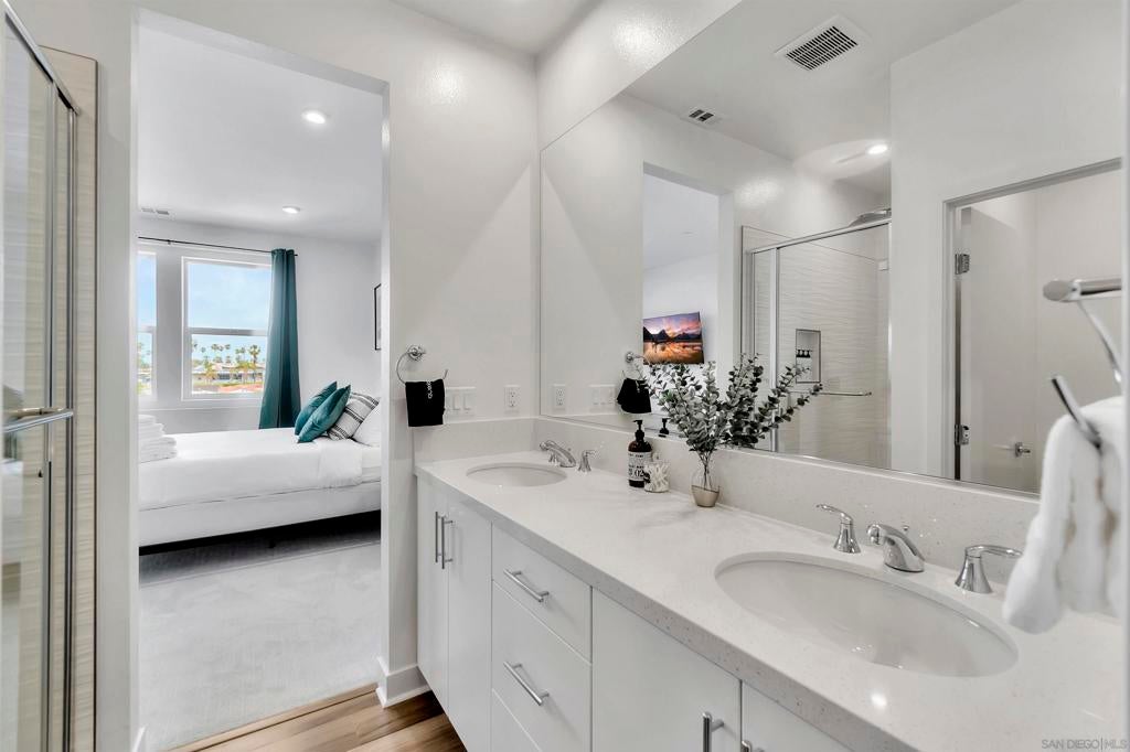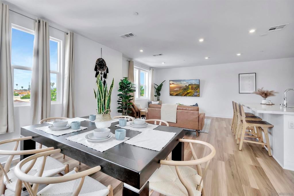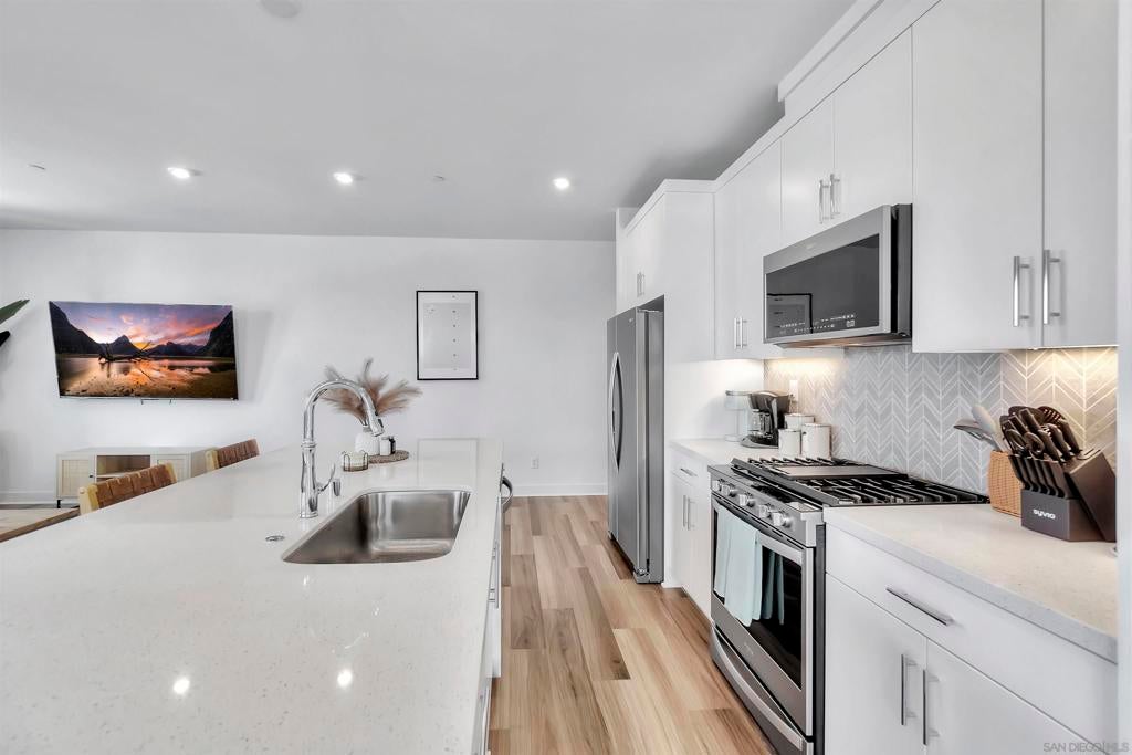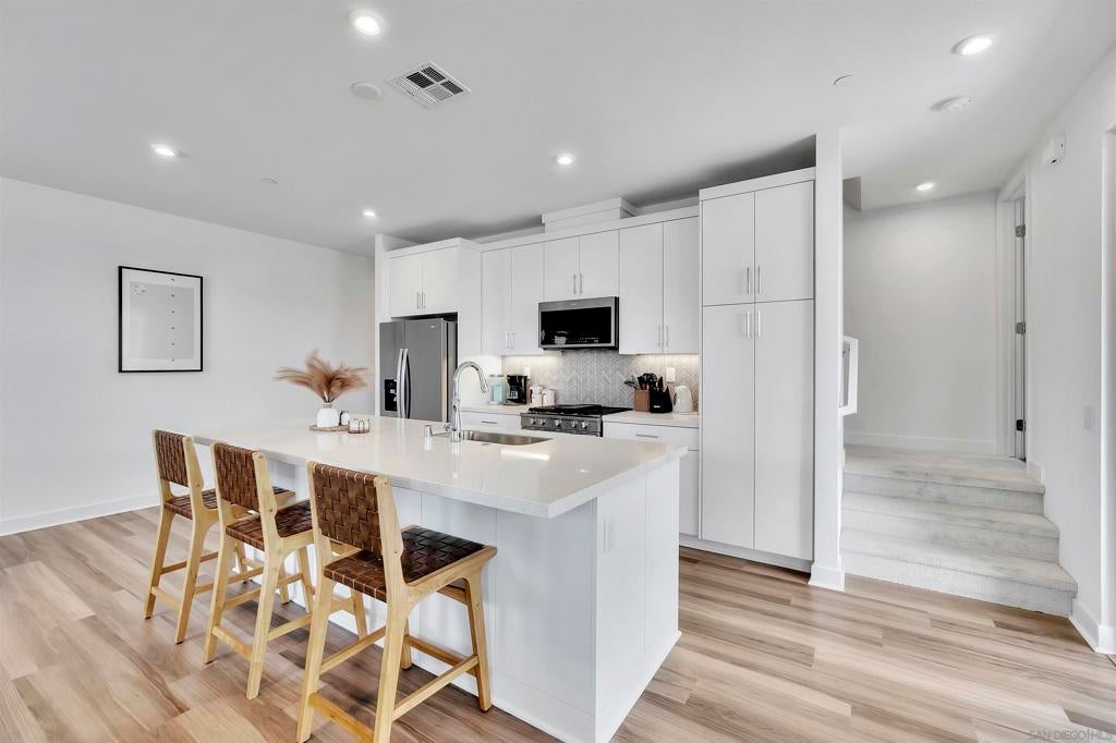 Experience modern living in this bright and stylish corner-unit home built in 2023 by Toll Brothers, located within the exclusive gated community of 100 West in Anaheim. Enjoy unbeatable convenience just minutes from Disneyland, Honda Center, Angel Stadium, and a vibrant mix of dining, shopping, and entertainment. Fully paid solar panels. Step inside through a welcoming first-floor entry with direct access to a spacious two-car garage. The second level features a thoughtfully designed open-concept floor plan that seamlessly connects the living room, updated designer kitchen, and dining area—ideal for both everyday living and entertaining. Step onto your private balcony to relax and enjoy the California breeze, while a convenient powder room completes this level. The third floor offers a private retreat with all bedrooms thoughtfully situated together, along with a centrally located laundry closet for added convenience. Carpet has all been replaced with new LVP for a seamless look. Additional highlights include electric vehicle charging capability, a tankless water heater, modern kitchen appliances, and contemporary finishes throughout. Don’t miss this exceptional opportunity to enjoy comfort, style, and a prime location in one of Anaheim’s most sought-after communities.