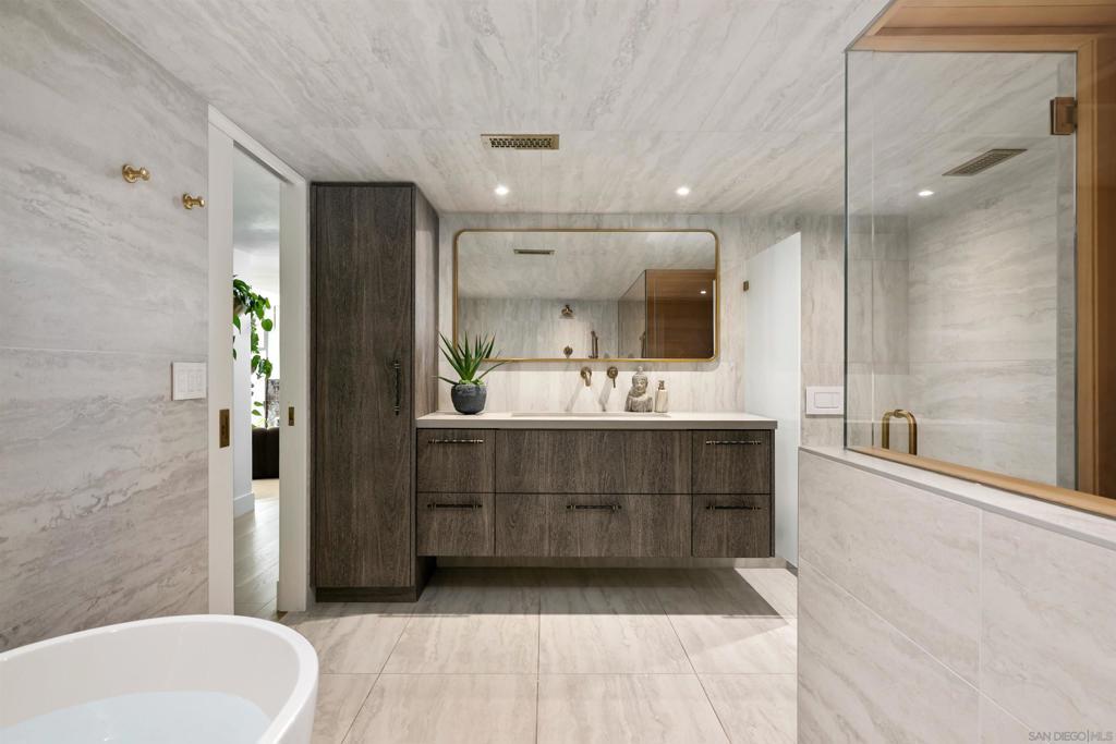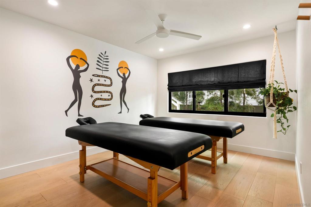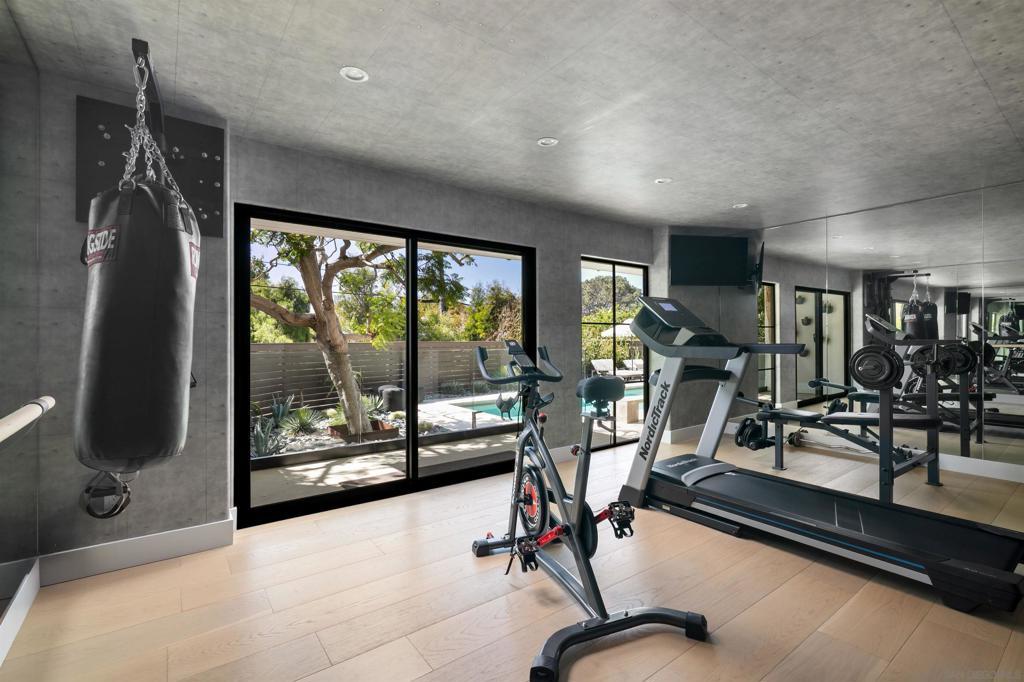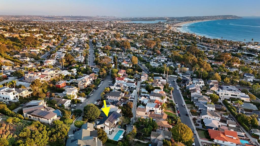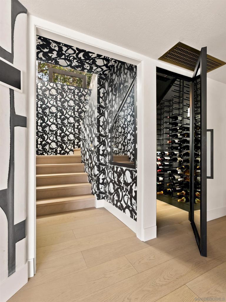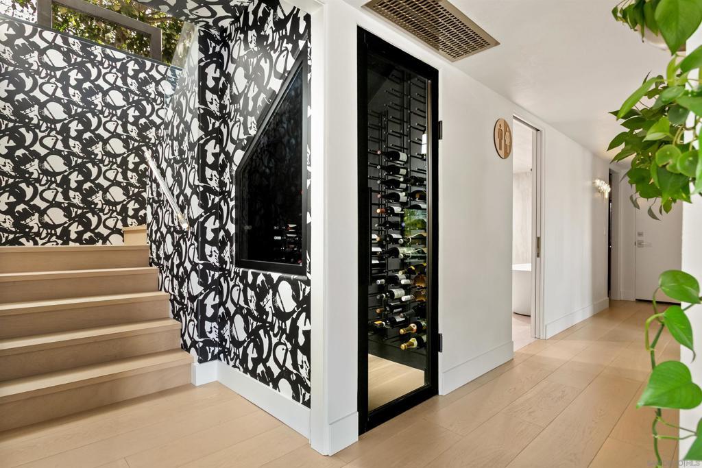 Where the home becomes the destination. Tucked at the end of a quiet cul-de-sac, this curated coastal retreat unfolds through light, texture, and an effortless sense of flow. The main level lives like a single-story sanctuary, where elevated spaces float above a relaxed, resort-inspired lower level, creating a thoughtful balance between refinement and ease. A private enclosed courtyard offers a gallery-like arrival with curated art, sculptural lighting, and a custom water feature, while a dramatic glass pivot door opens to an entry washed in natural light. Inside, floor-to-ceiling windows frame ocean views, glowing sunsets, and the lush canopy beyond. The living room is anchored by a striking geometric tile fireplace wall, a modern architectural moment with quiet drama. The chef’s kitchen seamlessly blends form and function with Wolf and Sub-Zero appliances, custom cabinetry, waterfall island, concealed coffee bar, and warm European oak flooring throughout. The primary suite evokes a boutique hotel retreat with vaulted ceilings, ocean views, and direct access to the yard and hot tub. Two additional rooms provide serene guest and office spaces. Direct access to the 2-car garage through a vibrant laundry room. Downstairs, a resort-inspired level opens to the pool and features family room with bar, game room, gym, sauna, and spa-style wet room, along with an oversized 3rd-car garage accessed from the dead-end alley. Outdoors, enjoy a saltwater lap pool, fire pit, hot tub, entertaining deck, pergola lounge, outdoor shower, garden. Moments from the Beach and Bird Rock Village. Where the home becomes the destination. Tucked at the end of a quiet Bird Rock cul-de-sac, this architecturally refined coastal retreat unfolds through light, texture, and effortless flow. The main level lives like a single-level sanctuary, where elevated living spaces float above a relaxed, resort-inspired lower level, creating a natural balance of refinement and ease. A private enclosed courtyard offers a gallery-like arrival with curated art, sculptural lighting, and a custom water feature. An oversized glass pivot door opens to a dramatic, light-filled entry beneath a cascading lightwell. Inside, floor-to-ceiling windows frame ocean views, sunsets, and the lush Bird Rock canopy beyond. The living room is anchored by a bold geometric tile fireplace wall, a modern architectural statement with quiet drama. The chef’s kitchen blends form and function with Wolf and Sub-Zero appliances, handcrafted cabinetry, waterfall island, concealed coffee bar, and warm European oak flooring throughout. The primary suite evokes a boutique hotel retreat with vaulted ceilings, ocean views, and direct access to the yard and hot tub. Two additional rooms offer serene guest and office spaces. Downstairs, a vibrant entertaining level opens to the pool and features a lounge with bar, game room, gym, sauna, temperate-controlled wine closet, and spa-style wet room. Outdoor living feels like a private resort with a lap pool, fire pit, hot tub, expansive entertaining deck, pergola lounge, outdoor shower, and garden. Multiple garages and integrated smart home technology complete this private coastal escape, moments from Bird Rock Village and the coastline.