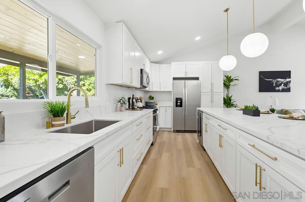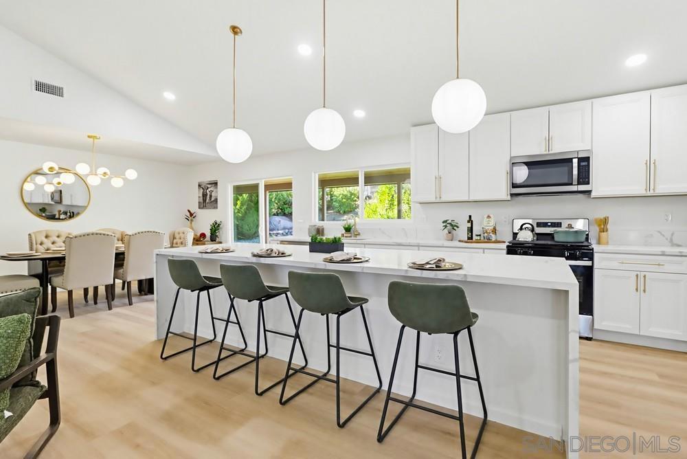 As soon as you step through the front door, you'll be amazed by the bright, inviting atmosphere created by the open floor plan with vaulted ceilings and recessed lighting throughout. The heart of the home is the spectacular chef-inspired kitchen, featuring a large island countertop with a built-in separate stainless steel beverage fridge tucked neatly underneath. The entire space boasts a premium new stainless steel appliances package, ?tasteful quartz countertops and custom white shaker cabinets featuring soft close drawers making cooking and entertaining a true pleasure. The spacious primary suite provides a peaceful retreat with its own en-suite bath, while the second bedroom offers direct access to the expansive covered back patio that spans the entire length of the home—perfect for morning coffee or evening relaxation. Step outside to enjoy the low-maintenance yard complete with beautiful turf, keeping everything super clean and green year-round with minimal effort. This home combines thoughtful updates with the warmth and charm that make it feel truly welcoming. Nestled in an amazing walking neighborhood within one of Rancho Bernardo's most active and sought-after 55+ communities, you'll love the convenience, social opportunities, and resort-style lifestyle. Priced well below other active listings in the area, this exceptional property is ready to sell quickly—yet it stands out as the best in quality and value. Don't miss this incredible opportunity, experience the perfect blend of modern sophistication and relaxed California living! As soon as you step through the front door, you'll be amazed by the bright, inviting atmosphere created by the open floor plan with vaulted ceilings and recessed lighting throughout. The heart of the home is the spectacular chef-inspired kitchen, featuring a large island countertop with a built-in separate stainless steel beverage fridge tucked neatly underneath. The entire space boasts a premium new stainless steel appliances package, tasteful quartz countertops and custom white shaker cabinets featuring soft close drawers making cooking and entertaining a true pleasure. The spacious primary suite provides a peaceful retreat with its own en-suite bath, while the second bedroom offers direct access to the expansive covered back patio that spans the entire length of the home—perfect for morning coffee or evening relaxation. Step outside to enjoy the low-maintenance yard complete with beautiful turf, keeping everything super clean and green year-round with minimal effort. This home combines thoughtful updates with the warmth and charm that make it feel truly welcoming. Nestled in an amazing walking neighborhood within one of Rancho Bernardo's most active and sought-after 55+ communities, you'll love the convenience, social opportunities, and resort-style lifestyle. Priced well below other active listings in the area, this exceptional property is ready to sell quickly—yet it stands out as the best in quality and value. Don't miss this incredible opportunity, experience the perfect blend of modern sophistication and relaxed California living! Must see to appreciate!