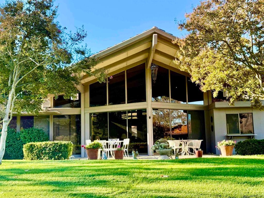 ON THE 6th HOLE of the Pauma Valley CC with a view north to the mountains. It is a one of the classic PVCC homes 2911 sq ft mid-century modern designed by well-known architect C. Day Wentworth. He planned to live in it himself but unfortunately died before it was done. He picked one of the best lots in the club, a cul-de-sac with only 5 homes. Only one owner with who appreciated all the mid-century details and maintained them well. Walking up to the front door, you see the lap pool to your right and the bright front door ahead. As you step in the entry you notice what looks like a closet but when opened has a ladder up to the loft. The owner says this is for the grandkids to hide out. Go right on into the huge LR and immediately the golf course and mountain view takes your breath away. A huge hearth and fireplace with small white tiles is a beautiful focal point. Behind this wall is the PBR with the same view for you every morning. A big walk-in closet with a sunken safe has plenty of room. The ensuite atrium bathroom is also quite large and recently remodeled. A complete luxury bedroom and bath with a private atrium. Time for breakfast. A compact galley kitchen with windows to the golf course and one of the biggest pantries I have ever seen. With it and all the built-ins in the dining area, you are set. The dining area is plenty large for all the family gatherings. Behind the kitchen and DR are the 2 other bedrooms. The smaller one that looks out toward the pool has been a den with a gas fireplace in the wall and built-ins for the tv, desk and bookcases. The perfect man-cave. Across the hall is a full bath that is meant to share with the other guest bedroom. And to the left of the bath is a laundry area/mudroom. There is a door out to the spacious 2-car garage which has lots of storage and a surprise. A thermostatically controlled wine cooler large enough to hold at least 10 cases. WAIt, outside the side door is a golf cart garage with its own cement driveway from the street. Inside the room, there is plenty of space for the cart, several bags of clubs and still a small workshop. Home has paid for Solar. With only a true-up bill at the end of the year. Membership in the PVCC is not included with the home but several levels of membership are available with vetted applications. Everyone who lives inside the gates must pay a ROADWAY bill of $850/yr to pay for all the private roads inside the club. Please check this address on REALTOR.COM for additional info.