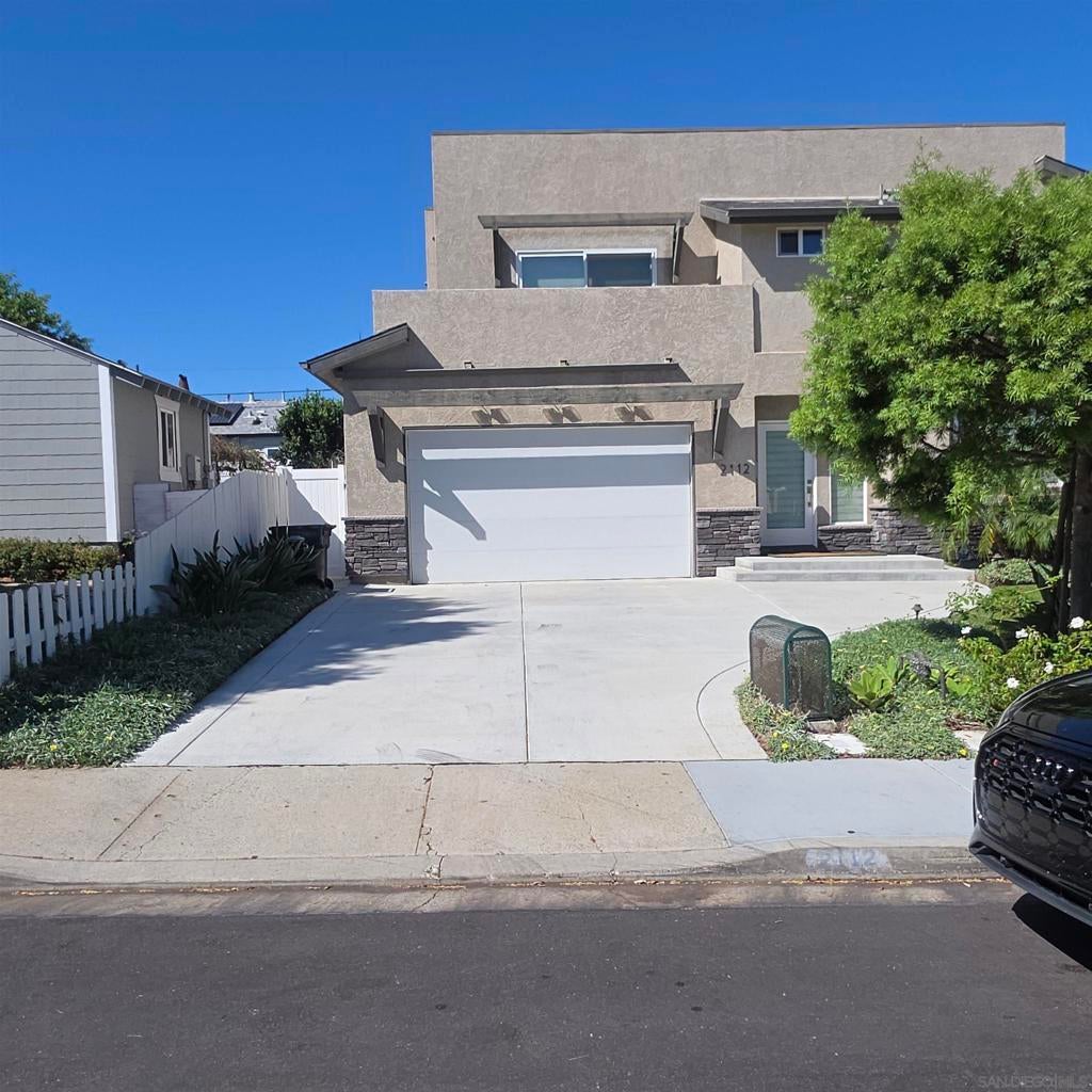 Model Home. Like New, The Contemporary Coastal Living in Pacific Beach – 2114 Felspar St, San Diego, CA 92109. Step into the ultimate Pacific Beach lifestyle with this amazing 4-bedroom, 3-bathroom condominium, with 1,800 sq. ft. of modern design elegance. This isn’t just a home; it’s your gateway to coastal bliss, free from HOA fees and meetings, thanks to a clever condo lot split that creates two independent homes. Arrive through a charming front gate and shared walkway or slip in discreetly via the quiet alley to your two-car garage and additional parking spaces. Inside, an open-concept design welcomes you with a showcase atrium staircase that spans all three levels, bathing the home in golden natural light. The ground floor hums with possibility: a sleek, modern kitchen flows effortlessly into the dining and living areas, perfect for lively gatherings or cozy nights in. A versatile bonus room awaits your vision—transform it into a fourth ground-level bedroom, a chic home office, or a welcoming guest retreat. Ascend to the upper levels, where three thoughtfully designed bedrooms offer comfort and style. The primary suite is your personal sanctuary, complete with a private deck for morning coffee or starlit evenings. But the real showstopper? An expansive rooftop deck and recreational area, serving up panoramic peek views of Mission Bay and the twinkling San Diego skyline. Picture yourself hosting sunset soirees, lounging in the sun, or cheering for Mission Bay summer-long fireworks from this unobstructed perch.