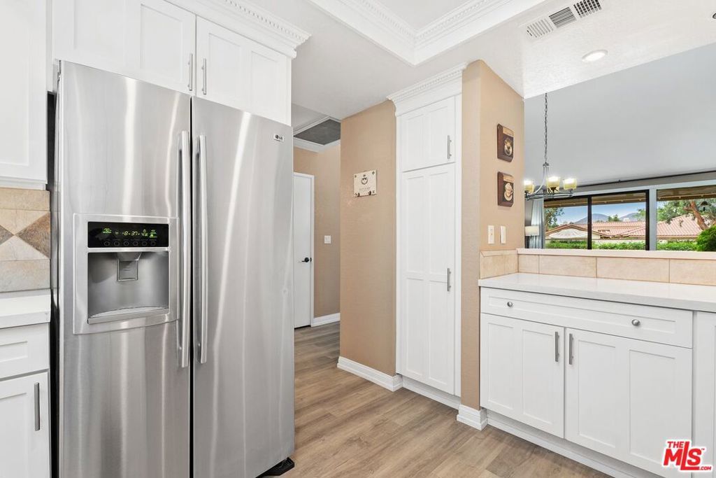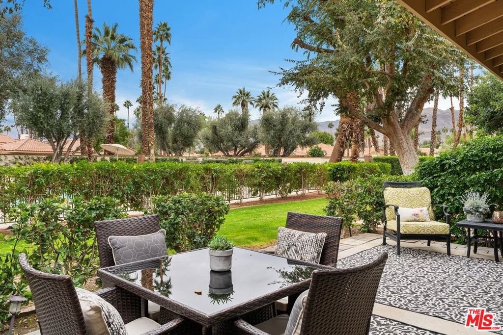 Discover the joy of desert living in this updated and well-maintained condo with beautiful wood plank LVT flooring. Enter the private courtyard with front patio to the open living room and dining areas with 14-foot vaulted ceilings and clerestory windows. The kitchen is ready for culinary creations with generous cabinetry, newer LG stainless steel appliances and breakfast bar. The spacious primary suite offers direct rear patio access, an en-suite bath w/double vanity and ample closets. Secondary bedroom and bath are positioned for privacy and flexibility - perfect for guests or remote work. Outside is a spacious patio with mountain views, a perfect spot for your favorite libation. Relax in the pool and spa, which are just steps away. Inside laundry area with LG washer/dryer and the attached garage provides convenience. Monterey Country Club offers a 27-hole Ted Robinson-designed golf course, a vibrant pickleball community with 20+ courts, tennis, bocce ball, fitness center, 37 pools/spas, and a clubhouse offering year-round events. STR's are allowed by HOA with a City permit, which makes this a rare opportunity for investors seeking vacation rental income. Centrally located in the heart of Palm Desert near El Paseo, McCullum Theatre and Acrisure Arena. Furnished and move-in-ready!