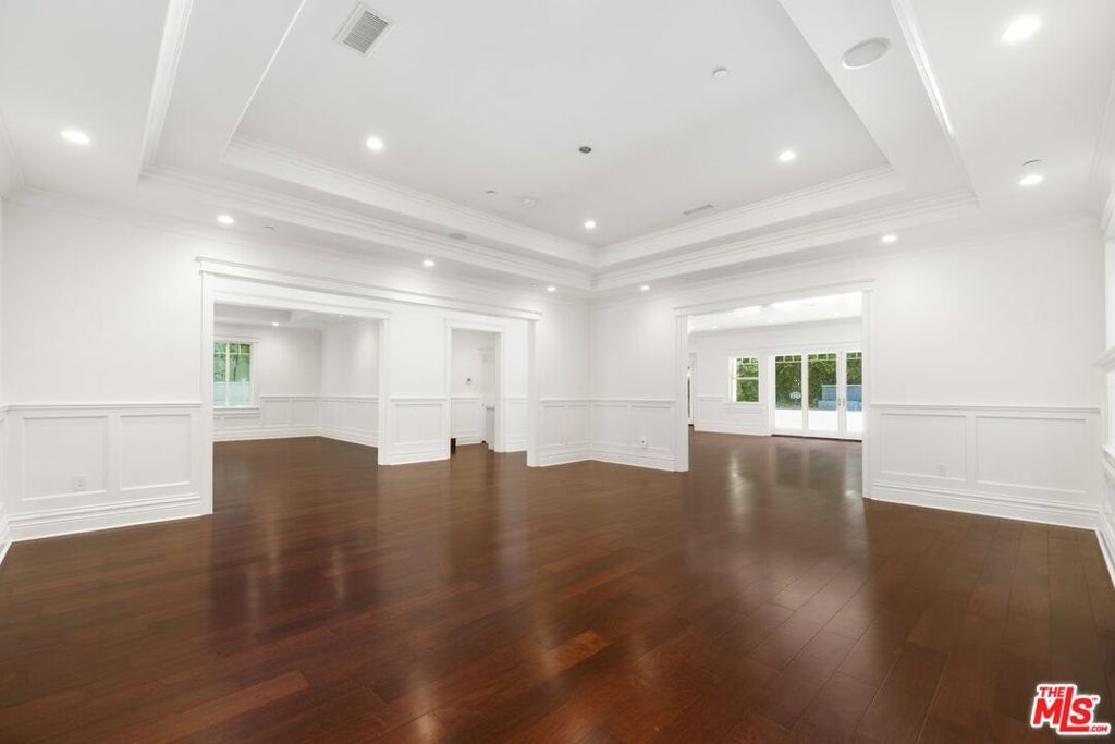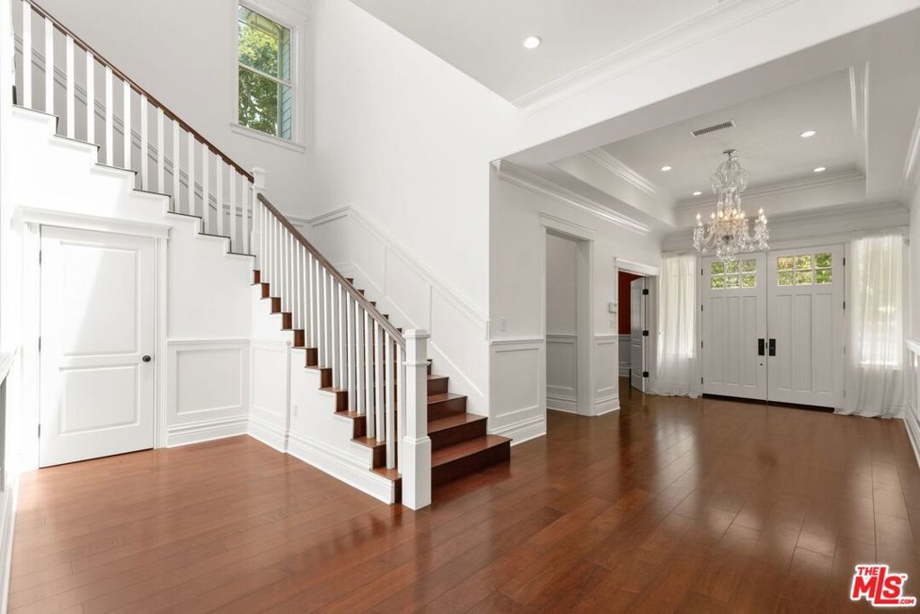 This transitional masterpiece offers approximately 6,654 square feet of refined living space nestled upon a sprawling, verdant lot, offering enchanting outdoor vistas and a sprawling backyard retreat. Enter through a grand vestibule into the luminous living room and captivating fireplace. The spacious family room with beautiful wood floors plays host to a second fireplace. On the lower level, discover two lavishly appointed powder rooms, an elegant formal dining enclave, and an open-concept kitchen adorned with top-of-the-line Viking appliances. Ascend to find five sumptuously appointed bedrooms, each boasting its own private ensuite, while the opulent master suite features the home's third fireplace, promising unparalleled serenity. Additional luxuries include a stately home office and a crystalline pool, beckoning moments of leisure and reprieve. Ideally situated, this resplendent residence offers seamless access to freeways, the airport, Beverly Hills, nearby beaches, all within the esteemed Warner School District. For more information contact listing agent.