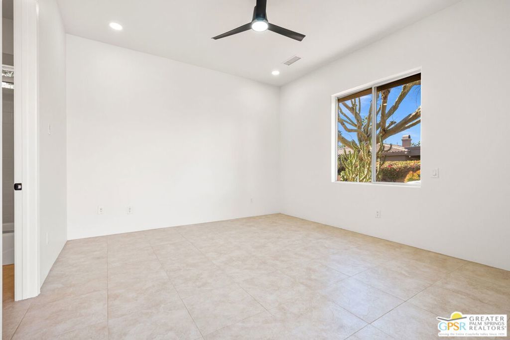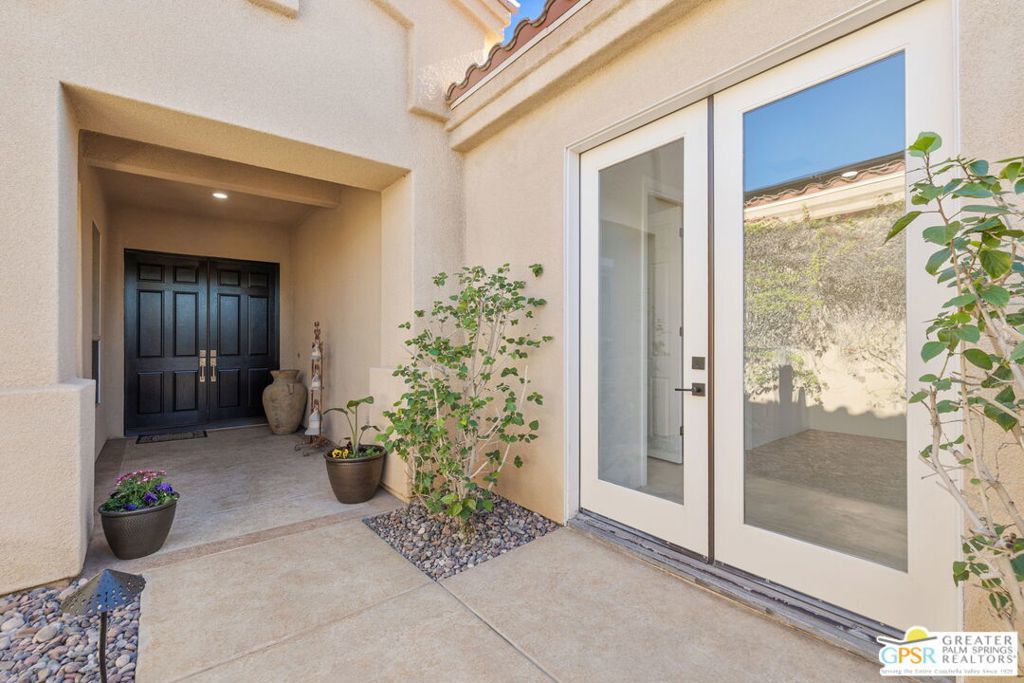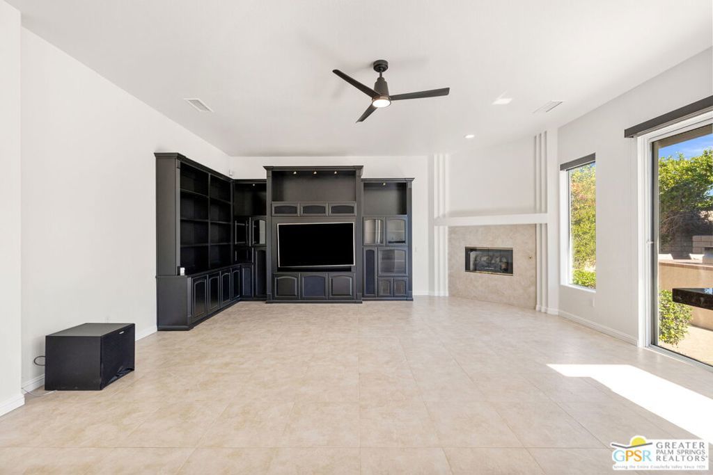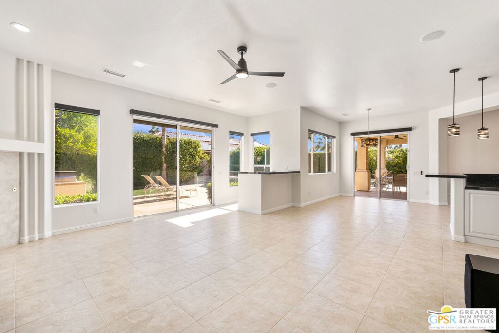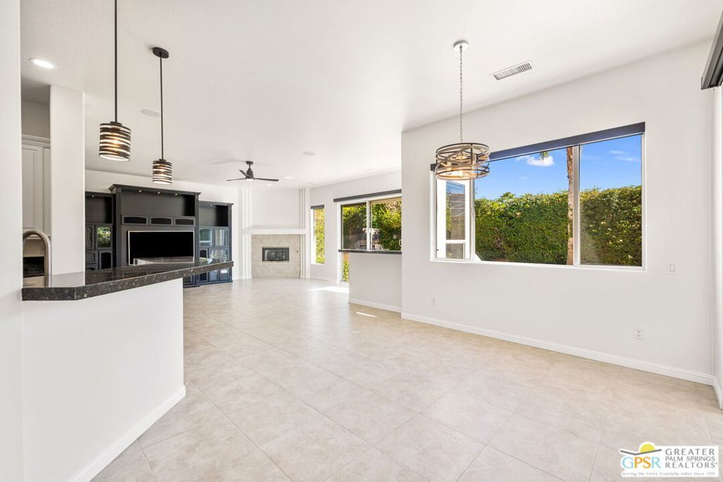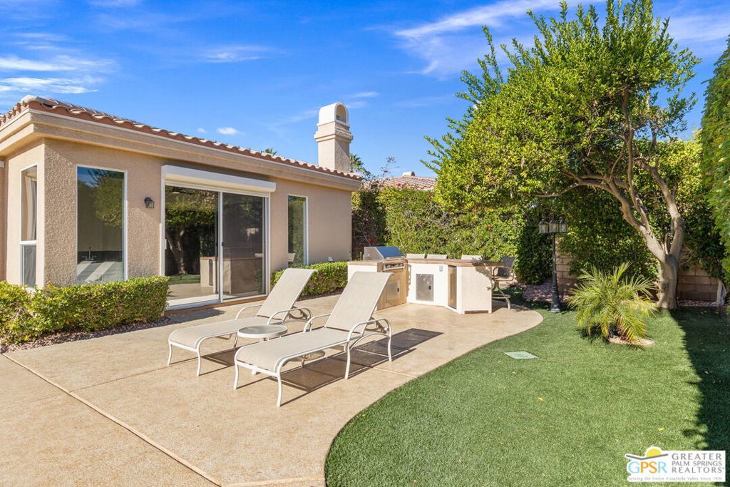 Seeking a responsible long-term tenant to call this exceptional home their own. This beautifully refreshed 4-bedroom, 3.5-bathroom residence offers over 3,063 square feet of bright, open living space, ideal for those ready to settle into relaxed Coachella Valley living, host gatherings with ease, or accommodate multi-generational family needs in unfurnished comfort.Step inside to soaring ceilings and abundant natural light that instantly welcome you home. Elegant living and dining areas flow seamlessly into the gourmet kitchen and include a cozy fireplace with built-in entertainment center. The chef-friendly kitchen boasts sleek black granite counters, crisp white cabinetry, a spacious center island with seating, stainless steel appliances (double ovens and gas cooktop), and generous storage to support your daily routines.The luxurious primary suite provides a peaceful retreat with direct backyard access, a spa-inspired bathroom featuring dual vanities, a soaking tub, a separate shower, and an expansive walk-in closet. Three additional well-appointed guest bedrooms ensure plenty of flexibility, highlighted by a highly desirable attached casita with its own private entrance and full en-suite bath perfect for long-term guests, family members, or a dedicated home office.Practical features include a convenient indoor laundry room with sink and storage, ceiling fans throughout for year-round comfort, durable tile flooring in main living areas, and fully owned solar panels that deliver outstanding energy efficiency and noticeably lower utility bills.Your private backyard oasis completes the package: a sparkling pebble-tec pool with raised spa and cascading waterfall, built-in outdoor BBQ bar ideal for relaxed al fresco meals, covered patio with ceiling fan, lush privacy hedging, low-maintenance landscaping, and stunning mountain views.All this is nestled within the secure, tranquil guard-gated Montecito community, just minutes from world-class golf, El Paseo's renowned shopping and dining, premier hiking and tennis, and the lively scenes of Palm Springs, Rancho Mirage, and La Quinta.This unfurnished home is ready for immediate move-in and available exclusively for a long-term lease (minimum one year). If you are a qualified tenant seeking stability, space, and desert resort-style living, this rare opportunity is for you. Schedule your private tour today!