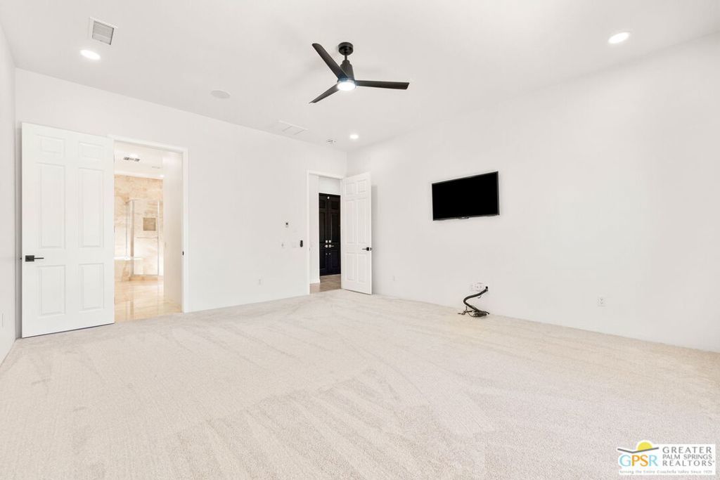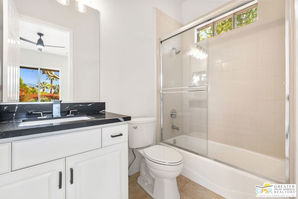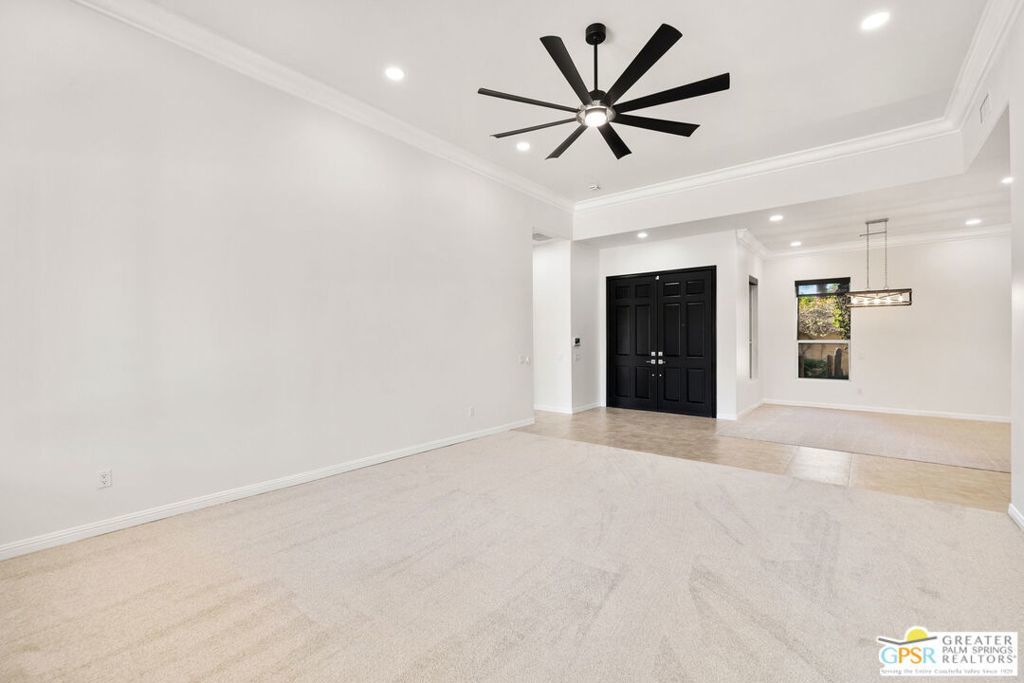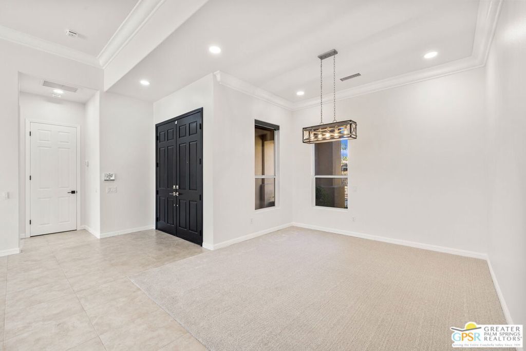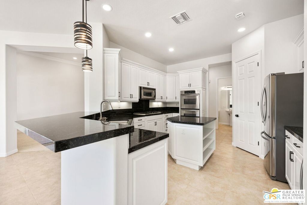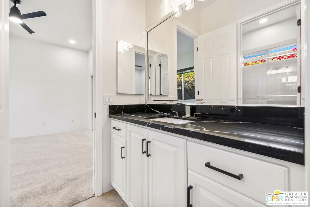 Seeking a responsible long-term tenant to call this exceptional home their own. This beautifully refreshed 4-bedroom, 3.5-bathroom residence offers over 3,063 square feet of bright, open living space, ideal for those ready to settle into relaxed Coachella Valley living, host gatherings with ease, or accommodate multi-generational family needs in unfurnished comfort.Step inside to soaring ceilings and abundant natural light that instantly welcome you home. Elegant living and dining areas flow seamlessly into the gourmet kitchen and include a cozy fireplace with built-in entertainment center. The chef-friendly kitchen boasts sleek black granite counters, crisp white cabinetry, a spacious center island with seating, stainless steel appliances (double ovens and gas cooktop), and generous storage to support your daily routines.The luxurious primary suite provides a peaceful retreat with direct backyard access, a spa-inspired bathroom featuring dual vanities, a soaking tub, a separate shower, and an expansive walk-in closet. Three additional well-appointed guest bedrooms ensure plenty of flexibility, highlighted by a highly desirable attached casita with its own private entrance and full en-suite bath perfect for long-term guests, family members, or a dedicated home office.Practical features include a convenient indoor laundry room with sink and storage, ceiling fans throughout for year-round comfort, durable tile flooring in main living areas, and fully owned solar panels that deliver outstanding energy efficiency and noticeably lower utility bills.Your private backyard oasis completes the package: a sparkling pebble-tec pool with raised spa and cascading waterfall, built-in outdoor BBQ bar ideal for relaxed al fresco meals, covered patio with ceiling fan, lush privacy hedging, low-maintenance landscaping, and stunning mountain views.All this is nestled within the secure, tranquil guard-gated Montecito community, just minutes from world-class golf, El Paseo's renowned shopping and dining, premier hiking and tennis, and the lively scenes of Palm Springs, Rancho Mirage, and La Quinta.This unfurnished home is ready for immediate move-in and available exclusively for a long-term lease (minimum one year). If you are a qualified tenant seeking stability, space, and desert resort-style living, this rare opportunity is for you. Schedule your private tour today!