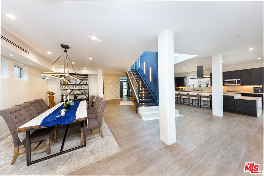 Step into refined modern living in this meticulously crafted family residence located in the heart of Beverlywood. Thoughtfully designed with both luxury and functionality in mind, this exceptional home offers an ideal setting for everyday comfort as well as effortless entertaining. The expansive open-concept layout is enhanced by soaring ceilings and skylights, filling the interiors with abundant natural light. The striking exterior features handcrafted Shou Sugi Ban wood, delivering timeless architectural appeal and exceptional durability. A whole-house water filtration system provides purified water throughout, adding an elevated layer of comfort and wellness. At the center of the home, the chef's kitchen is equipped with top-of-the-line Miele appliances, an impressive 16-foot island, walk-in pantry, and a dedicated baker's marble counter. Oversized sliding glass doors create a seamless indoor-outdoor connection, opening to a private backyard complete with a half basketball court, built-in concrete seating, and a fire pit, perfect for gatherings and relaxation. The main living area flows effortlessly and is anchored by a 6.5-foot fireplace, creating a warm and inviting ambiance. Upstairs, four en-suite bedrooms provide private retreats, complemented by a versatile bonus room ideal for an office, playroom, or art studio. Three outdoor patios extend the living experience, including stunning Hollywood Sign views from the primary suite. The luxurious primary retreat features its own fireplace, walk-in closet, and a spa-inspired bathroom designed for ultimate relaxation. Additional highlights include built-in garage storage and a prime location just steps away from Canfield Elementary School. A rare opportunity to lease a thoughtfully designed modern home in one of Beverlywood's most desirable neighborhoods. Can be furnished for an additional fee.