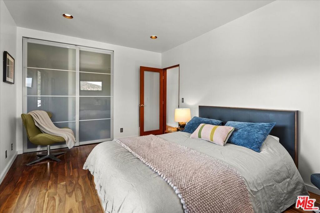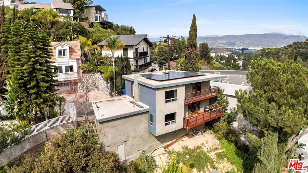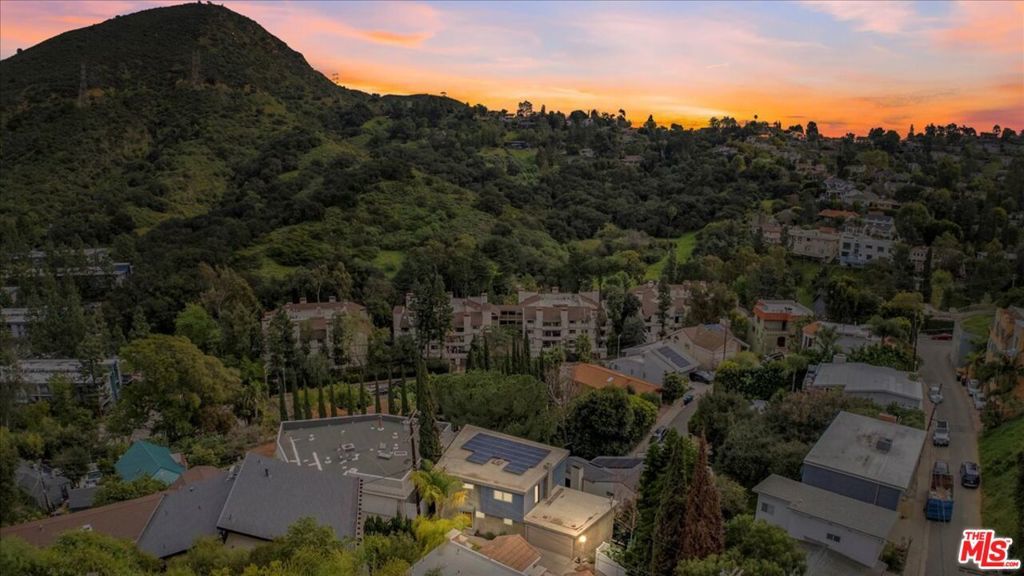 A modern canyon treehouse tucked into the iconic Hollywood Hills. Perched above the canyon, this design-forward hillside retreat offers a rare sense of privacy and tranquility just minutes from the Toluca Lake Village, the Hollywood Bowl and most major studios. French doors open from the living spaces to a charming deck nestled among the trees, creating an inviting indoor-outdoor connection reminiscent of a modern treehouse above the canyon. The open living and dining areas are filled with natural light and framed by greenery, giving the home a calm, retreat-like atmosphere while remaining close to the energy of the city. The thoughtfully designed floor plan features three bedrooms, an updated powder room and an upstairs full bath with pristine sculptural vintage tile blending comfort with nostalgia. The kitchen with high end appliances, European cabinetry & polished concrete counters flows easily into the main living areas & to the outdoor deck - perfect for morning coffee, evening gatherings or just enjoying the peaceful canyon surroundings. Set in the hills above the city with convenient access to nearby hiking trails, restaurants, and entertainment this stylish home offers a quintessential Los Angeles lifestyle that balances privacy, nature, and proximity to the city. A rare opportunity to experience stylish canyon living with warmth, character and an effortless connection to nature.
